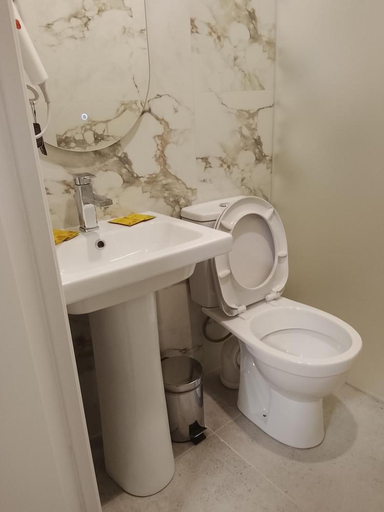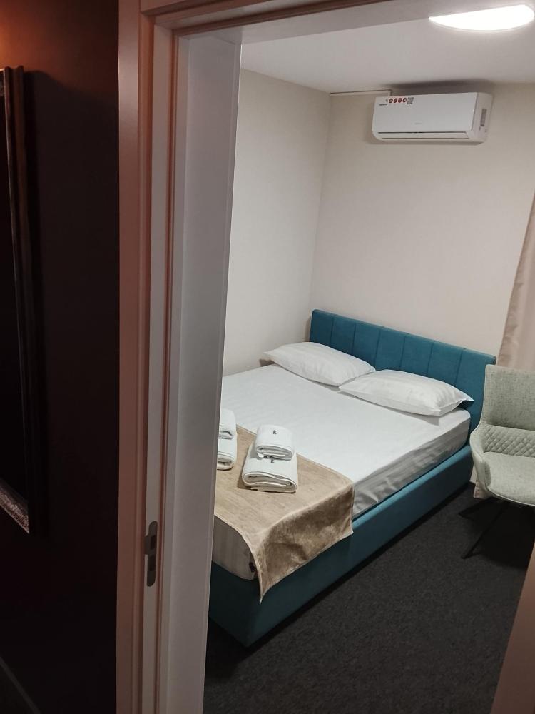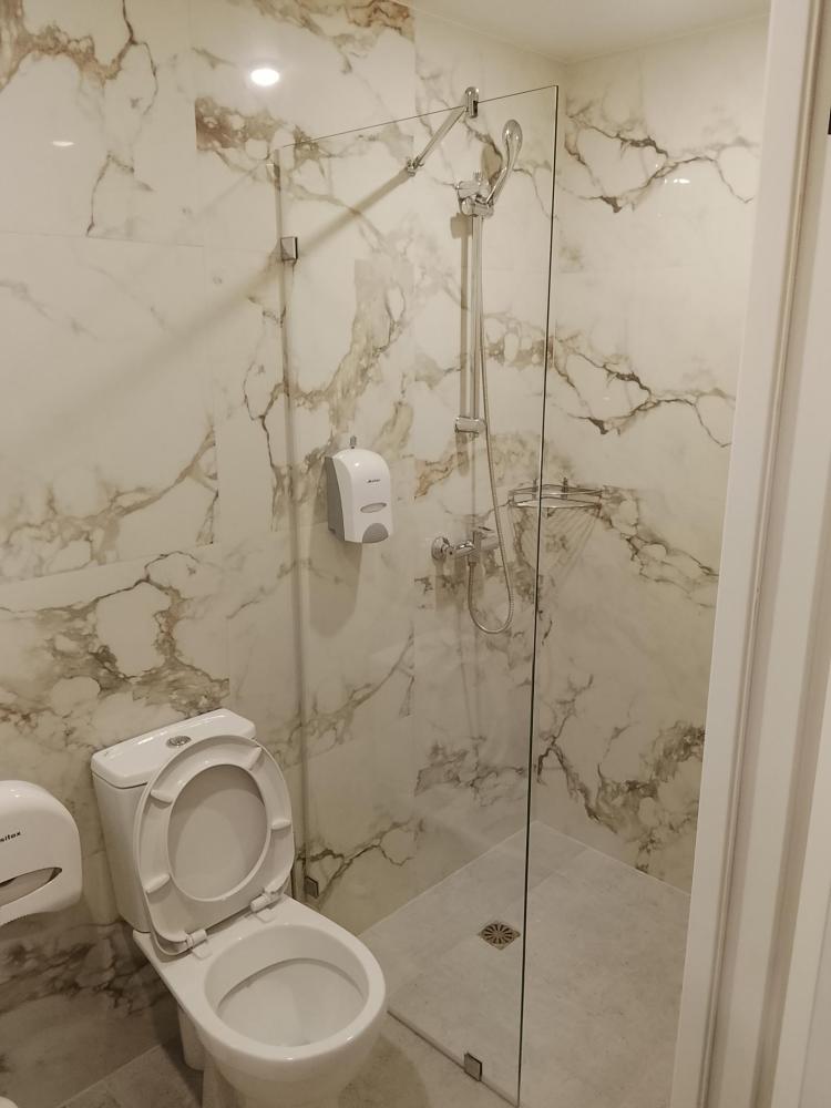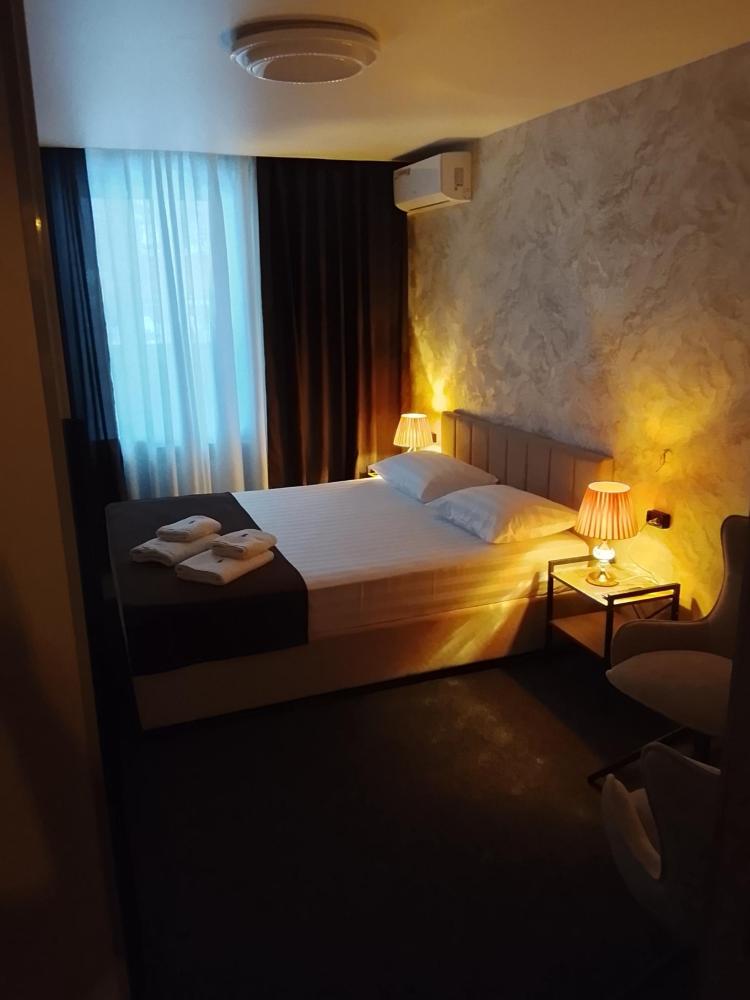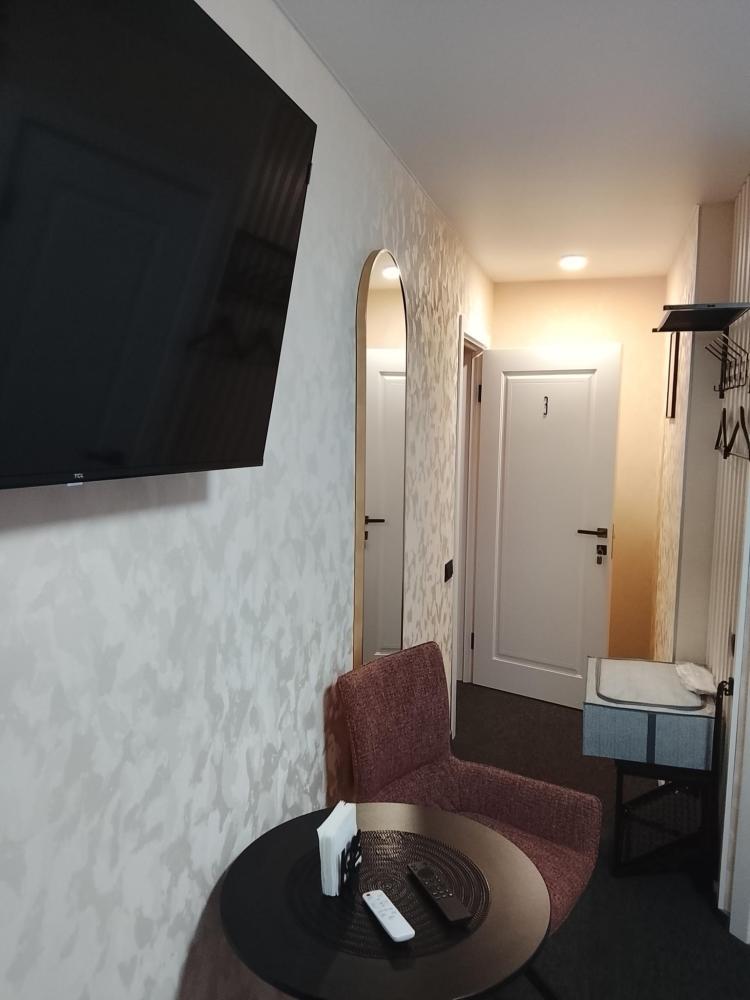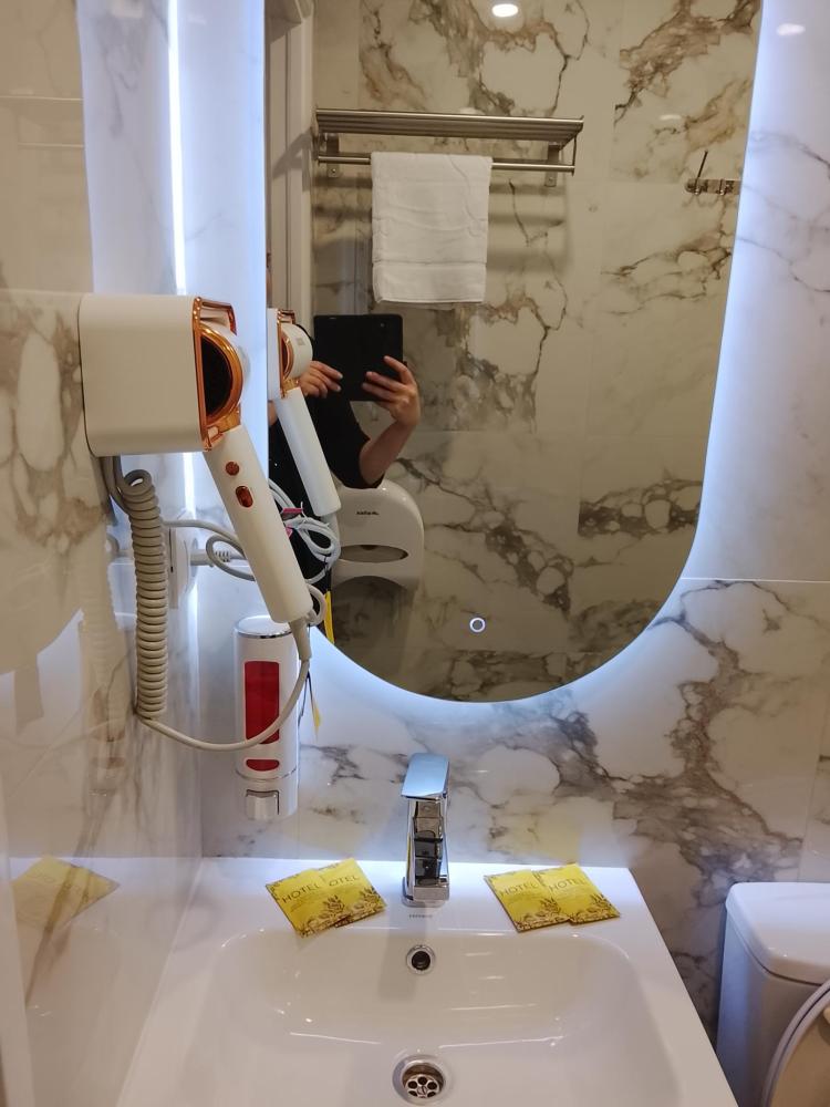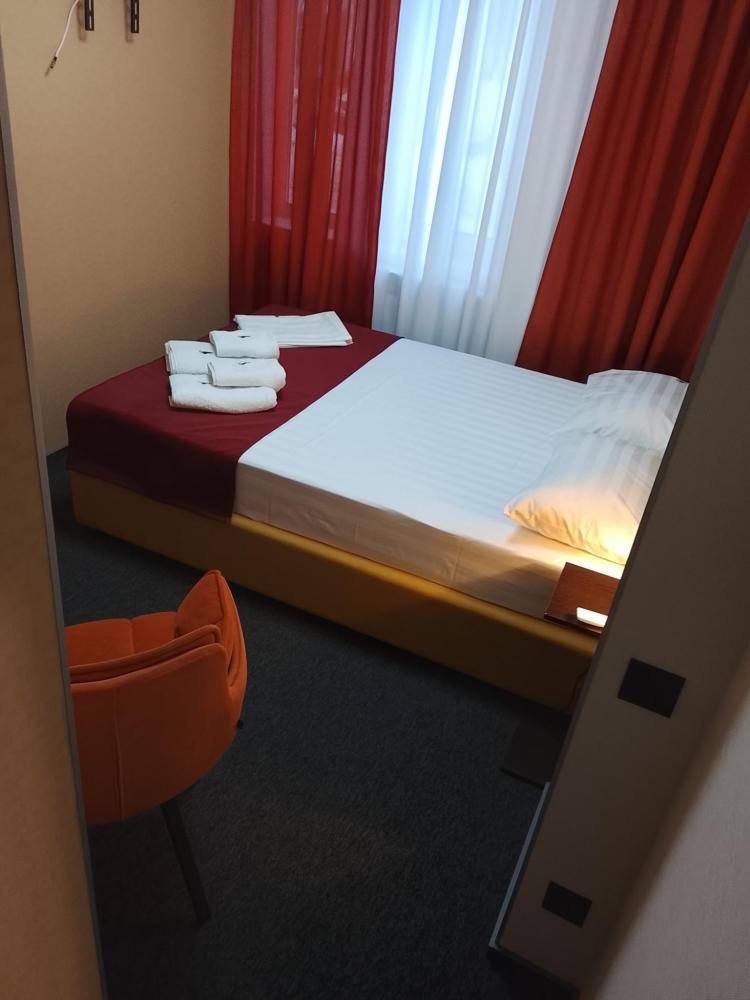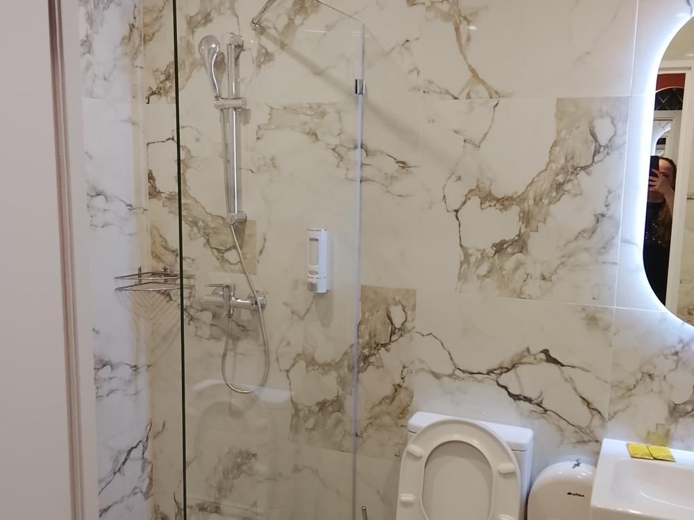 В номере есть большая плазменная панель, сплит-система, большая двуспальная кровать, прикроватные тумбочки, зона отдыха из двух стульев и стола, санузел с душевой кабиной, комплект полотенец, туалетные и ванные принадлежности, а также фен.