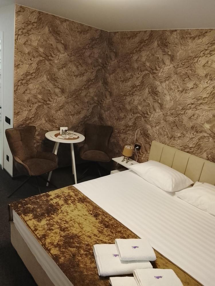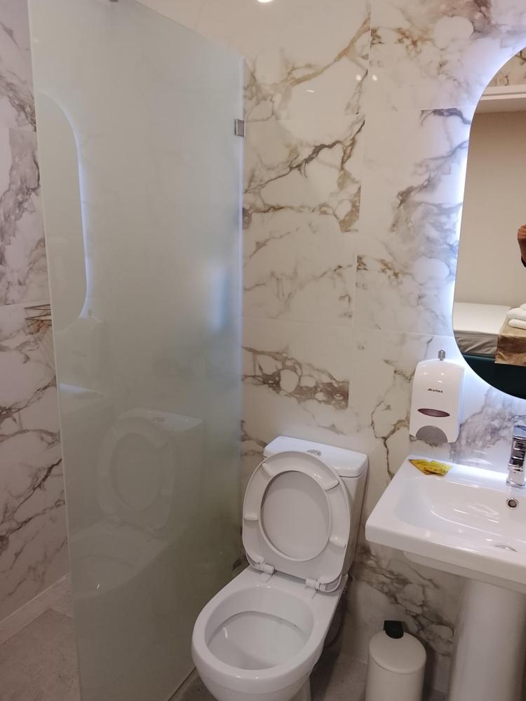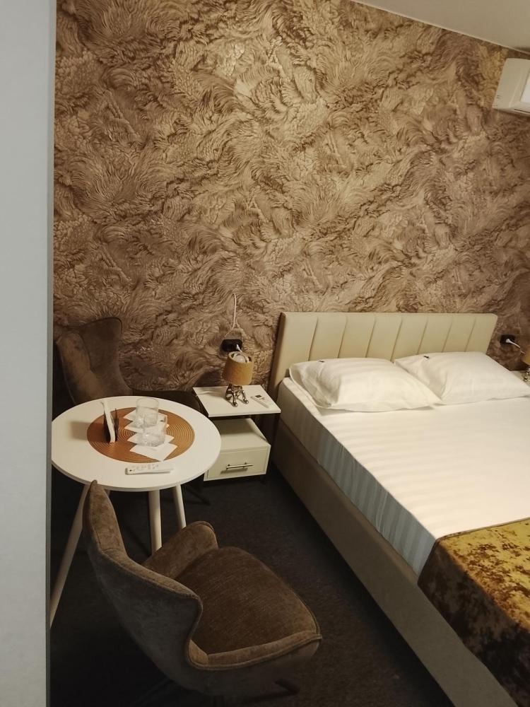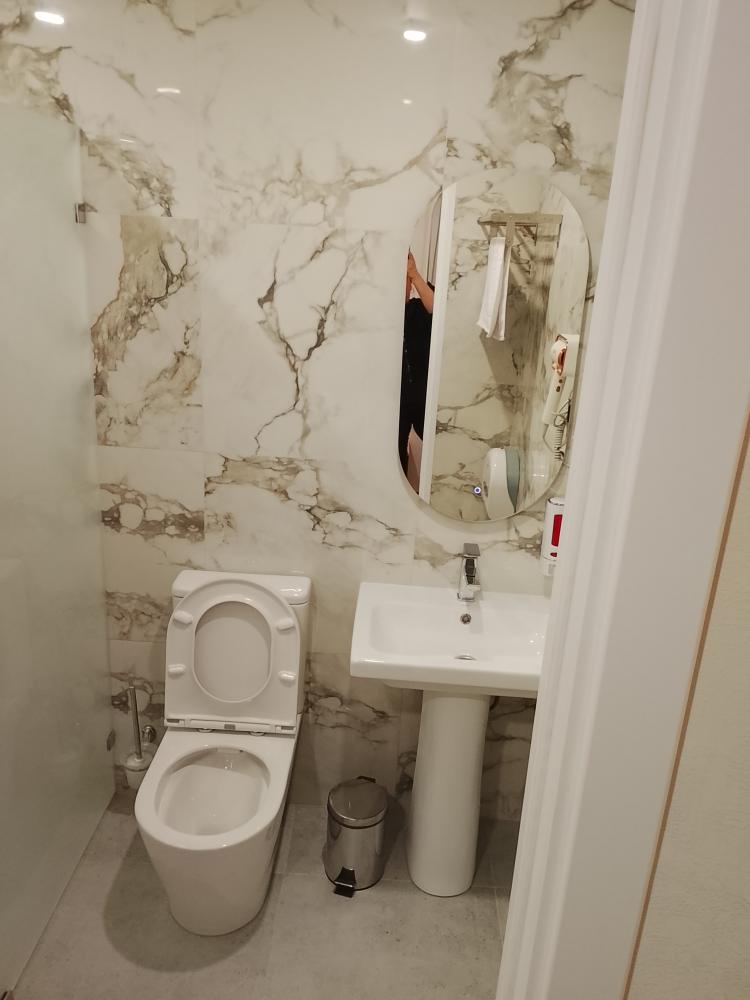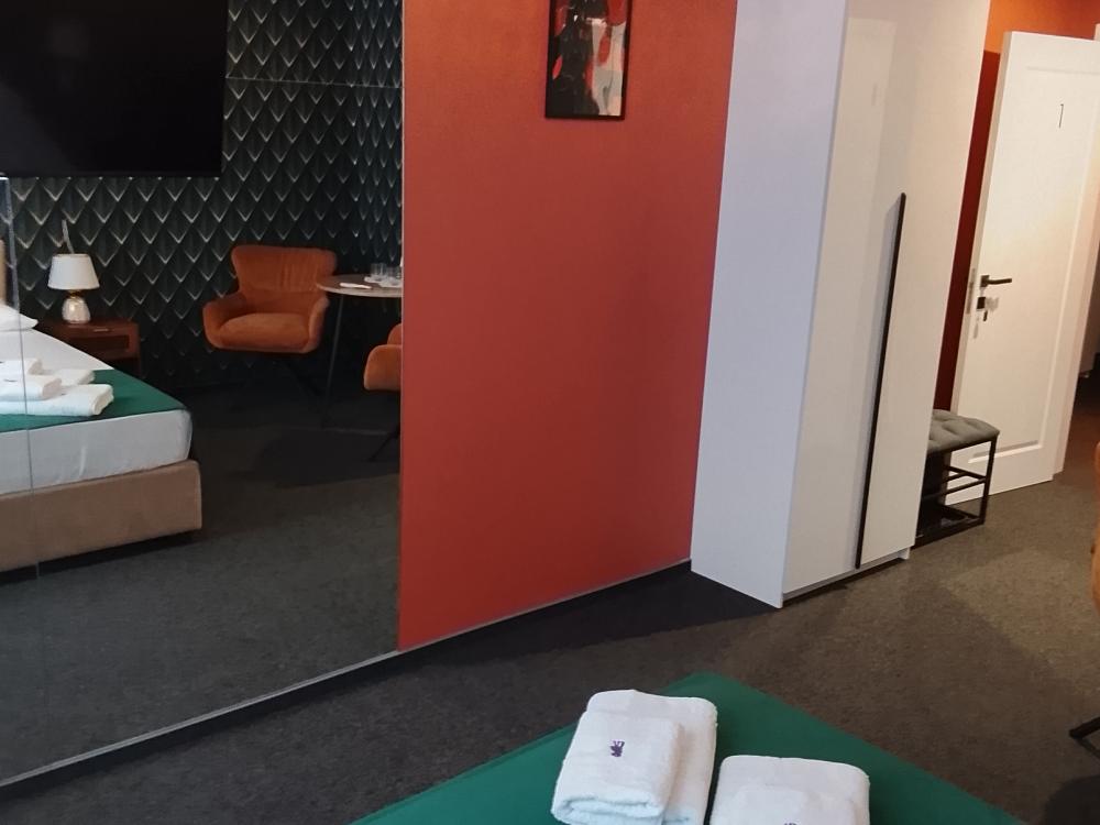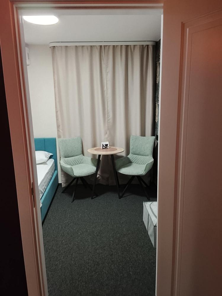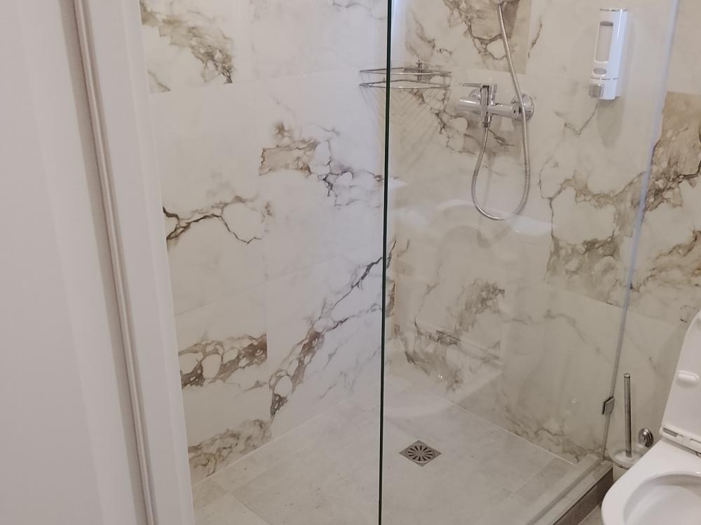 В номере есть большая плазменная панель, сплит-система, большая двуспальная кровать, прикроватные тумбочки, зона отдыха из двух стульев и стола, санузел с душевой кабиной, комплект полотенец, туалетные и ванные принадлежности, а также фен.