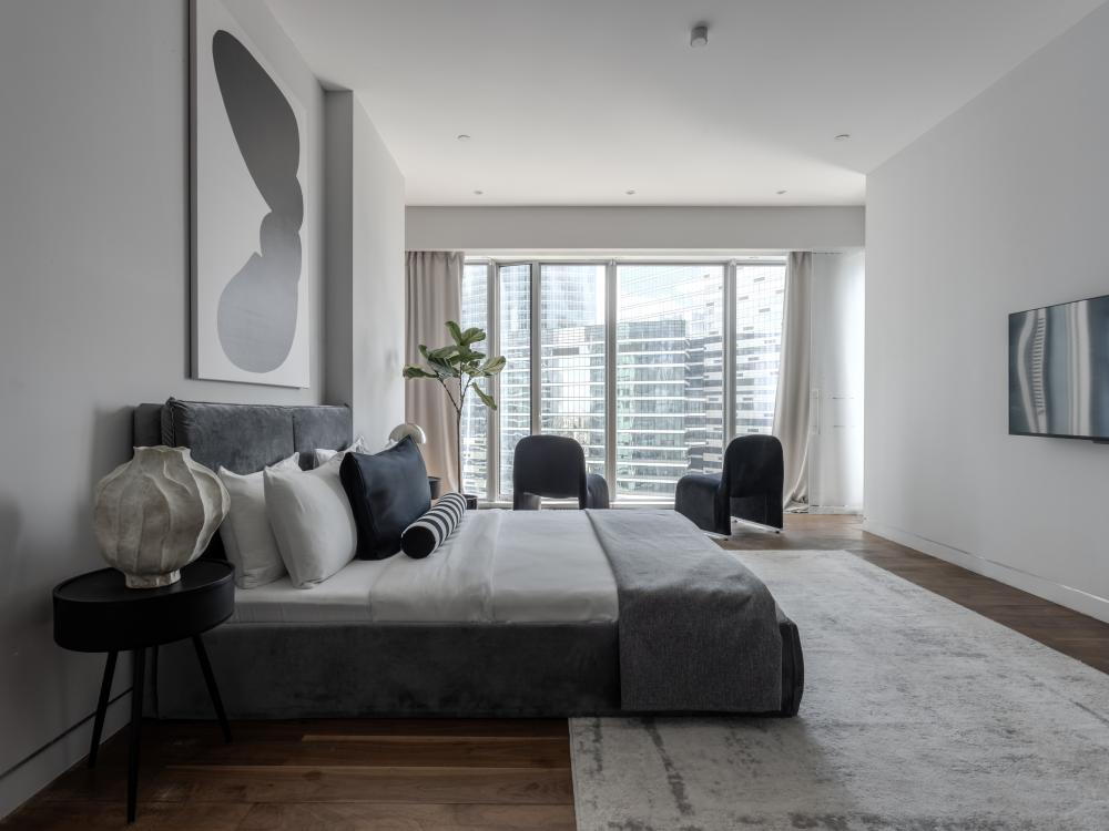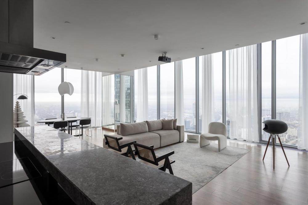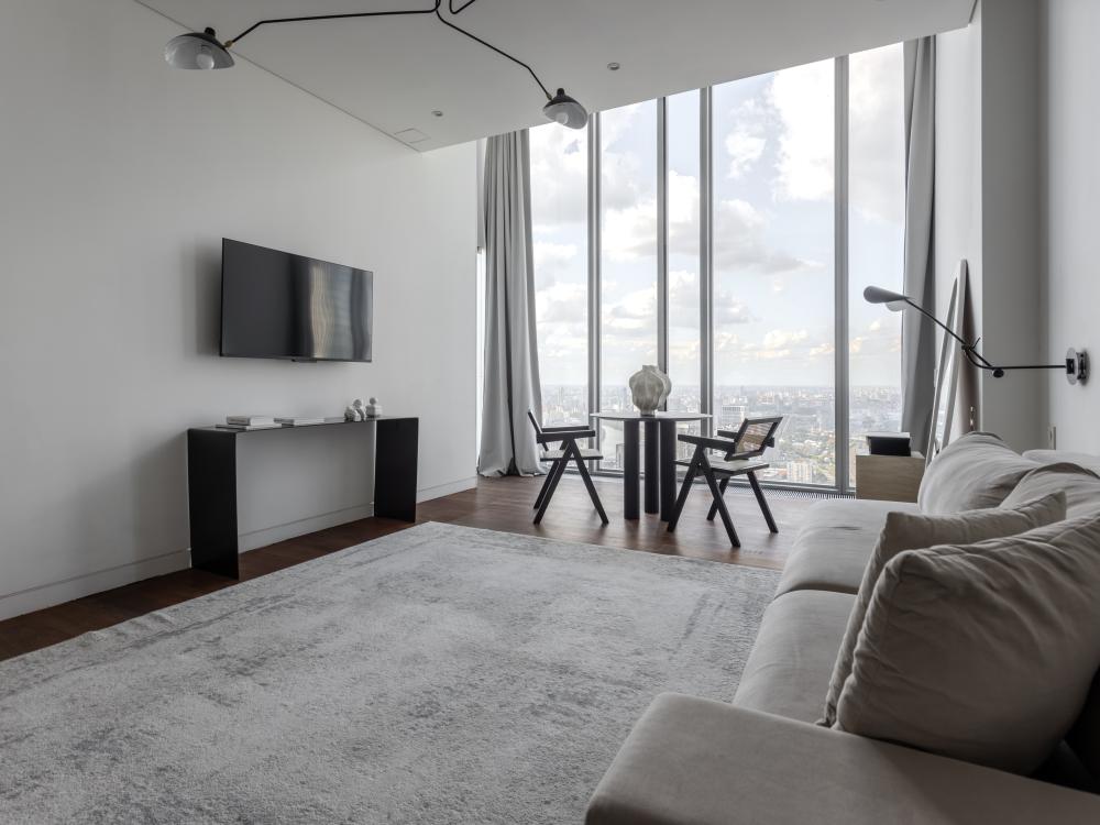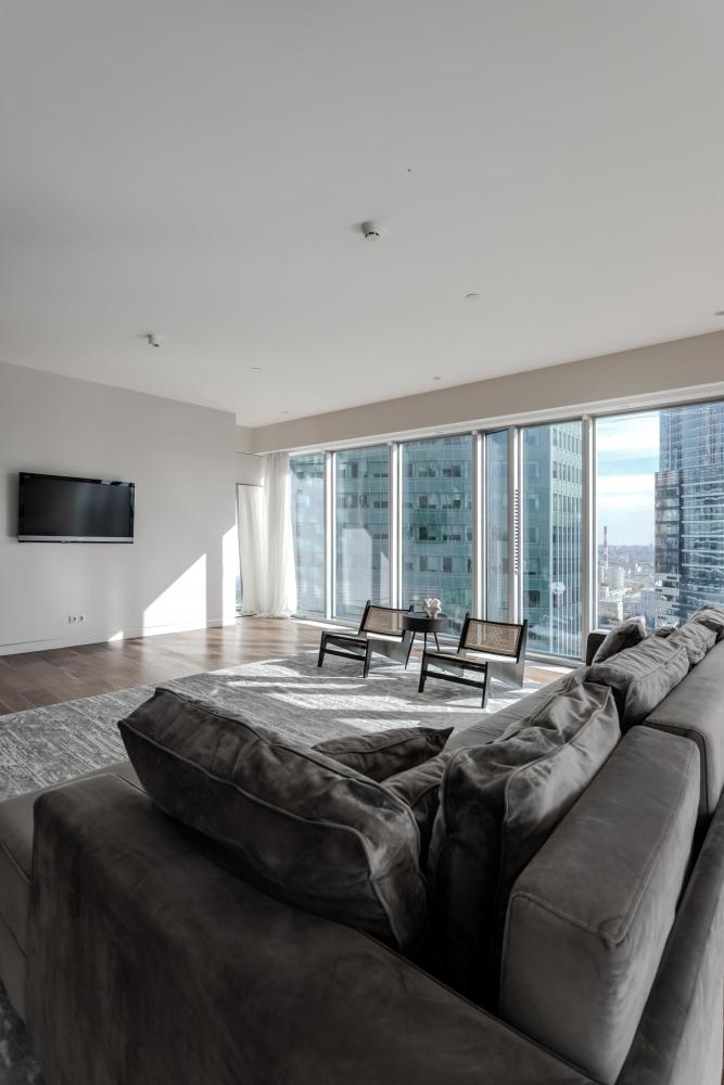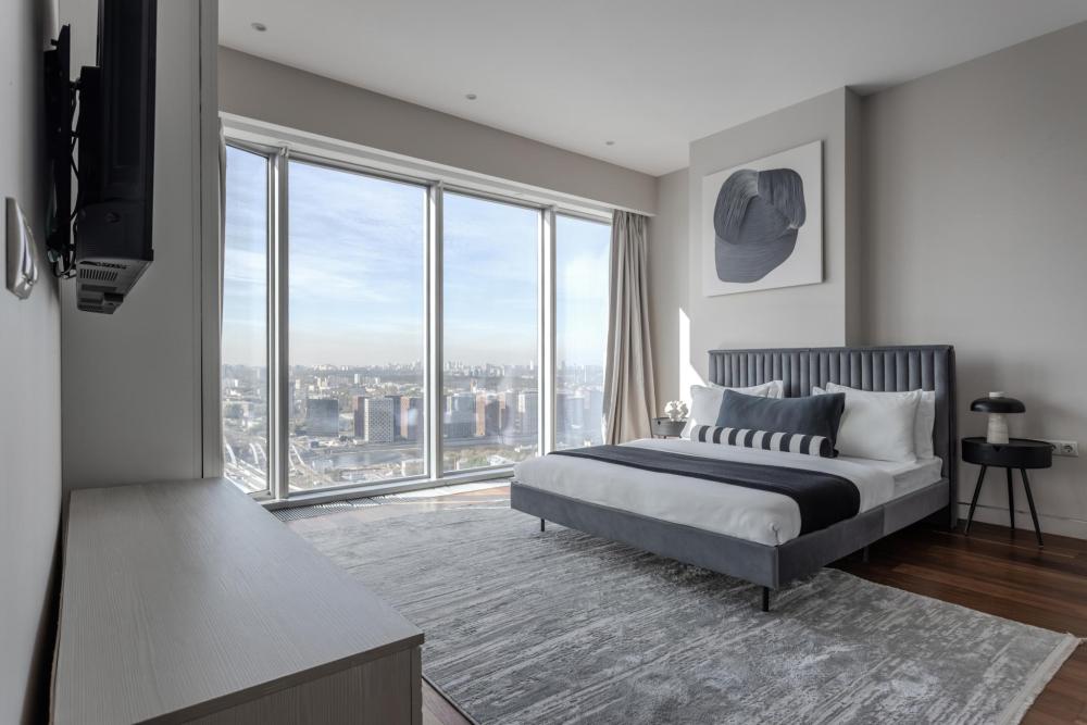 1-4 гостя, 105 кв.м. Двухкомнатные апартаменты FAMILY Apartment с четким зонированием — спальня с двуспальной кроватью и кухня-гостиная с диваном-кроватью, где комфортно разместятся от 1 до 4 гостей. Из панорамных окон открывается вид на закатную сторону — особенно уютно в вечерние часы. Кухня полностью оснащена — от чайника до духовки, чтобы готовить было удобно и просто. Ванная с просторной ванной — отличное место, чтобы расслабиться после насыщенного дня или быстро привести себя в порядок. - Двуспальная кровать - Диван-кровать - Бесплатный Wi-Fi - Интернет-телевидение HD - Кондиционер и система климат-контроля - Чайник - Ванная комната