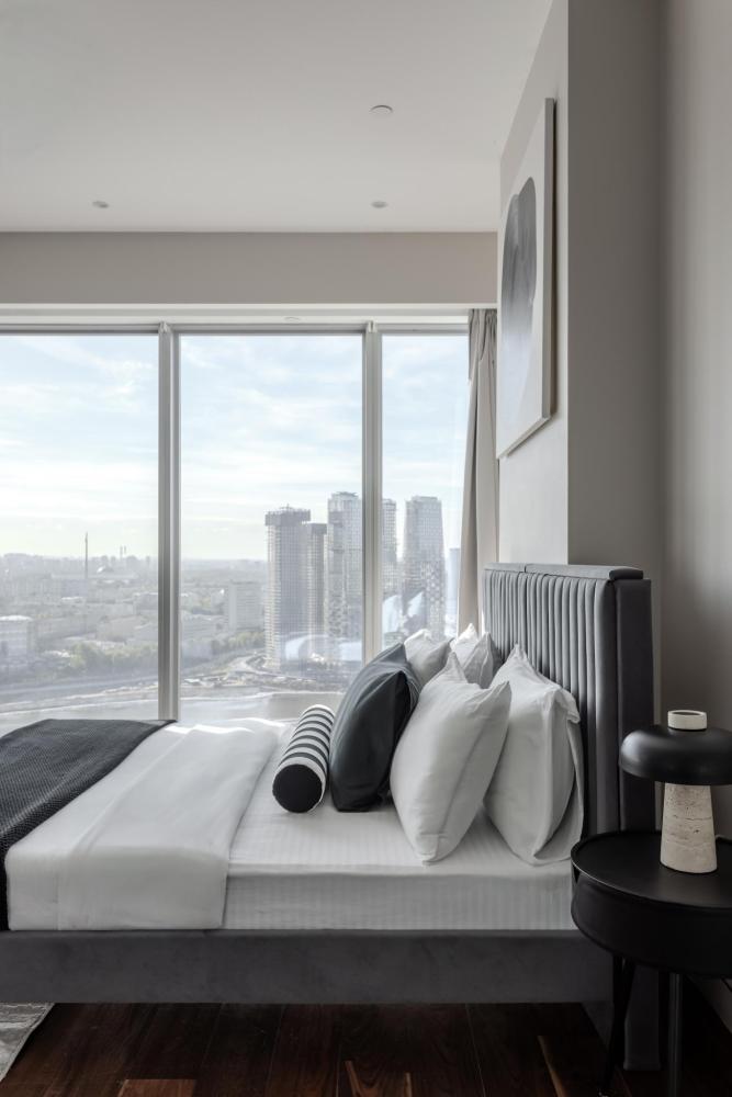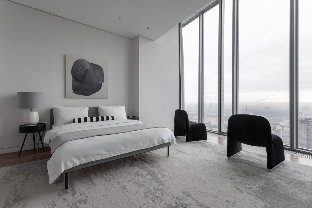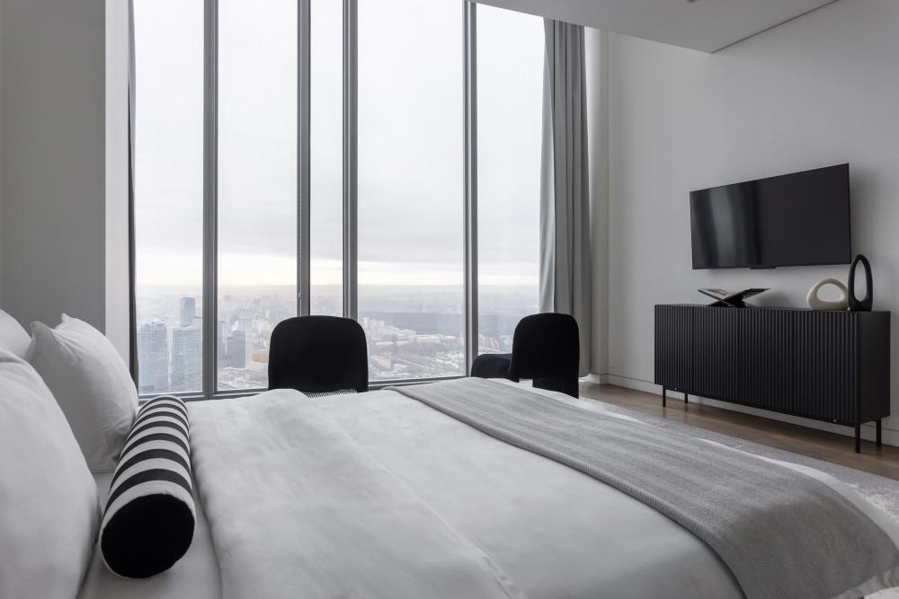 В номере HIGH есть все необходимое. Все, что вам нужно, и ничего лишнего. Идеально подходит для тех, кто хочет насладиться городом с высоты птичьего полета. Из окон номера открывается прекрасный вид на сторону башен Меркурий и Империя. Ванная комната для вашего удобства оборудована как ванной, так и душевой кабиной. Большая двуспальная кровать подарит полноценный сон и зарядит энергией для новых свершений.