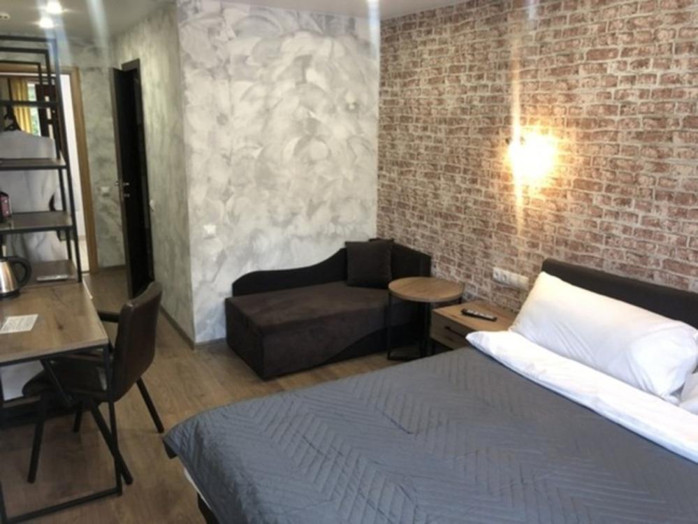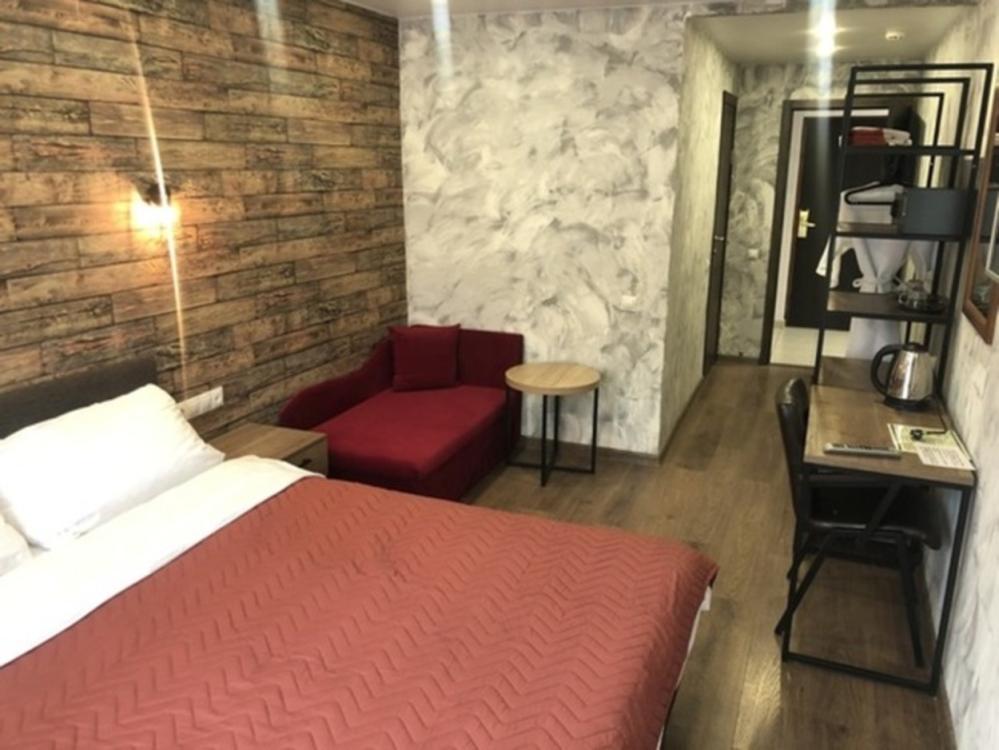 Однокомнатный номер Комфорт, оформлен в стиле лофт и оснащен всем необходимым для комфортного проживания 1-3 гостей от зоны отдыха с Wi-Fi и ЖК ТВ с диагональю более 32' до собственная просторная ванная комната 150х200 кв.м с просторным душем, зеркалом в полный рост. Общая площадь номера 19 квадратных метров, а также номер имеет балкон.