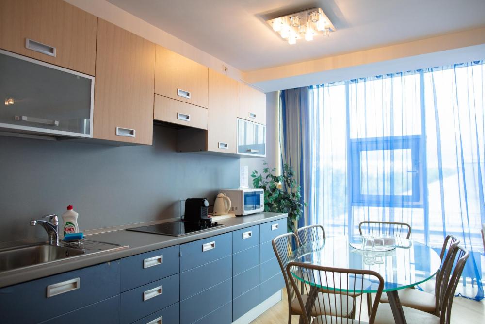 Двухкомнатный номер. Спальная комната, кухня-гостиная. В номере: расширенный набор аксессуаров, просторная ванная комната, банные халаты, тапочки, кухня с бытовой техникой, набор посуды, картины, цветы и пр., телефон, бесплатный Wi-Fi, ТВ. Для гостей гостиницы доступна бесплатная парковка.