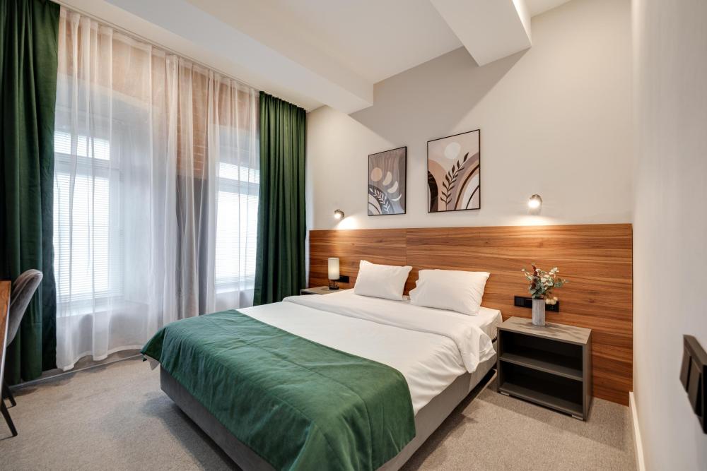 Номера данной категории – это просторные номера, которые отличаются высоким уровнем комфорта. Мебель из высококачественных материалов позволит насладиться всей прелестью отдыха. Идеально подходят для семей с детьми, бизнес-гостей, а также групп туристов. Прекрасный комфортабельный номер в стиле модерн с элементами классики, оснащенный всем необходимым для отдыха. Лучший вариант для длительного пребывания. В номере: одна просторная двуспальная кровать, телевизор с плоским экраном, телефон, электрический чайник, сейф и мини-бар, шкаф, зеркало, письменный стол со стулом, кресло-кровать, фен. В ванной комнате: халаты, полотенца, тапочки и туалетно-косметические принадлежности.