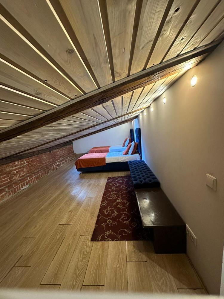Номер находится на 3 этаже (мансарда). Номер с 2 двухспальными кроватью и с 2 раздельными кроватями. Оборудован ванной комнатой (душ), телевизором, холодильником, феном. В стоимость номера входит бесплатно: принадлежности для душа, использование сети Wi-Fi. Гладильная доска на цокольном этаже. Кулер с питьевой и горячей водой на 1 и 2 этажах гостиницы.