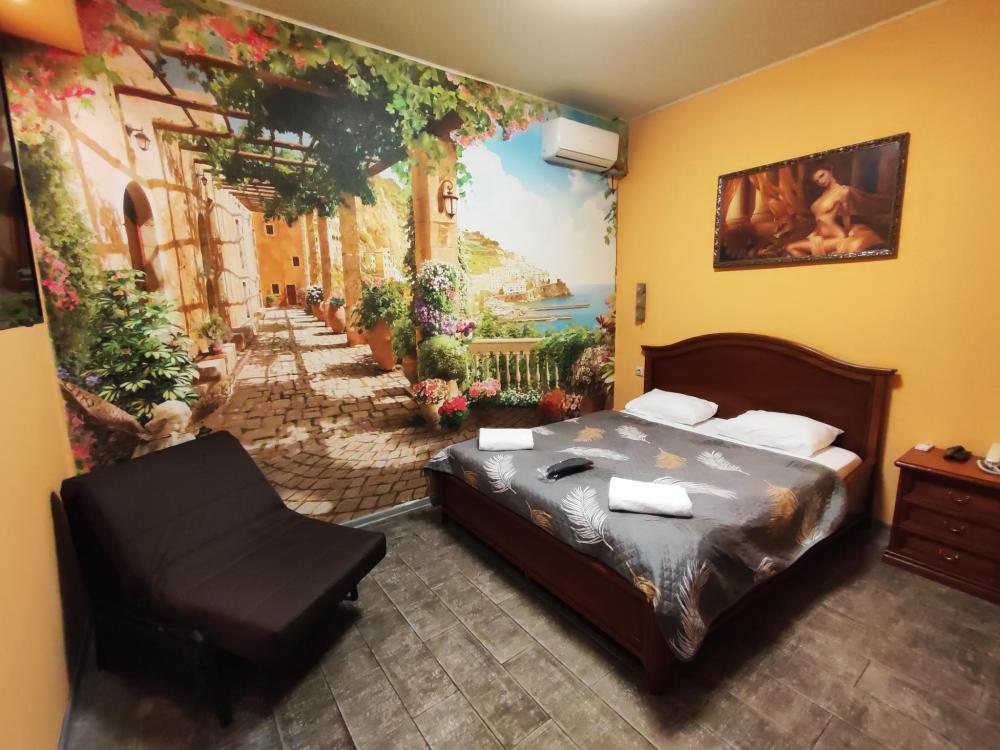 Однокомнатный комфортный номер с одной двуспальной кроватью. Стандартный номер для проживания 1 или 2 гостей. В номере: кондиционер, телевизор, санузел с душем.