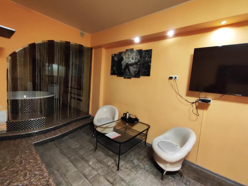 Джакузи в номере — СПА. В номере 2-х спальная кровать Кинг сайз и односпальная кровать. Идеальное сочетание комфорта и функциональности. Наполнение номера включает: двухспальная кровать Кинг сайз; односпальная кровать; кондиционер; вешалка; столик; 2 стула; ЖК телевизор; телефонная связь; беспроводной интернет (Wi-Fi). В номере ванная комната, с необходимыми одноразовыми принадлежностями, набором полотенец.