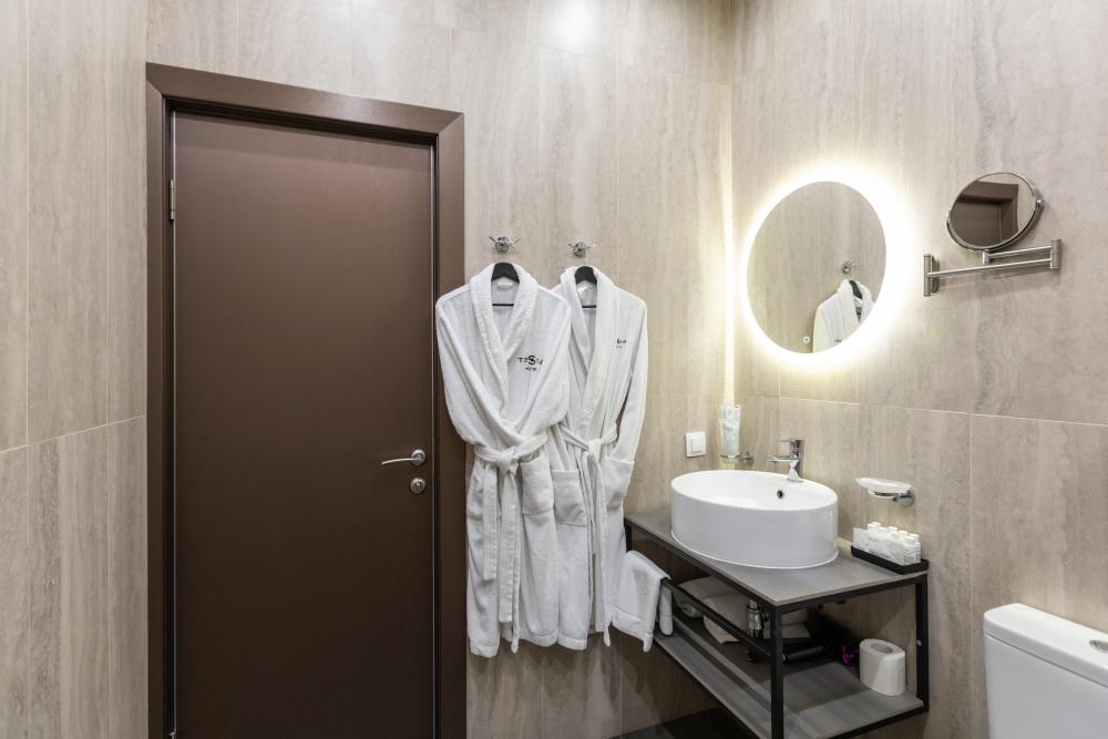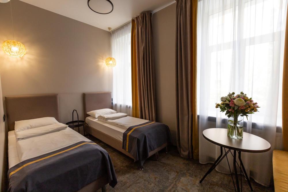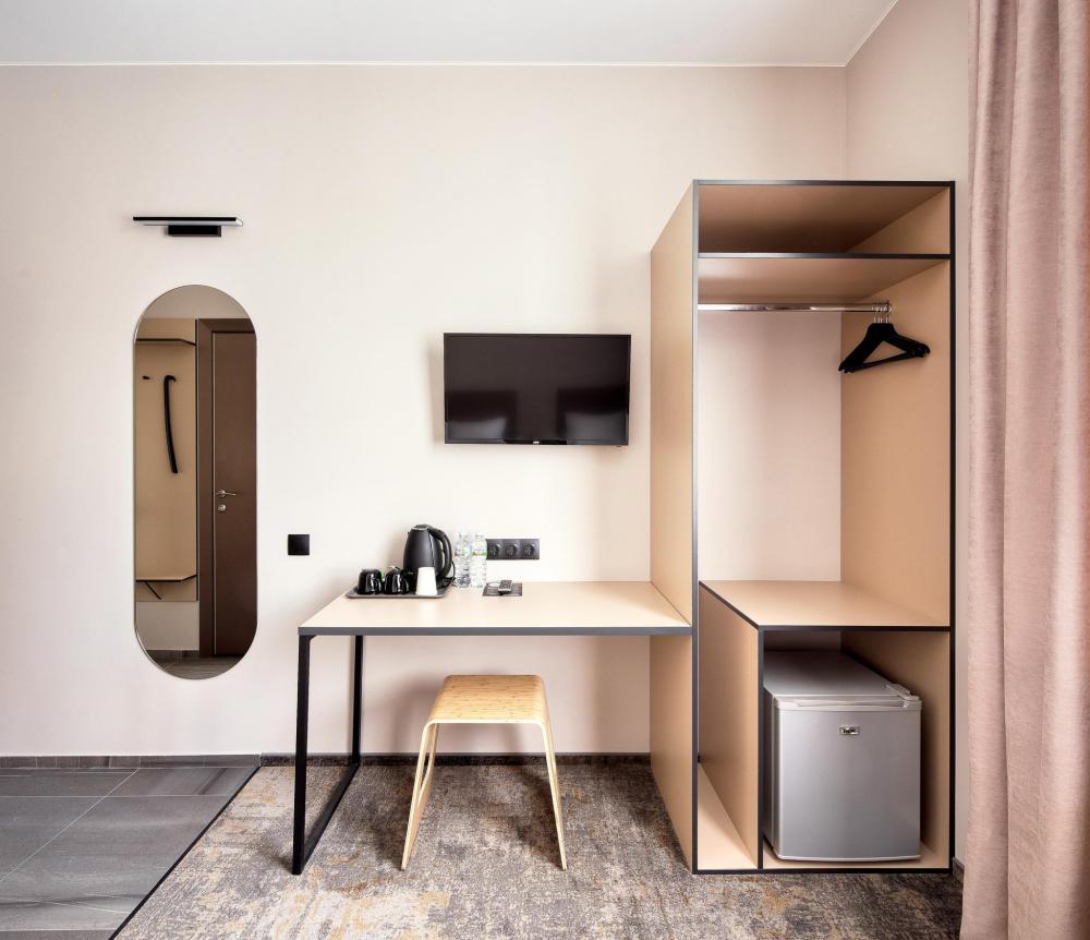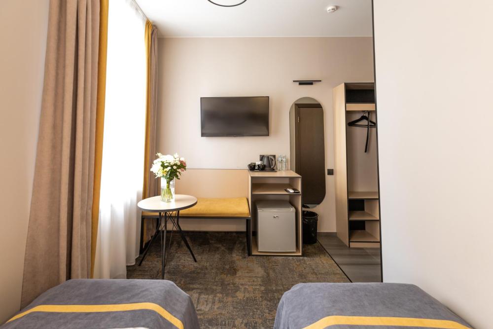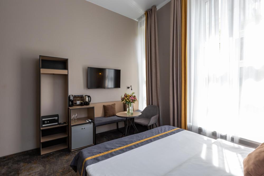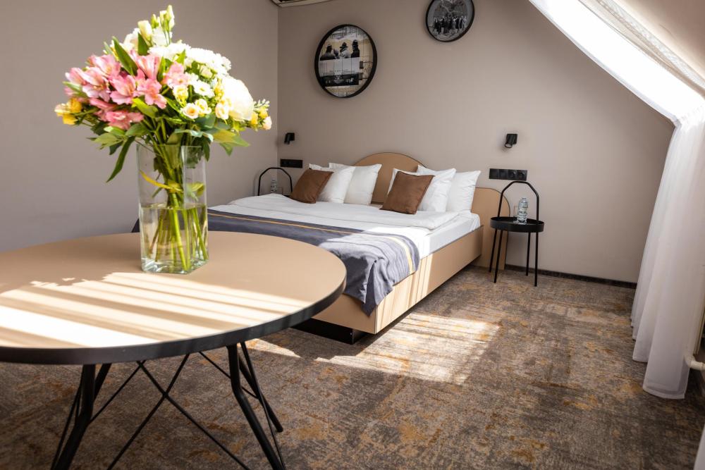 Уютный однокомнатный номер увеличенной площади с кондиционером, выполненный в спокойной цветовой гамме, располагает к отдыху после долгих экскурсий и насыщенного дня. 1 двуспальная или 2 односпальных кровати по желанию гостя. Каждый номер оборудован собственной ванной комнатой с душем. Каждому гостю предоставляются туалетные принадлежности, полотенца и тапочки.