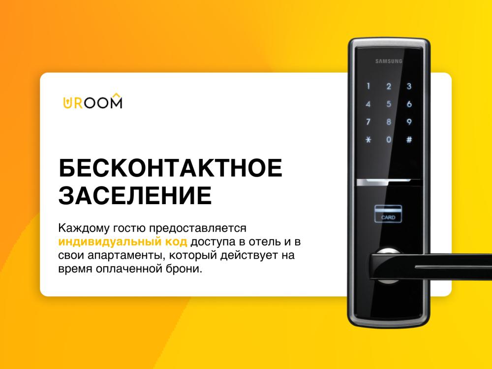 Апартамент 7 Этот номер четырехместный. Площадь- 26 м2. Двухспальная кровать 160*200 на втором ярусе. В гостиной зоне две раскладывающиеся кушетки (внутри Вы найдете подушку, одеяло и постельное белье) Двухуровневые апартаменты находятся в Москве в 20 минутах езды от Кремля и Парка Зарядье. В 15 минутах от Метро Первомайская . В апартаментах есть кухня, плита, холодильник, микроволновая печь, чайник, санузел с душевой, бесплатные туалетно-косметические принадлежности, кондиционер, телевизор с плоским экраном, гостиный уголок. К услугам гостей круглосуточное заселение и бесплатный Wi-Fi. Ждем Вас в гости и готовы Вас принять в любое время суток. Для гостей URoom апарт отель, предлагаются комфортабельные апартаменты, в которых есть все необходимое, для уютного и комфортного проживания. Все апартаменты имеют два уровня, на втором уровне, располагается спальная зона, на первом уровне есть кухонная зона со всем необходимым для приготовления еды, гостиная зона с мягким диваном и телевизором и санузел. В апартаментах для пользования гостей- постельное белье, полотенца, туалетно-косметические принадлежности, фен, посуда, чай и кофе. Так же в апартаментах предусмотрена ежедневная уборка, но если вы хотите, чтобы вас не беспокоили, то можете просто повесить соответствующий знак на ручку двери. Для Вашего удобства мы организовали безключевой доступ в апартаменты. Каждому гостю предоставляется код доступа в отель и в свои апартаменты по которому гости могут в удобное время въезжать и выезжать из апартамента.