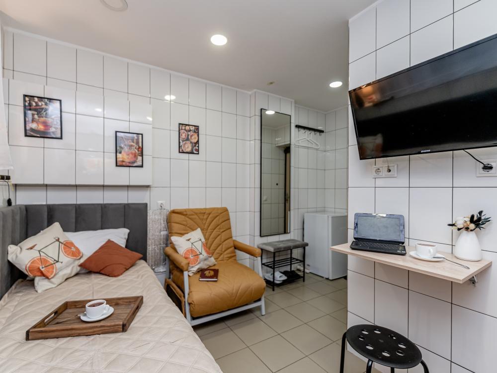 Апартамент 2 Этот номер четырехместный. Площадь- 20 м2. Двухспальная кровать 160*200 на втором ярусе. В гостиной зоне раскладывающийся двухспальный диван (внутри Вы найдете подушку, одеяло и постельное белье) Двухуровневые апартаменты находятся в Москве в 20 минутах езды от Кремля и Парка Зарядье. В 15 минутах от Метро Первомайская . В апартаментах есть кухня, плита, холодильник, микроволновая печь, чайник, санузел с душевой, бесплатные туалетно-косметические принадлежности, телевизор с плоским экраном, гостиный уголок. К услугам гостей круглосуточное заселение и бесплатный Wi-Fi. Ждем Вас в гости и готовы Вас принять в любое время суток. Для гостей URoom апарт отель, предлагаются комфортабельные апартаменты, в которых есть все необходимое, для уютного и комфортного проживания. Все апартаменты имеют два уровня, на втором уровне, располагается спальная зона, на первом уровне есть кухонная зона со всем необходимым для приготовления еды, гостиная зона с мягким диваном и телевизором и санузел. В апартаментах для пользования гостей- постельное белье, полотенца, туалетно-косметические принадлежности, фен, посуда, чай и кофе. Так же в апартаментах предусмотрена ежедневная уборка, но если вы хотите, чтобы вас не беспокоили, то можете просто повесить соответствующий знак на ручку двери. Для Вашего удобства мы организовали безключевой доступ в апартаменты. Каждому гостю предоставляется код доступа в отель и в свои апартаменты по которому гости могут в удобное время въезжать и выезжать из апартамента.