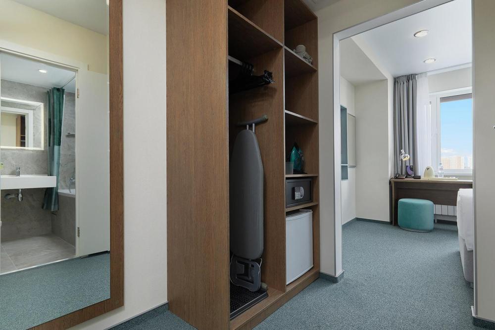 Новые дизайнерские номера первой категории с односпальной кроватью, расположенные на самом высоком жилом этаже отеля, откуда открывается вид на город с высоты птичьего полета. Шесть из номеров «Арт» предусмотрены для одноместного размещения. В дизайне номеров, коридоров и лифтовых холлов применены технические решения для энергосбережения: свет включается по сигналам датчиков движения, навигация по коридорам продублирована направлением светильников для удобства гостей. 1 односпальная кровать (120х200см) Проживание ребёнка на месте родителей до 7 лет - бесплатно. Расположение: 28 этаж. К Вашим услугам: • 1 односпальная кровать (120х200см) • LCD-телевизор с функцией Smart-TV (приветственный экран, прогноз погоды, электронный консьерж, просмотр фотографий, просмотр меню, просмотр счета и доступ в интернет-браузер) • Устройство для зарядки гаджетов с функцией воспроизведения музыки • Яндекс Станция – умная колонка с Алисой • Косметика в ванной комнате бренда Aroma Garden • Чайная станция (чай черный и зеленый, кофе пакетированный, сахар, размешиватель) • Вода питьевая негазированная • Халаты и тапочки в номере • Бесплатный беспроводной интернет Wi-Fi • Бесплатное посещение фитнес-центра • Бесплатная чистка обуви • Услуги прачечной по запросу • Заказ еды и напитков в номер по меню "Рум-сервис" круглосуточно • Кулер с горячей и холодной водой на этаже • Прачечная самообслуживания на этаже (машины для стирки и сушки вещей, капсулы для стирки, гладильные принадлежности)