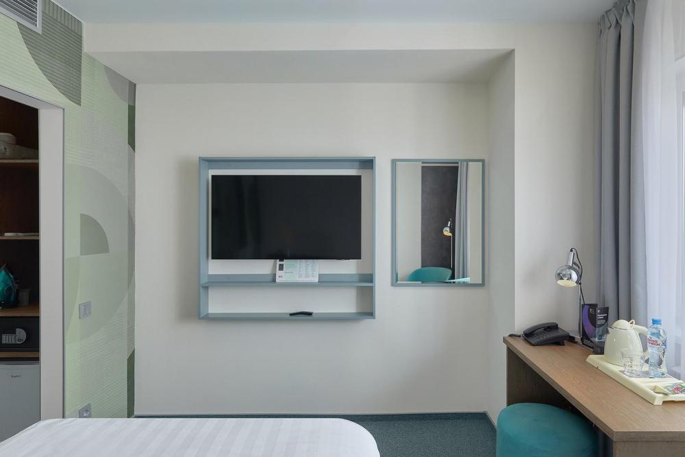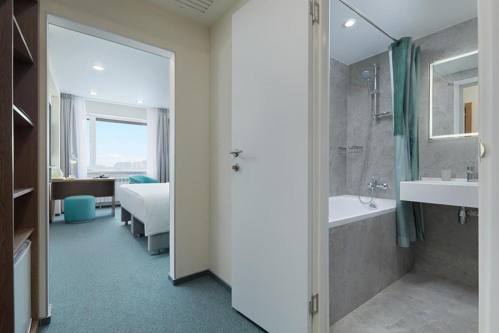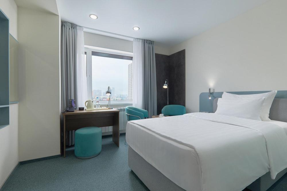 Современный номер с двуспальной кроватью (180х200) для тех, кто ценит удобство и комфорт. Лаконичный дизайн, качественная отделка и профессиональное оснащение служат основой для вашего отдыха. Расположение: 6-28 этаж. К услугам гостей: Приветственная открытка в номере, LCD – телевизор, Док-станция с функцией подзарядки мобильных устройств на Android и iOS и воспроизведения музыки, а так же smart - часы, помогающие соблюдать режим сна, Халаты в номере, Косметика в ванной комнате бренда Hotel collection, Бесплатный беспроводной интернет Wi-Fi, Бесплатное посещение фитнес-центра, Бесплатная чистка обуви, Услуги прачечной и химчистки по запросу, Заказ еды и напитков в номер по меню "Рум-сервис" круглосуточно, Кулер с горячей и холодной водой на этаже, Гладильная комната на этаже.