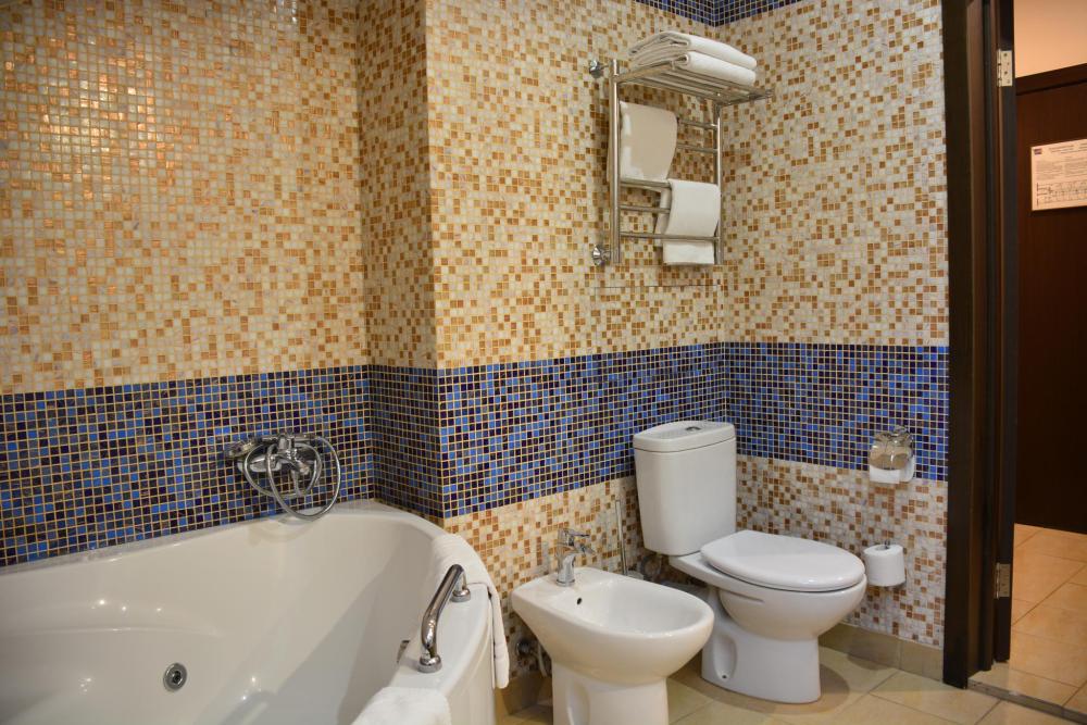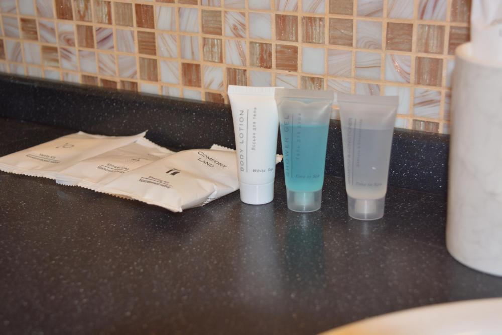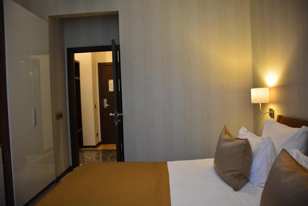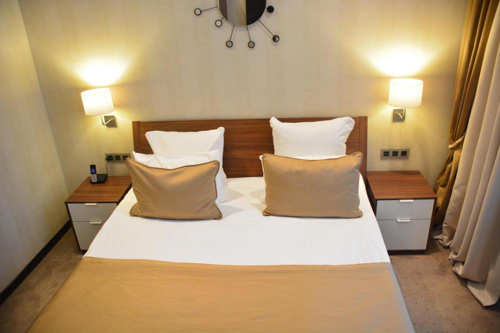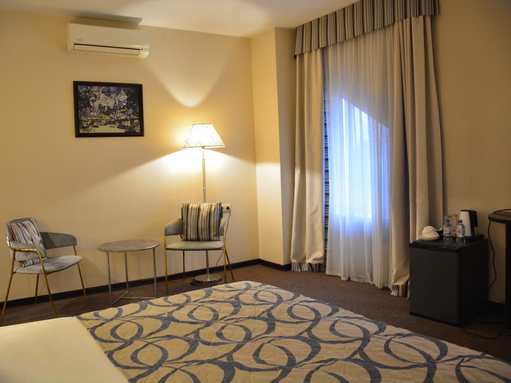В номере: двуспальная кровать с ортопедическим матрасом, шкаф-купе, Wi-Fi, телевизор-ЖК, телефон, сейф, кондиционер, мини-бар, ванная комната с душевой кабиной, косметические принадлежности, тапочки, фен.