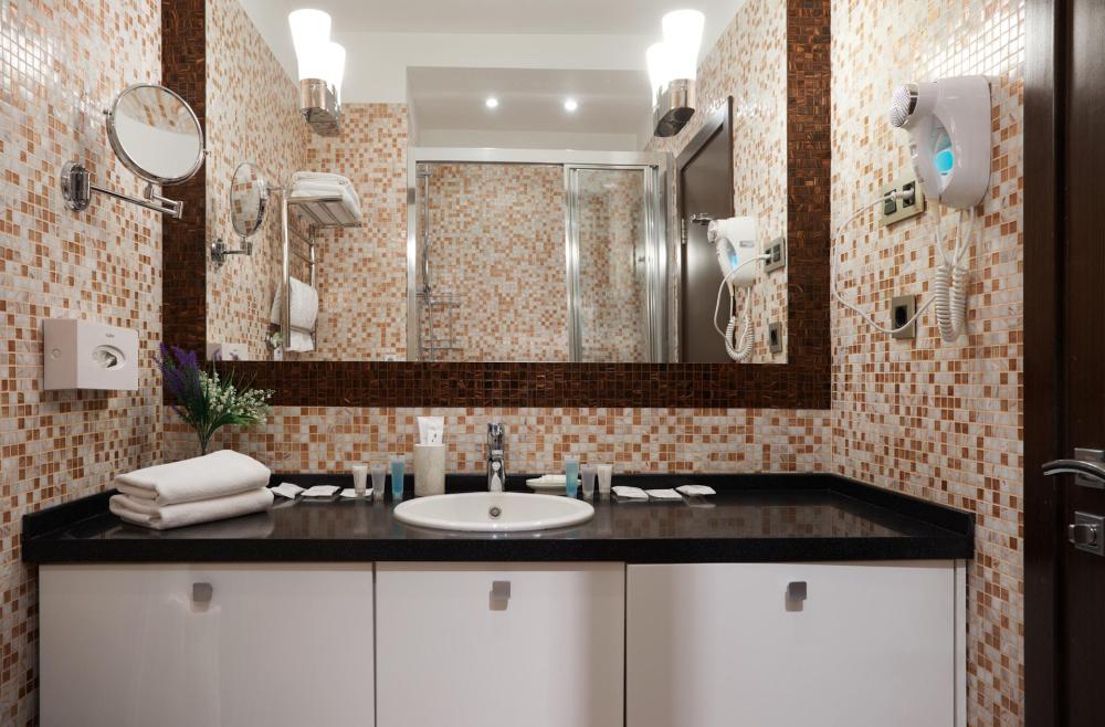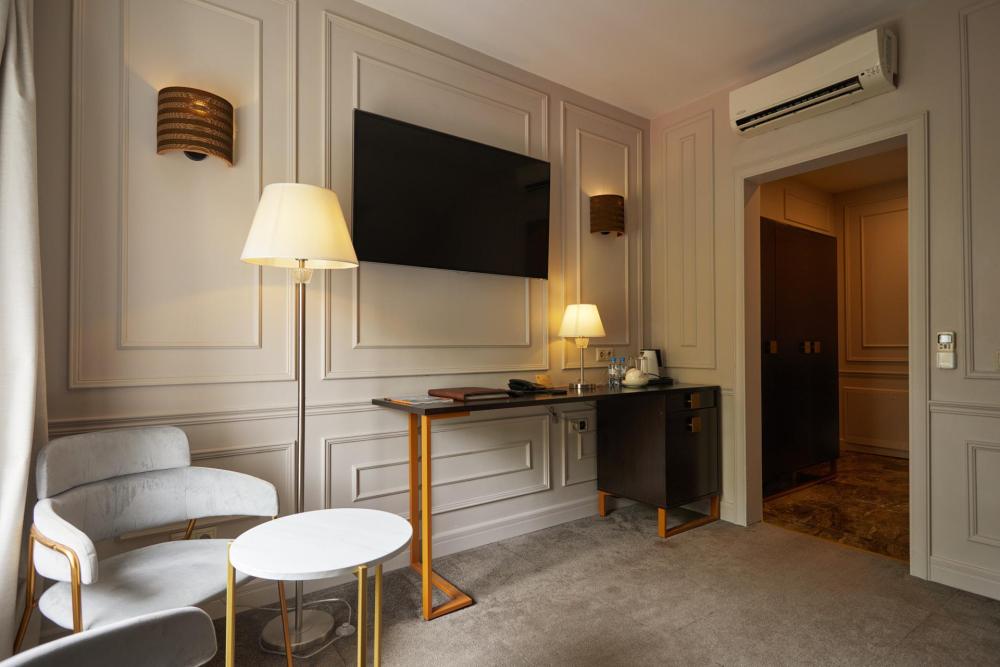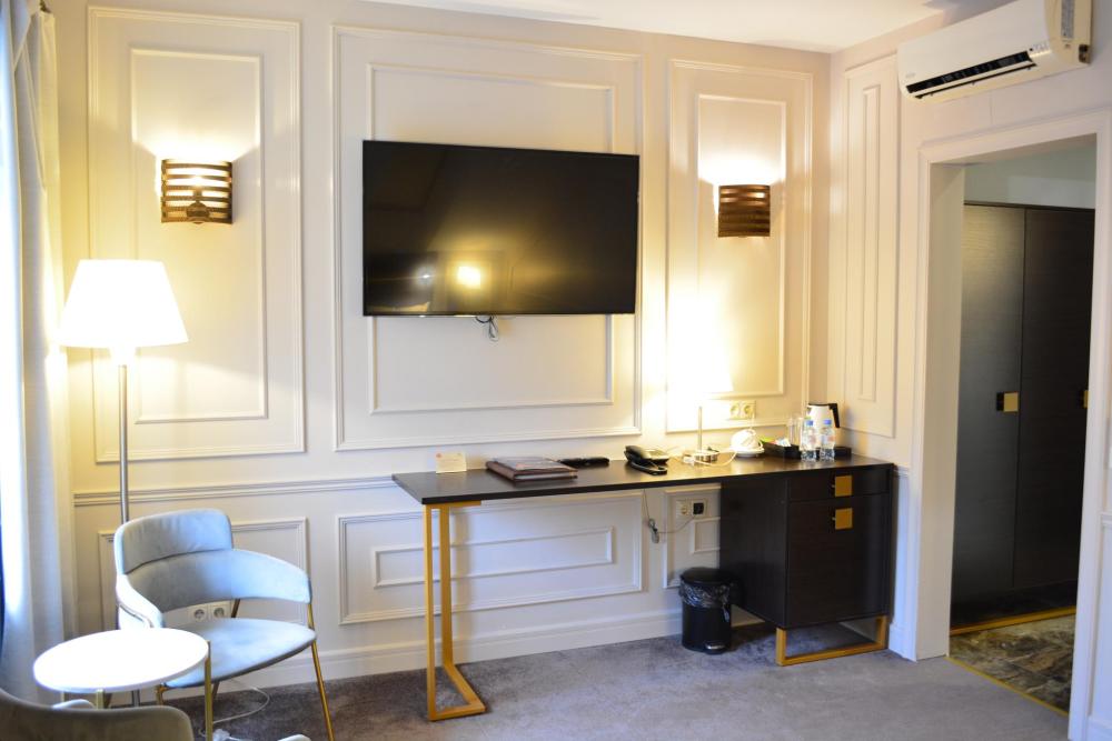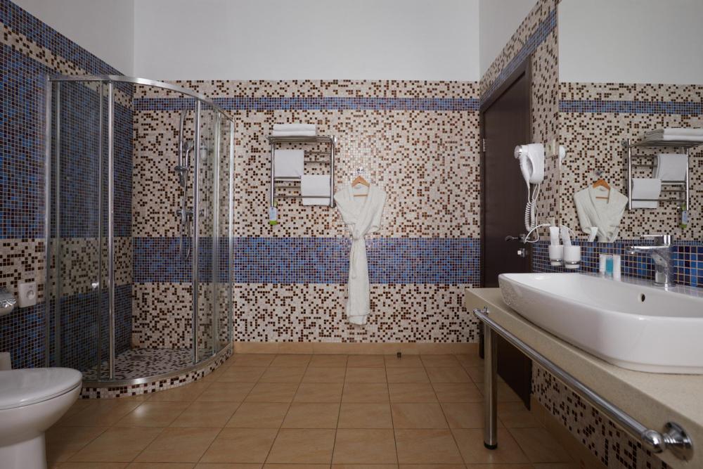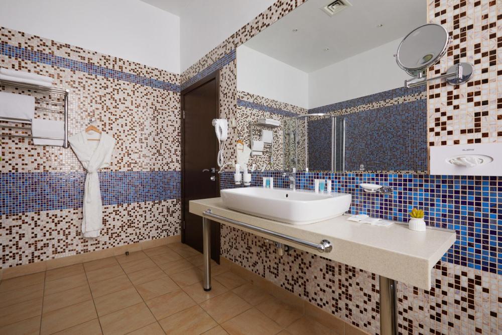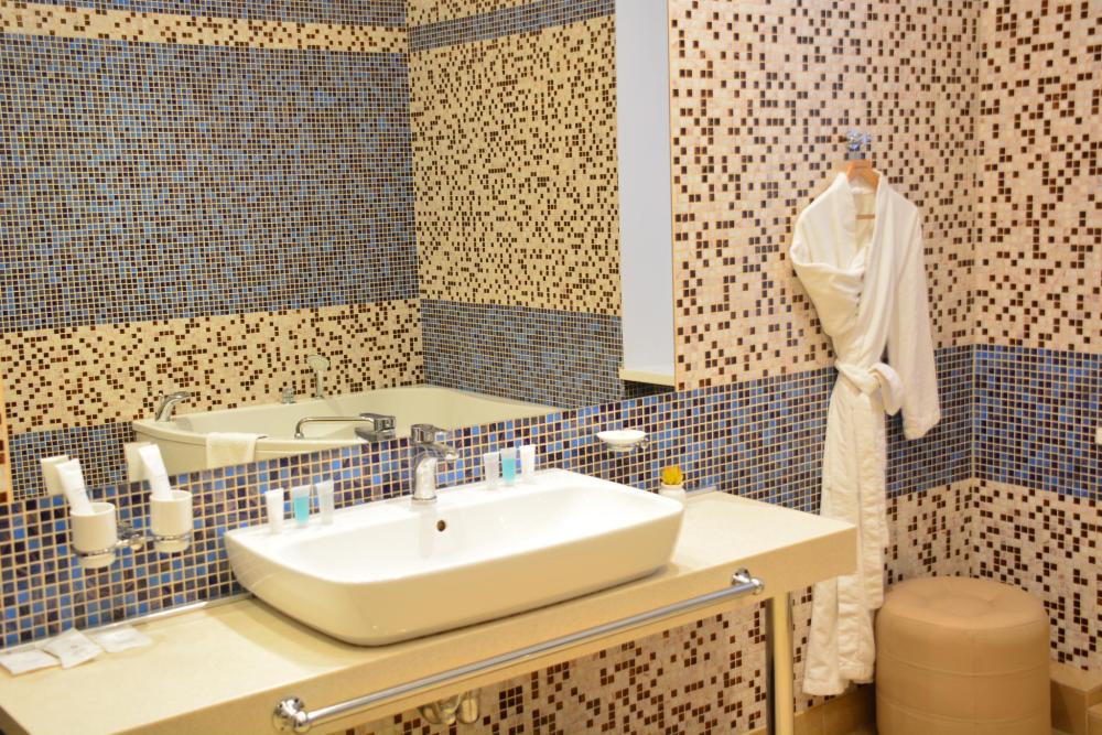 В номере: двуспальная кровать с ортопедическим матрасом, шкаф-купе, Wi-Fi, телевизор-ЖК, телефон, сейф, кондиционер, мини-бар, ванная комната с душевой кабиной, косметические принадлежности, тапочки, фен.