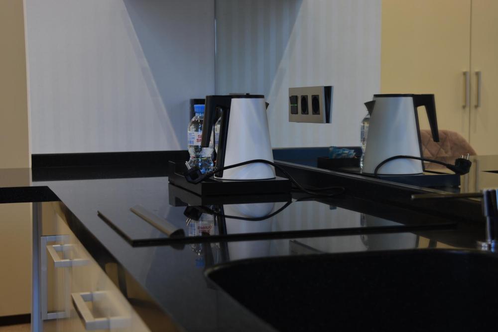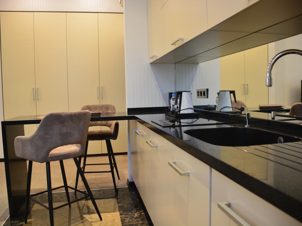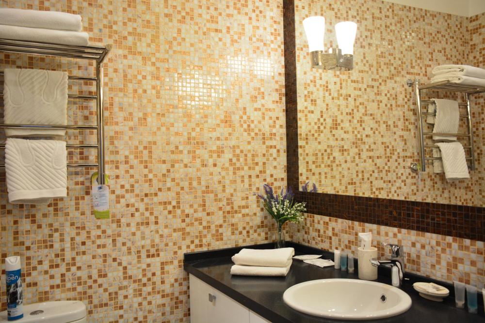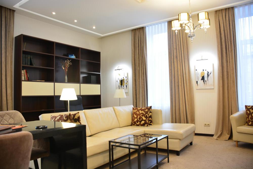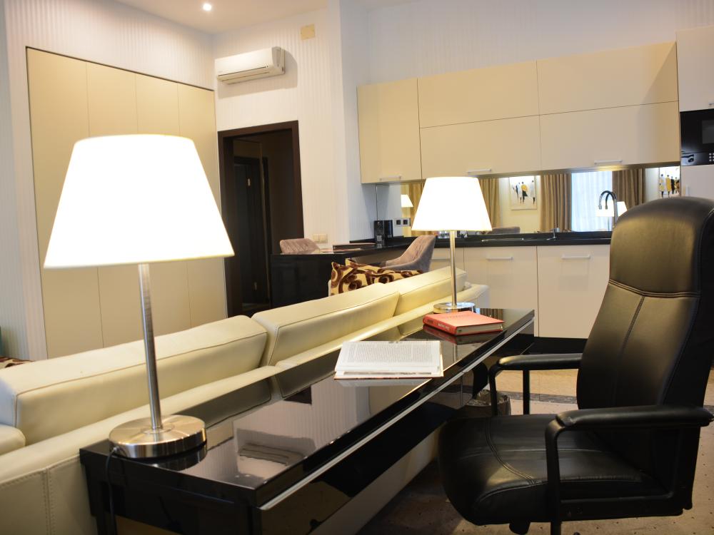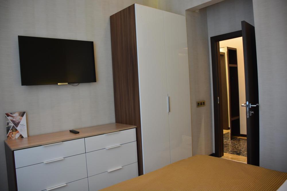 Уютные двухкомнатные апартаменты. В номере: спальная комната с двуспальной кроватью, гостиная, совмещенная с кухней, диван, кресло, шкаф-купе, гардероб, комод, два телевизора с плоским экраном, Wi-Fi, телефон, рабочий стол, сейф, расширенный набор косметических принадлежностей, тапочки, халаты.
