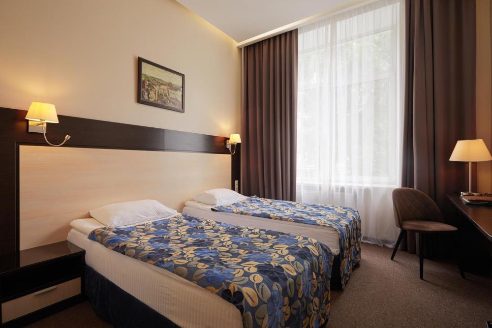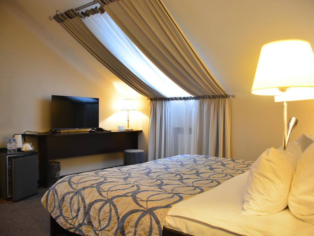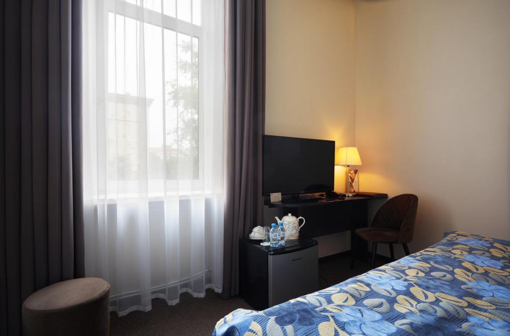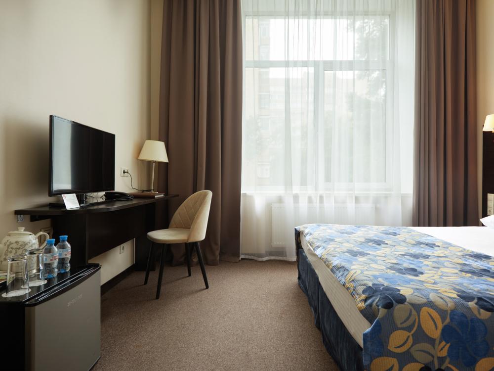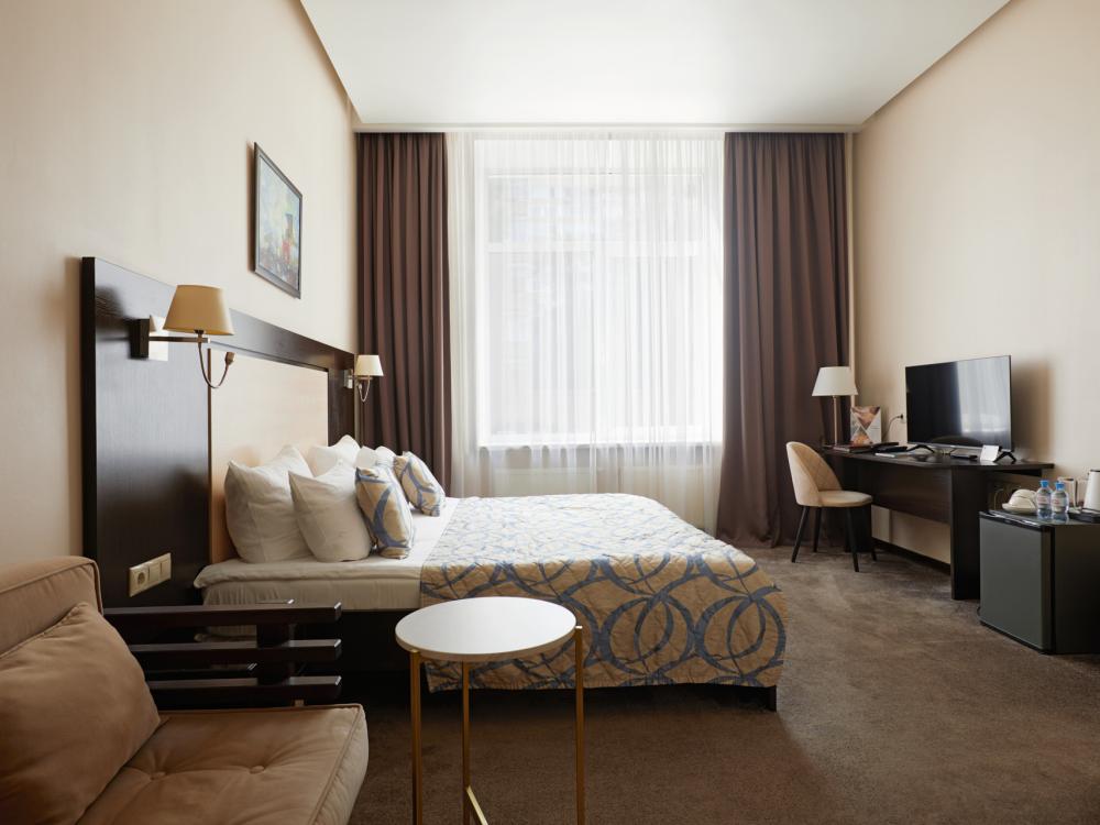 Однокомнатный номер с одной двуспальной кроватью или двумя односпальными кроватями. В номере: двуспальная кровать или две односпальные кровати с ортопедическим матрасом, шкаф-купе, Wi-Fi, телевизор-ЖК, телефон, сейф, мини-бар, кондиционер, ванная комната с душевой кабиной, косметические принадлежности, тапочки, фен.