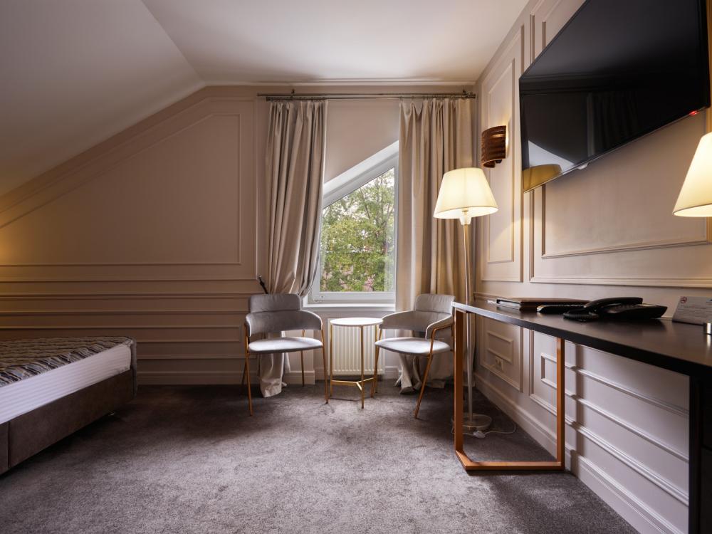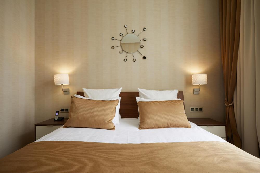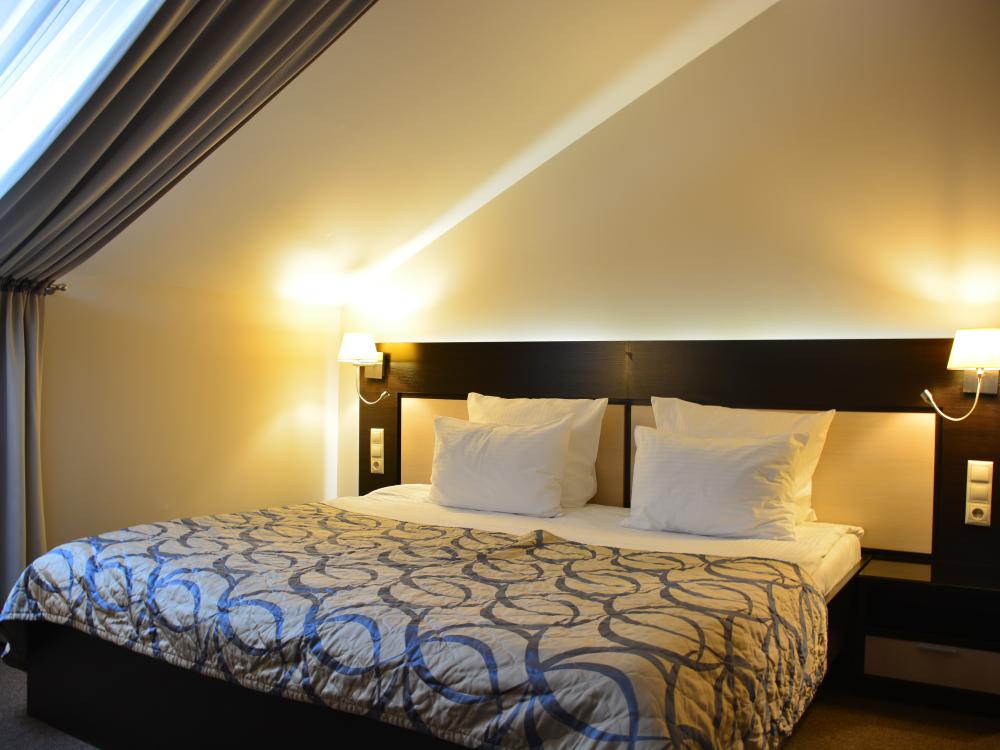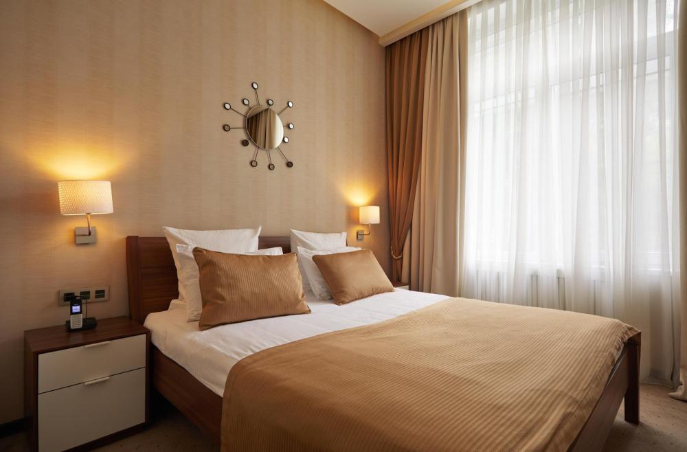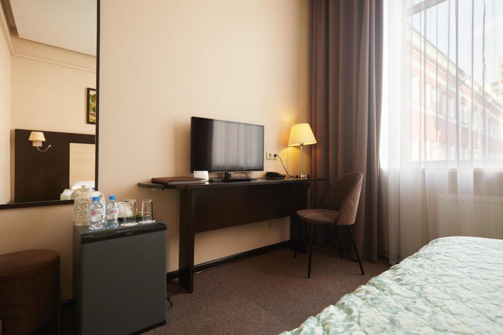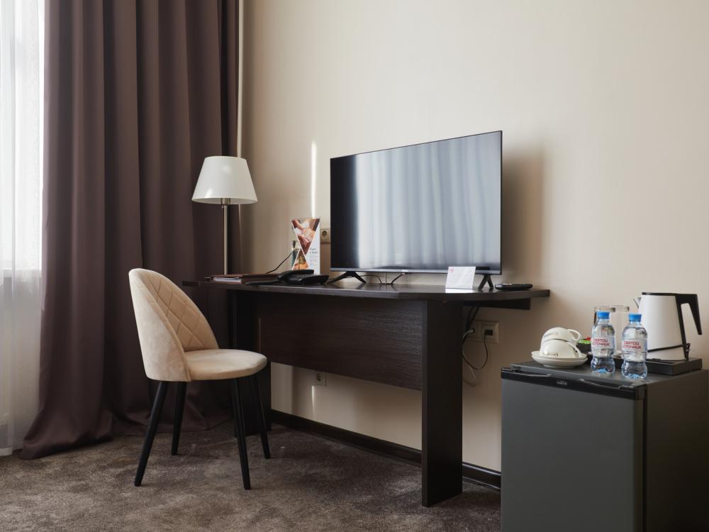 Однокомнатный номер с одной двуспальной кроватью или двумя односпальными кроватями. В номере: двуспальная кровать или две односпальные кровати с ортопедическим матрасом, шкаф-купе, Wi-Fi, телевизор-ЖК, телефон, сейф, мини-бар, кондиционер, ванная комната с душевой кабиной, косметические принадлежности, тапочки, фен.