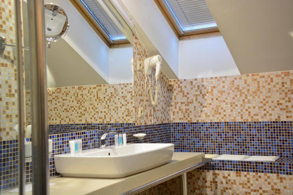Уютный однокомнатный номер площадью 14 кв.м. с одной широкой кроватью для одного или двух человек, расположенный на третьем - мансардном этаже отеля. Оснащен всем необходимым оборудовнием, телефон, спутниковое ТВ, WI-FI. Полный комплект косметических принадлежностей