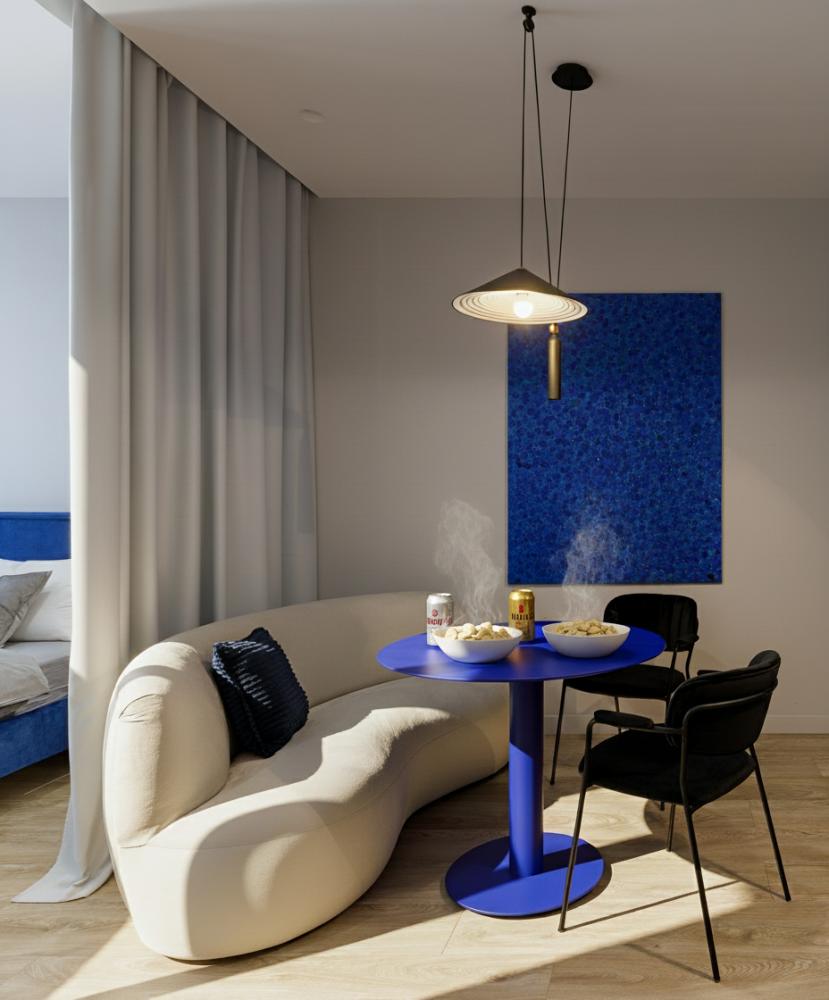 Трехкомнатные апартаменты на проспекте Мира. Светлая гамма из пастельно-голубого, нежно-персикового и кремово-белого цветов создают ощущение нахождения в облаках, а высокое расположение на 17 этаже с видом на город позволяет почувствовать себя на вершине...