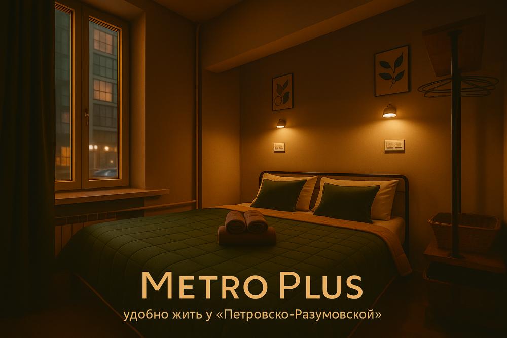 ? Metro Plus — удобно жить у «Петровско-Разумовской» Metro Plus — апарт-отель у метро «Петровско-Разумовская». Просторные апартаменты с кухней, Wi-Fi и продуманным комфортом. Формат, в котором легко жить — будь то командировка, короткая поездка или длительное пребывание в столице. ?...