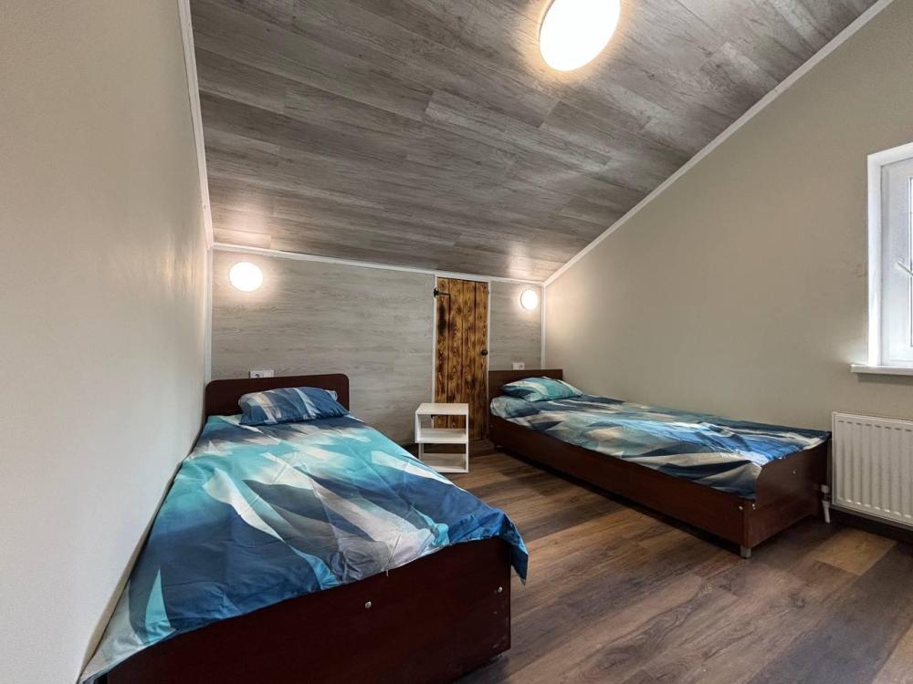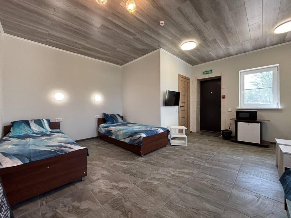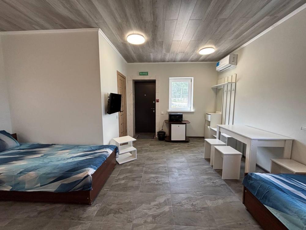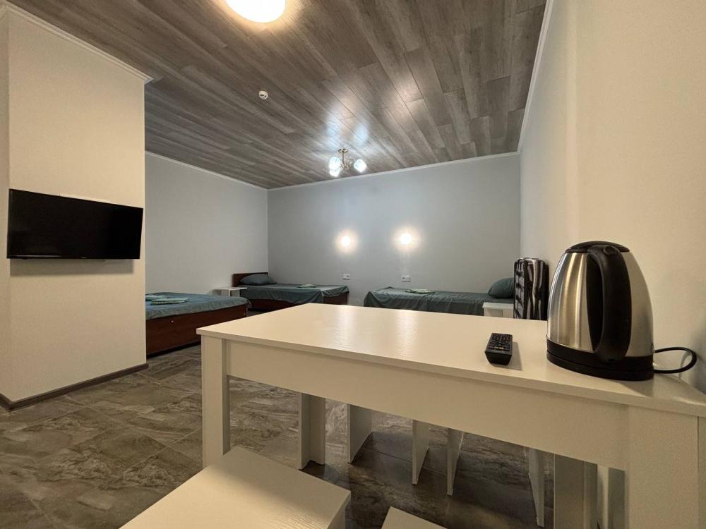 Номер с удобствами: телевизор, СВЧ-печь, электрический чайник, холодильник, кондиционер, постельное бельё, полотенца, душ с горячей водой. В одной из комнат отсутствует окно.