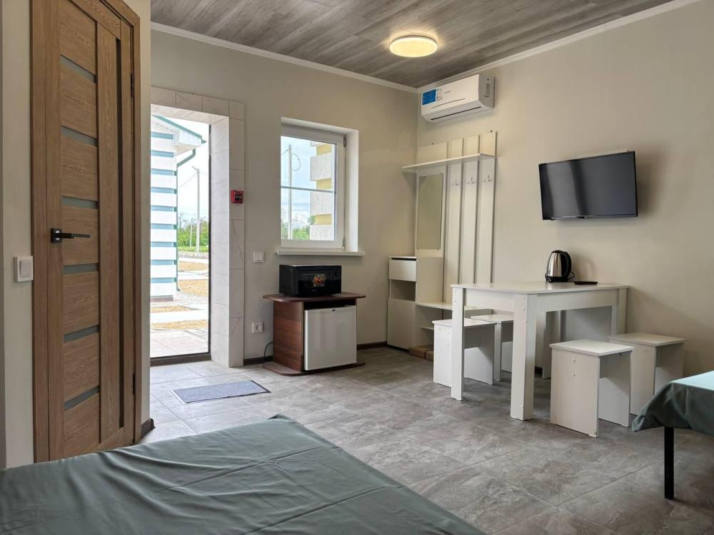 Номер с удобствами: телевизор, СВЧ-печь, электрический чайник, холодильник, кондиционер, постельное бельё, полотенца, душ с горячей водой.