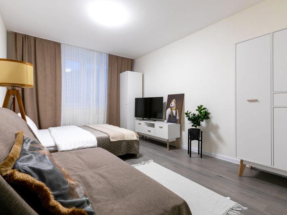 Просторная, уютная и чистая квартира в новом доме, имеется вся необходимая для комфортного проживания мебель и бытовая техника, а также посуда и столовые приборы. Гостям предоставляются свежие полотенца и чистое постельное белье. В комнате двуспальная кровать и выдвижной двуспальный диван, на кухне такой же двуспальный диван. Возможно комфортно разместиться вшестером. Возле дома расположено много точек общественного питания и продуктовых магазинов, а также других точек социальной инфраструктуры. Двор оборудован большой детской площадкой. До метро Девяткино 10-15 минут пешком. Рядом выезд на КАД.