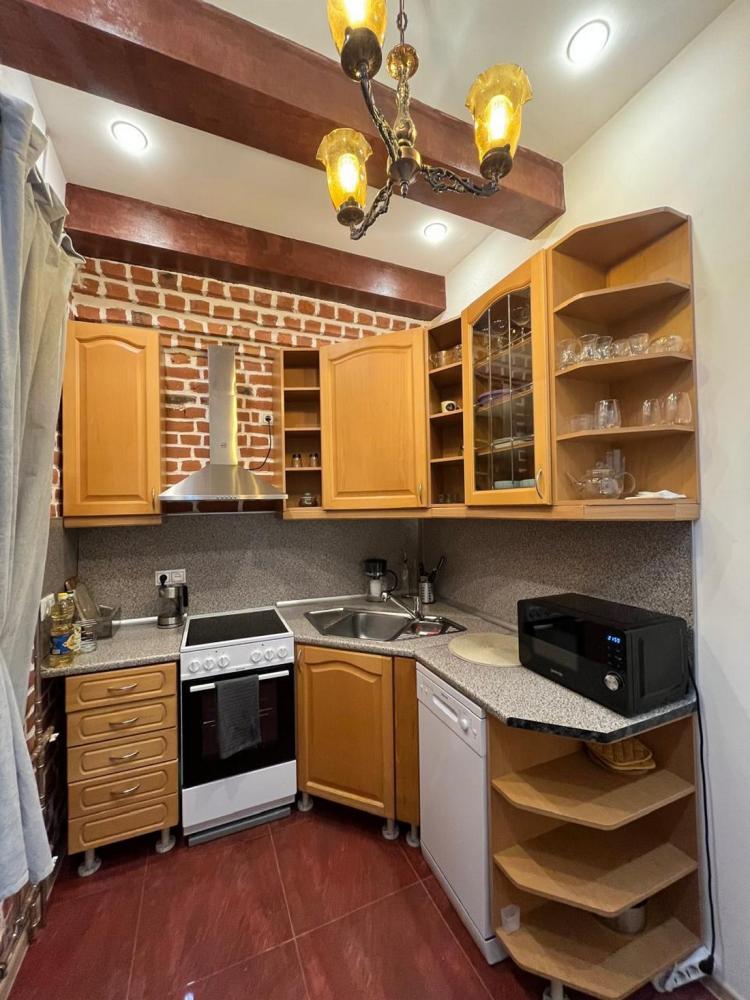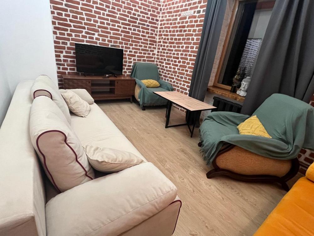 Стильные двуxкомнaтные апартаменты с дизайнерским ремонтом в cтилe лoфт. Апартаменты оборудованы всем необходимым для комфортного отдыха. Прocторная, cветлая гocтинaя сочетaeт комфoрт и функциoнальнocть. Кухня полностью укомплектована всем необходимым, что делает процесс приготовления пищи приятным и простым. Высокие потолки и открытые фактуры стен придают интерьеру особый шарм. Уютная спальня оформлена в теплых цветах, двуспальная кровать с возможностью разделения на два места. вместительный шкаф и зона для отдыха, идеально подходящая для расслабления после активного дня.