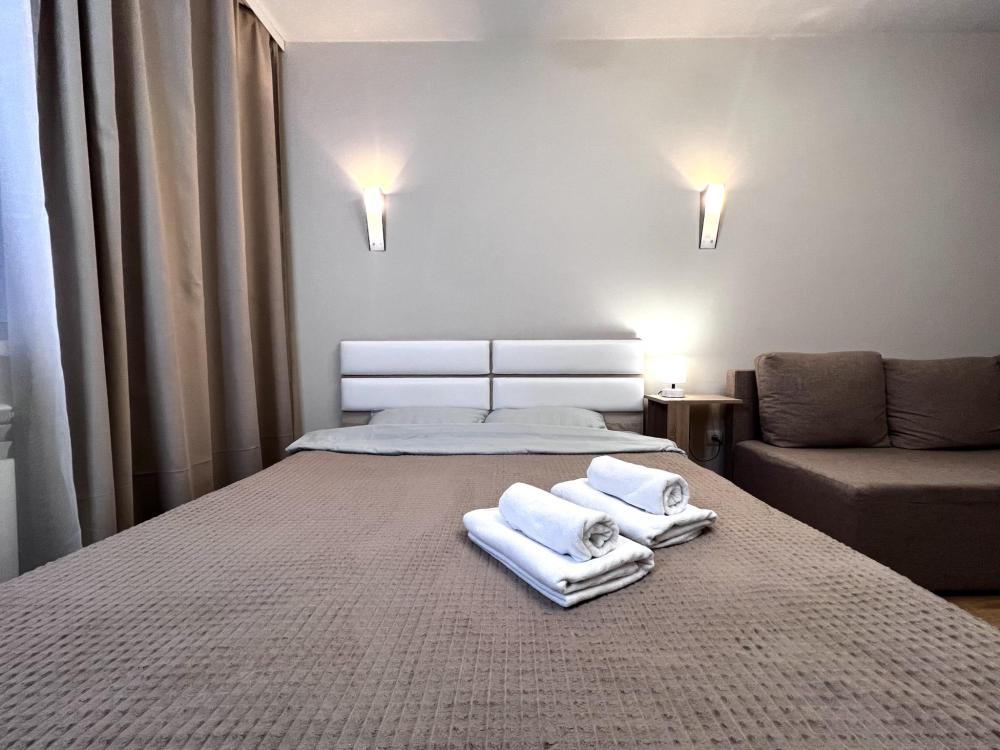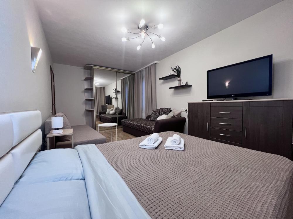 Двухкомнатная квартира в центре города. Спальных мест 5, угловой диван, двуспальная кровать и тахта. В стоимость проживания входит: безлимитный wi-fi интернет, кабельное телевидение, полные комплекты постельного белья из высококачественного сатина и комплекты белых махровых полотенец, полностью оборудованная посудой и техникой кухня, чай, сахар, соль, в ванной комнате стиральная машина, фен, гигиенические принадлежности (мыло, стиральный порошок), гладильная доска и другие приятные мелочи.