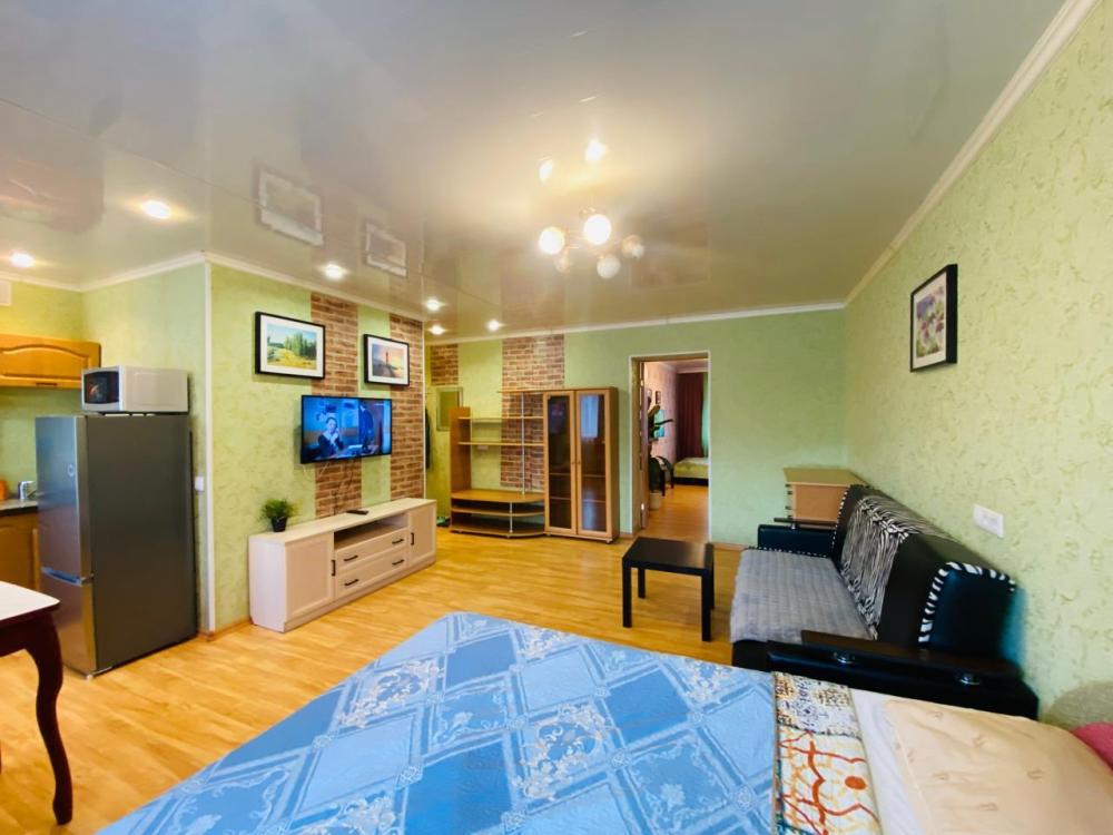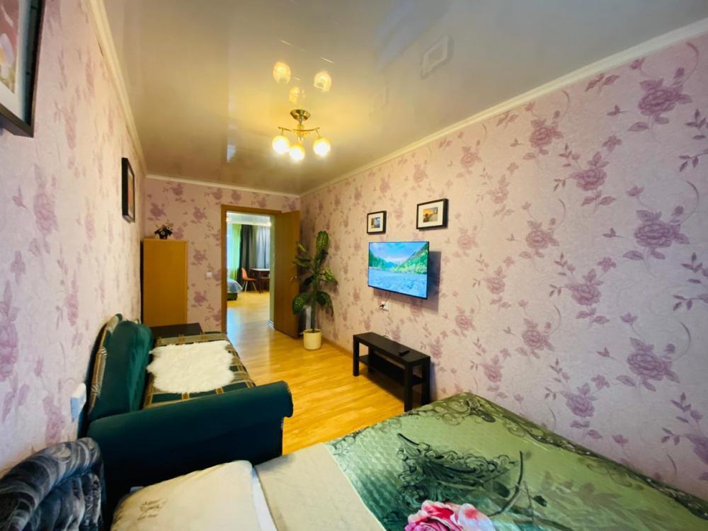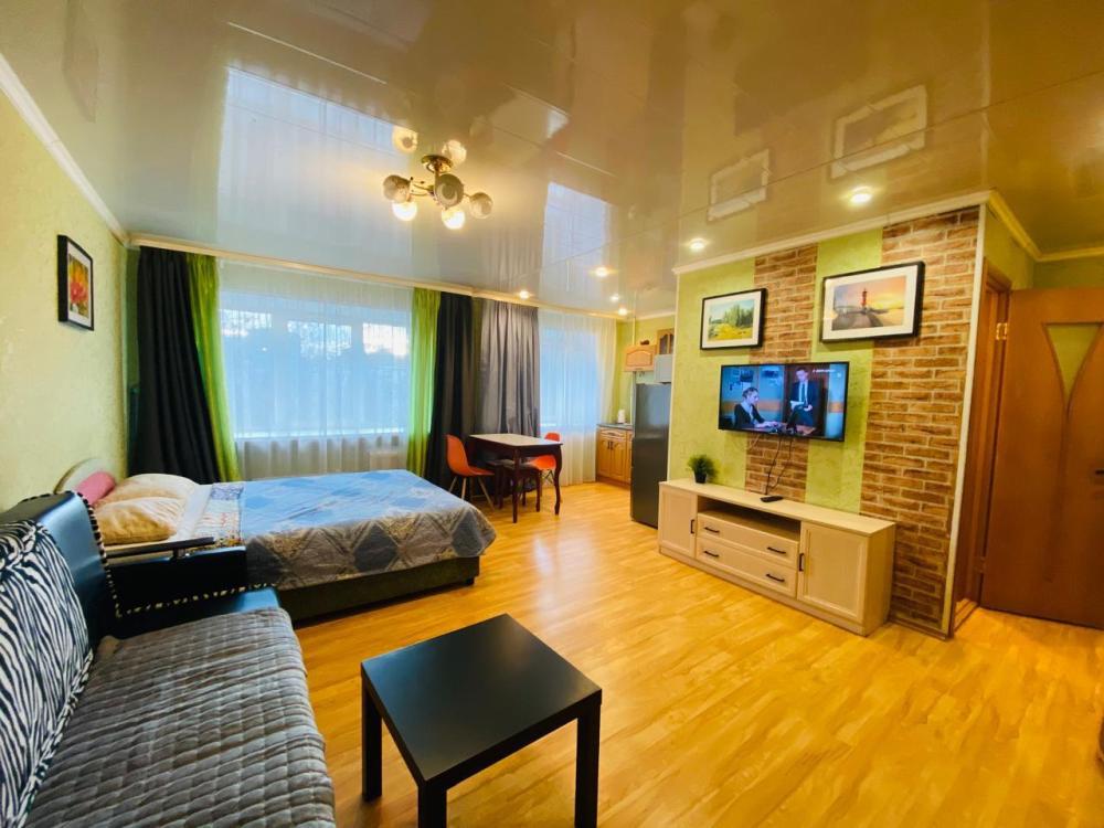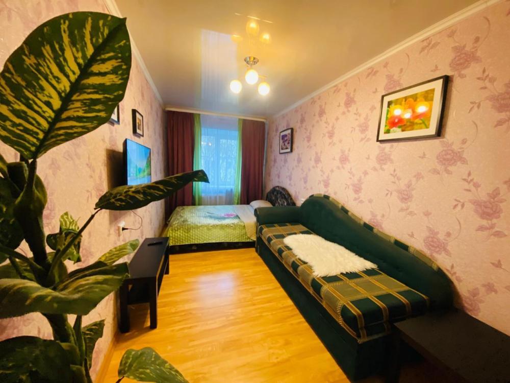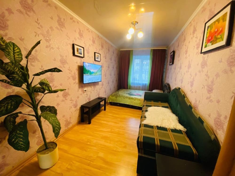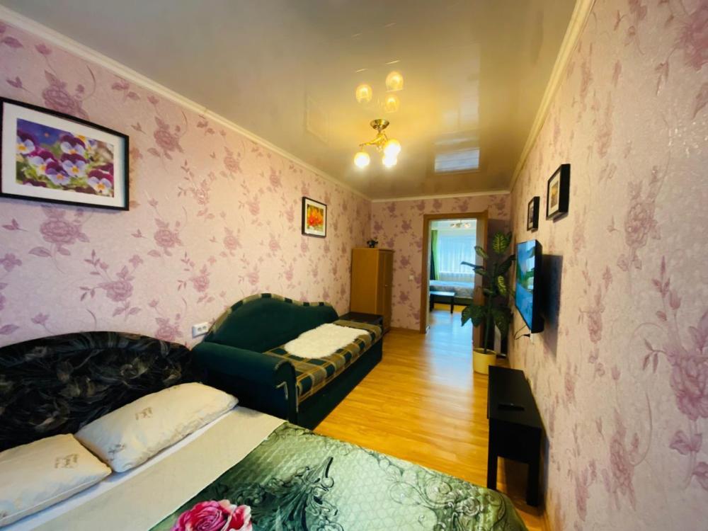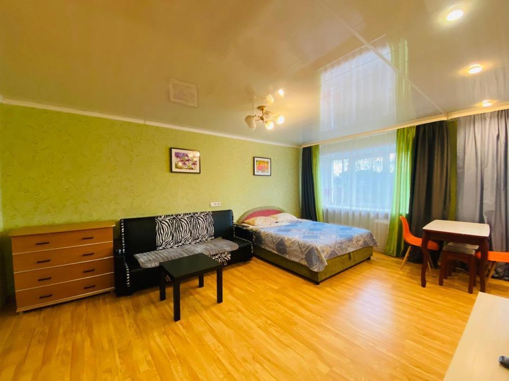 Квартира с одной спальней и кухней-гостиной в центре города. Есть вся необходимая мебель для комфортного проживания: двуспальная кровать, мягкая мебель, бытовая техника, стиральная машина, санузел.