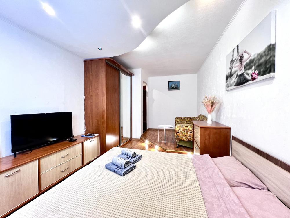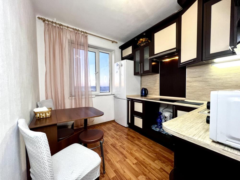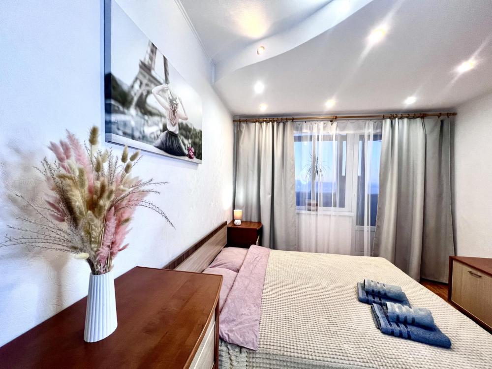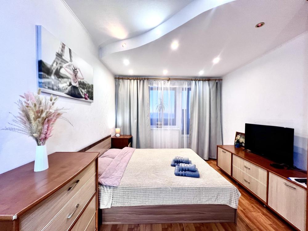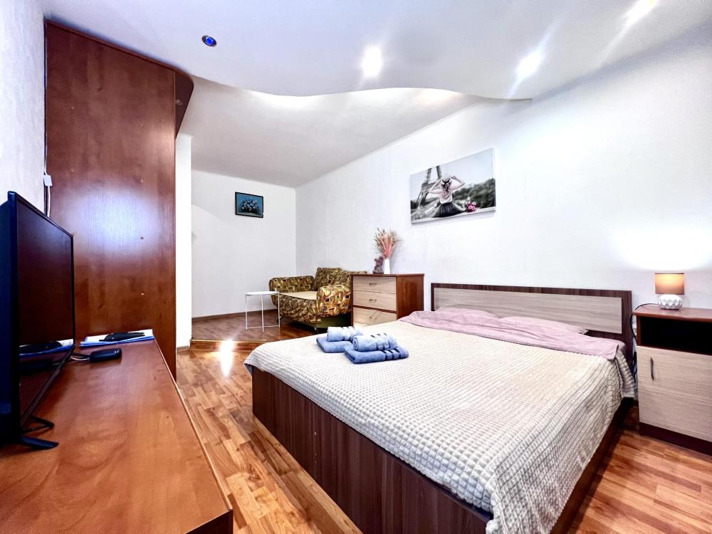 Однокомнатная квартира c видом на город. Спальных мест 3, двуспальная кровать и диван. В стоимость проживания входит: безлимитный wi-fi интернет, кабельное телевидение, полные комплекты постельного белья из высококачественного сатина и комплекты полотенец, полностью оборудованная посудой и техникой кухня, чай, сахар, соль, в ванной комнате стиральная машина, фен, гигиенические принадлежности (жидкое мыло для рук, стиральный порошок, туалетная бумага, средства для мытья посуды), гладильная доска, утюг и другие приятные мелочи.