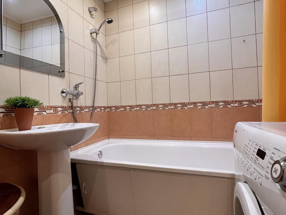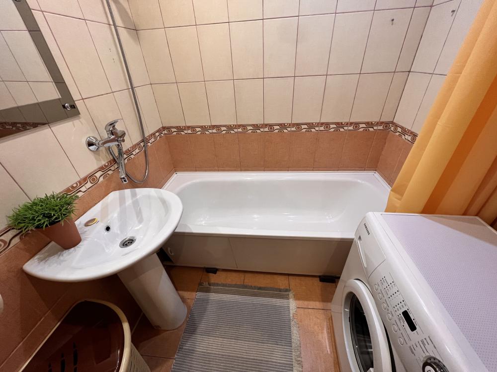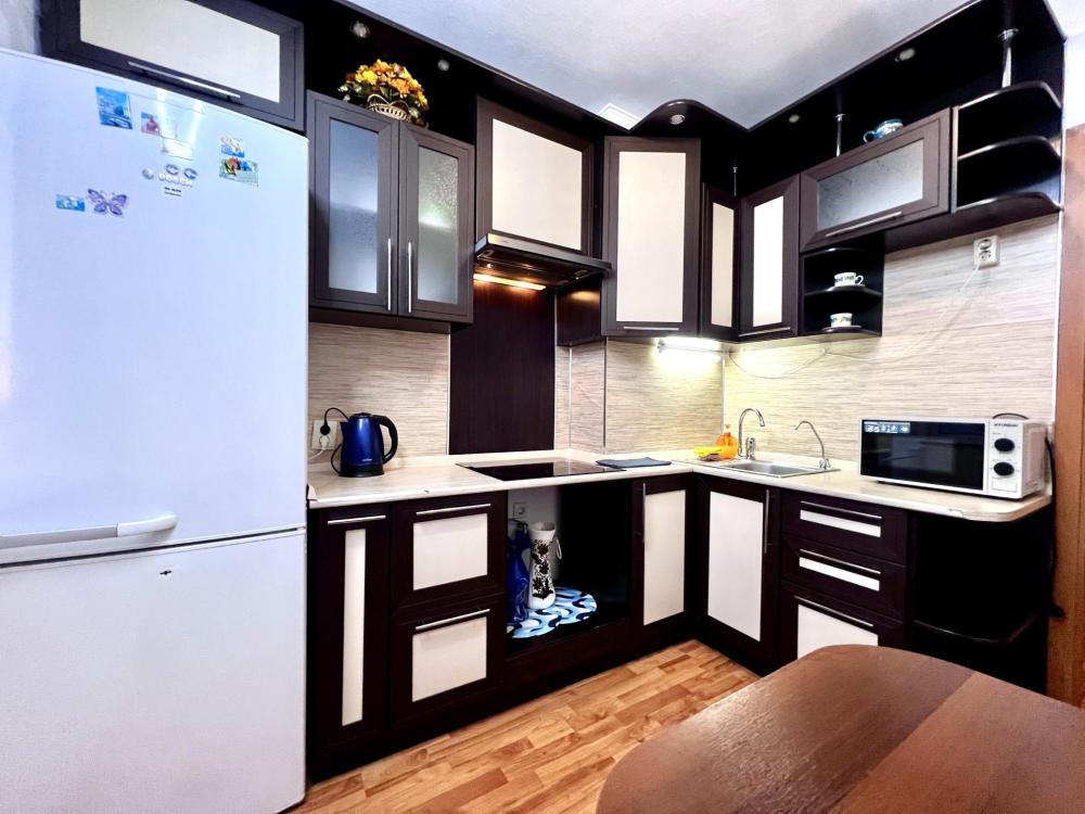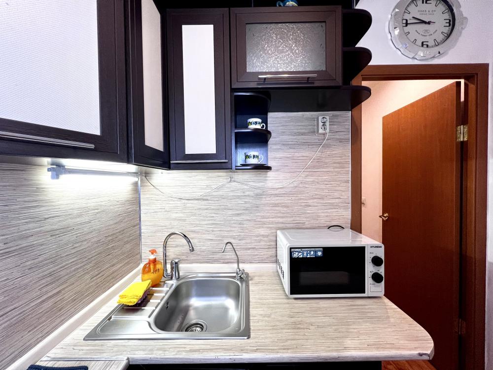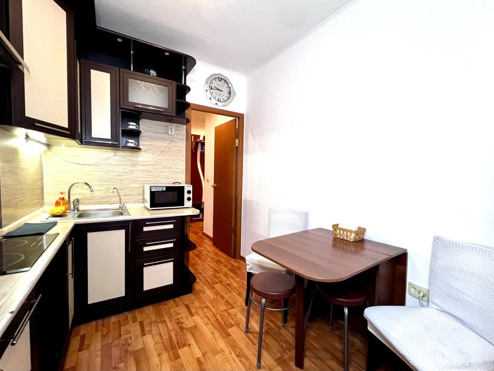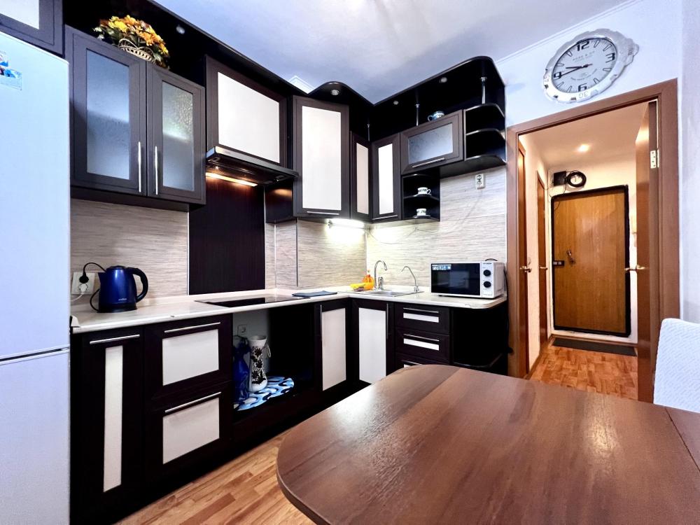Однокомнатная квартира c видом на город. Спальных мест 3, двуспальная кровать и диван. В стоимость проживания входит: безлимитный wi-fi интернет, кабельное телевидение, полные комплекты постельного белья из высококачественного сатина и комплекты полотенец, полностью оборудованная посудой и техникой кухня, чай, сахар, соль, в ванной комнате стиральная машина, фен, гигиенические принадлежности (жидкое мыло для рук, стиральный порошок, туалетная бумага, средства для мытья посуды), гладильная доска, утюг и другие приятные мелочи.