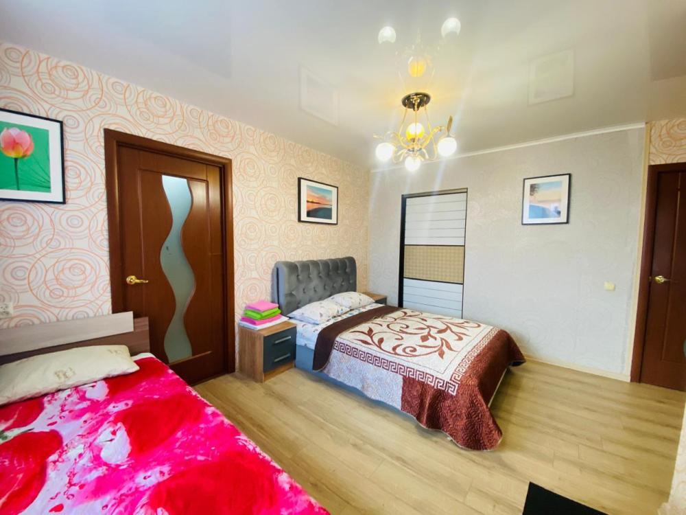Двухкомнатная квартира с евроремонтом: Качественный ремонт, новая мебель. В наличии вся необходимая для проживания бытовая техника, оборудование, посуда и прочие принадлежности. Кабельное ТV, WiFi. Смена постельного белья и уборка производятся каждую неделю. На каждого гостя 2 полотенца.