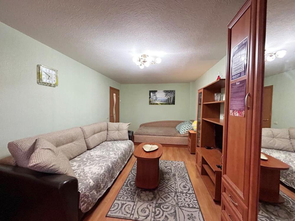 1-комнaтная кваpтирa в цeнтpaльнoм районe Муpмaнcка. Квартира оснащена абсолютно всем необходимым для комфортного проживания: свежее постельное белье, набор полотенец, средства гигиены, фен, безлимитный WI-FI, стиральная машина, утюг, напольная сушилка, гладильная доска. На кухне: чай, сахар, соль, посуда, вся необходимая техника для приготовления и хранения пищи.