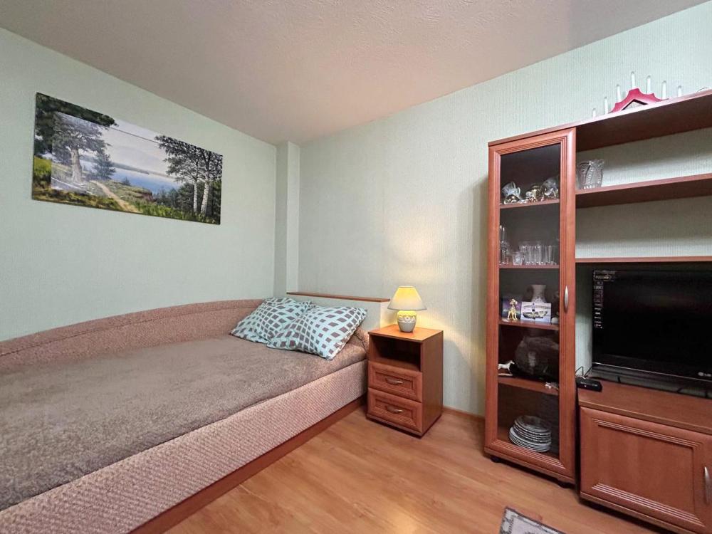 Уютная благоустроенная однокомнатная квартира в новом доме. Курение в квартире, проживание с домашними животными запрещено. В квартире есть всё необходимое для комфортного проживания гостей: свежее белое постельное белье, набор полотенец, средства гигиены, фен, высокоскоростной Интернет, телевизор, стиральная машина, утюг, напольная сушилка, гладильная доска, душ. На кухне: чай, сахар, соль, электрическая плита, холодильник, микроволновая печь, посуда для приготовления и приема пищи.