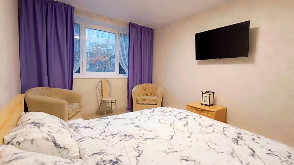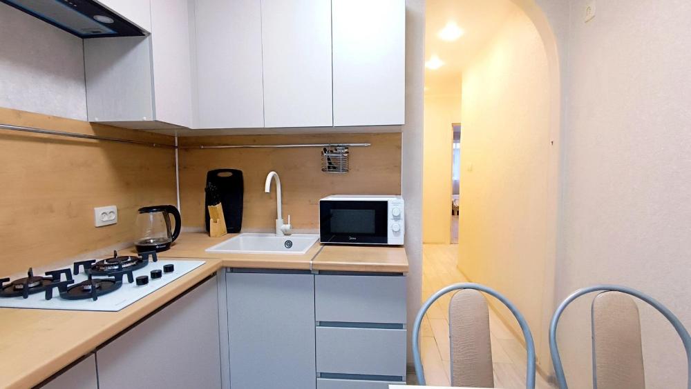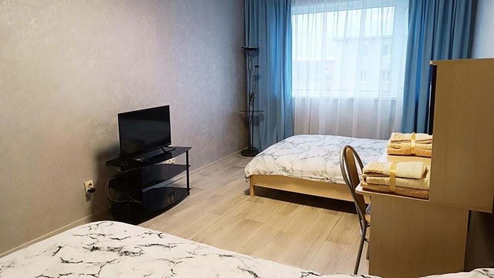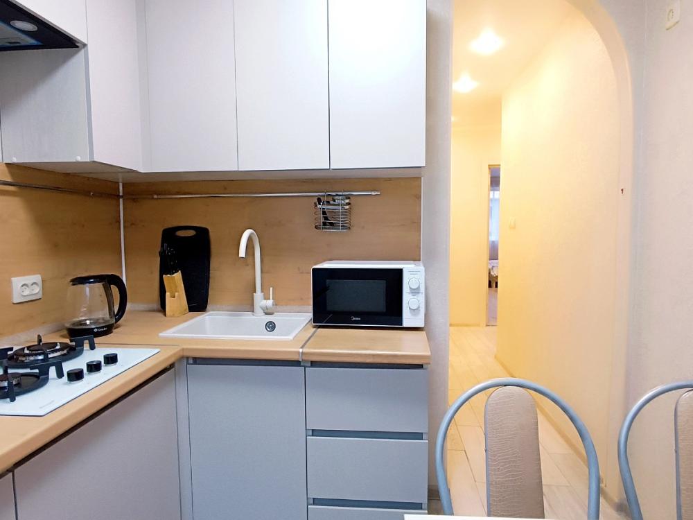 Уютная двухкомнатная квартира в центре города, в квартире предусмотрено 3 спальных места. Квартира оснащена всем необходимым для комфортного проживания: свежее постельное бельё, набор полотенец, средства гигиены, фен, телевидение, wi-fi, стиральная машина, утюг, напольная сушилка, гладильная доска, душ. На кухне: газовая плита, холодильник, микроволновая печь, вся посуда для приготовления и приема пищи.