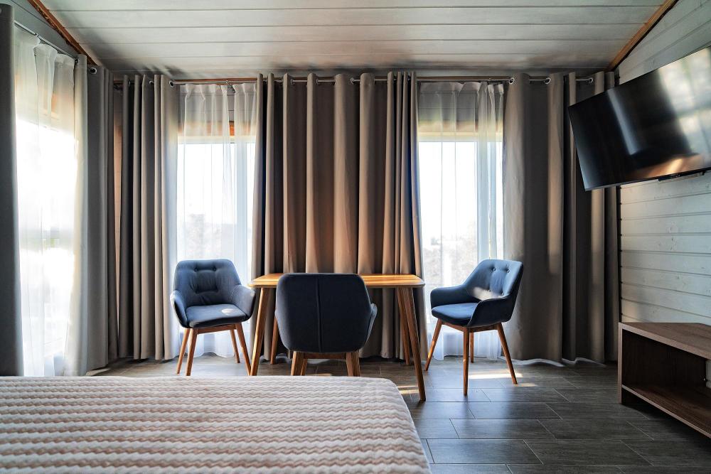 Просторный двухкомнатный коттедж площадью 60 кв.м. создан для комфортного отдыха компании до 4 человек. Светлые интерьеры в натуральных тонах, экологичные материалы и продуманная планировка создают атмосферу загородного уюта. Две отдельные спальни обеспечат приватность. Идеально подойдет для семейного отдыха с детьми или дружеской поездки на природу.