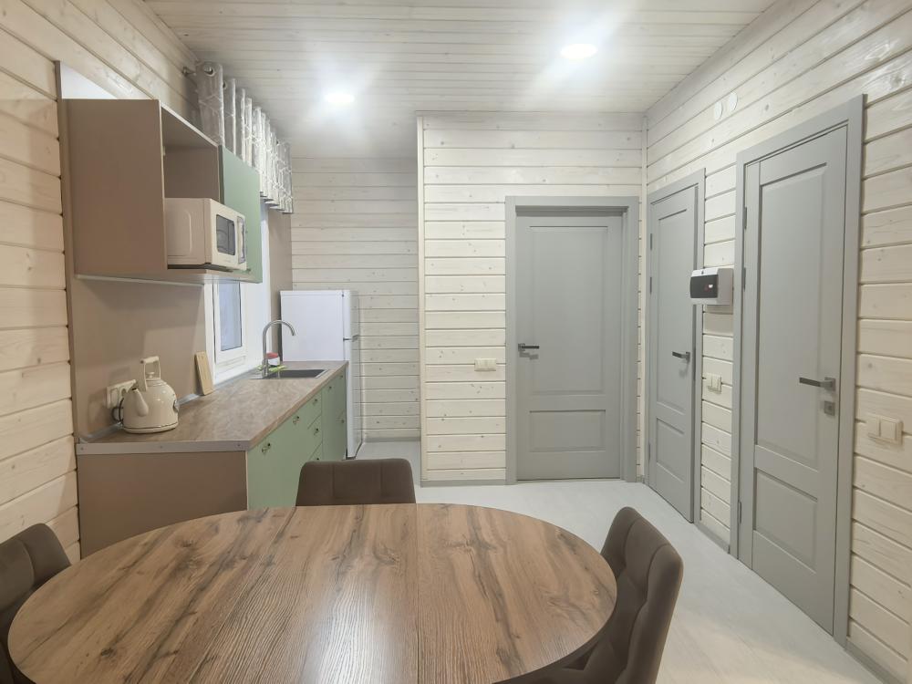 Комфортный и тёплые эко-дом, расположенный в уютном уединении. Специально для тех, кто хочет остаться один на один с природой. Дом построен из экологически чистых материалов, хорошо отапливается, есть горячее водоснабжение. В доме есть ванная комната с душем и бесплатными туалетно-косметическими принадлежностями. Площадь 36 м2, рассчитан на комфортное размещение до 3 человек. Домик оборудован: - двуспальной кроватью-трансформером (при желании их можно превратить в две односпальные кровати); - одним односпальным раскладывающимся диваном; - журнальным столиком; - комодом и вешалкой для одежды; - миникухней (включает холодильник, чайник, микроволновую печь, посуду, настенный шкафчик); - ванной комнатой (включает душевую кабину, санузел, раковину, фен, полотенца); - открытой террасой со столиком и стульями. Рядом с домиком находится мангальная зона, где есть мангал и стол со скамейками.