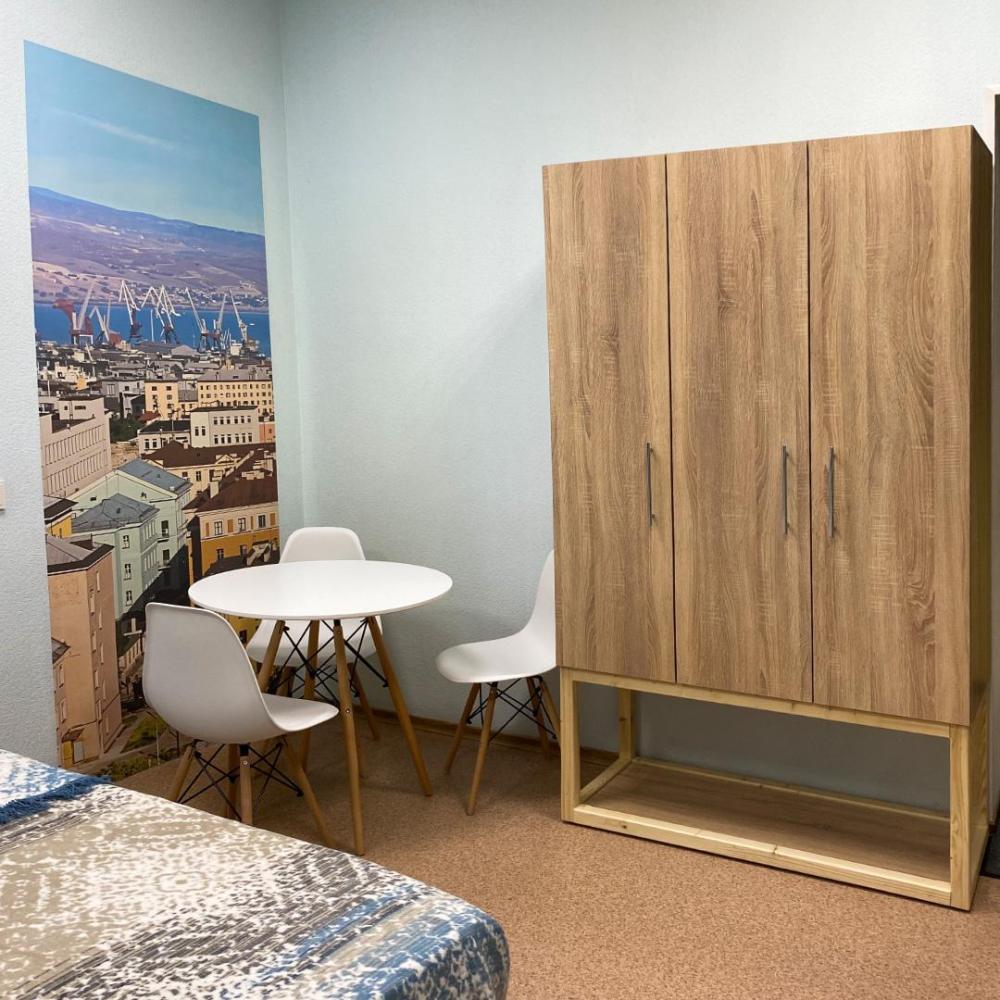 Наш 5-местный номер - идеальное место для вашего отдыха. В номере 5 одноместных кроватей с прикроватной тумбой. Функциональный шкаф, стол и зеркало. Для вашего комфорта предусмотрены блэкаут шторы. Количество 5-местных номеров в гостинице – 2.
