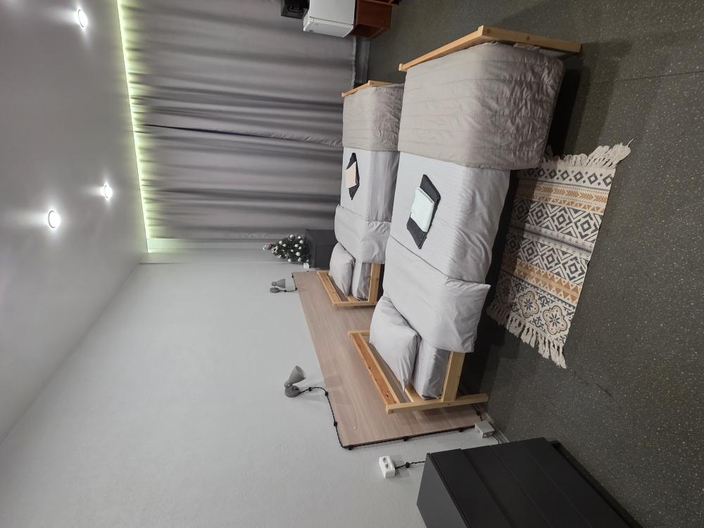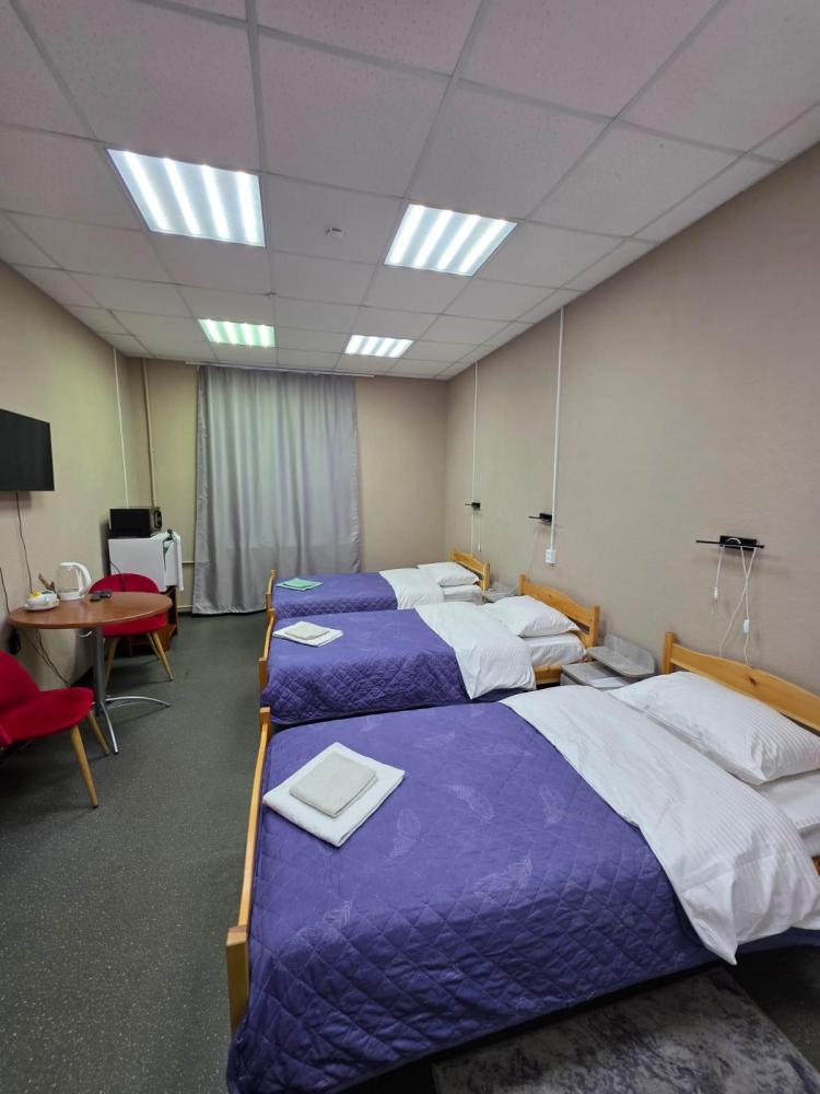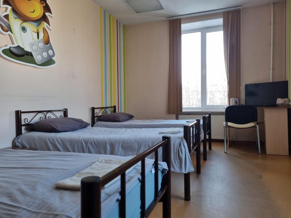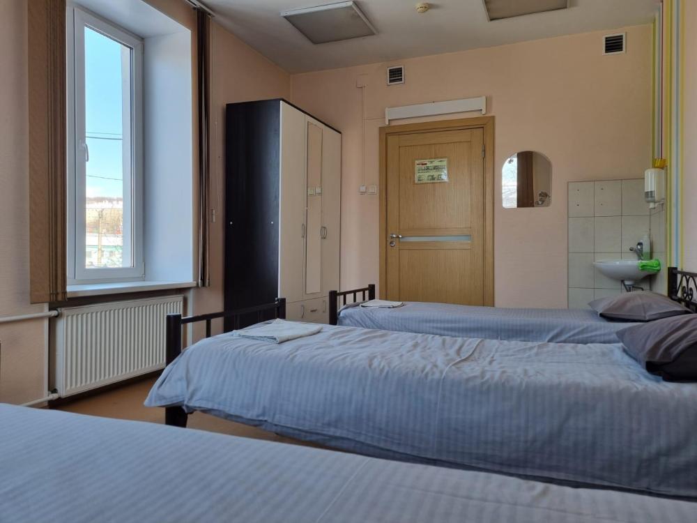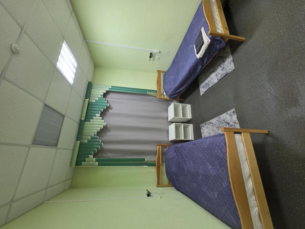Стандартный улучшенный номер. Вместимость до 3х человек. В номере: три односпальные кровати; прикроватные тумбочки; шкаф для одежды; телевизор; микроволновая печь; мини холодильник. Душевая; санузел находятся на этаже