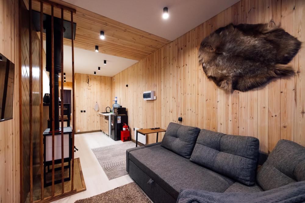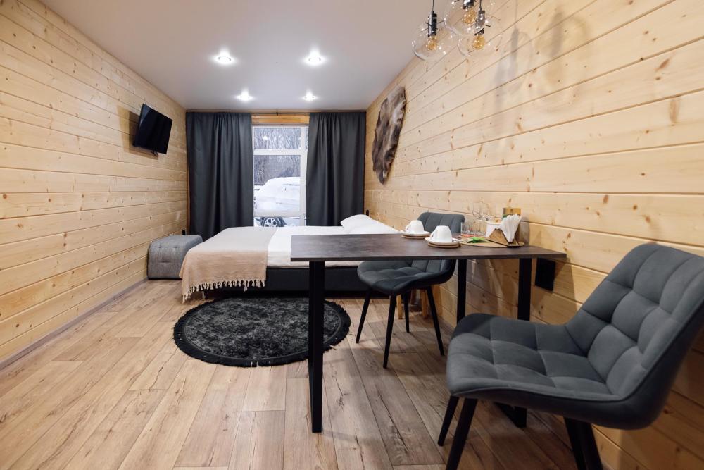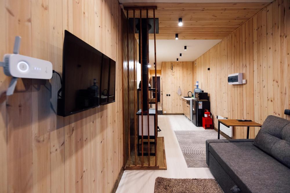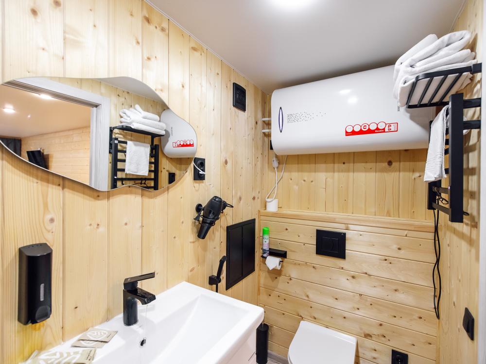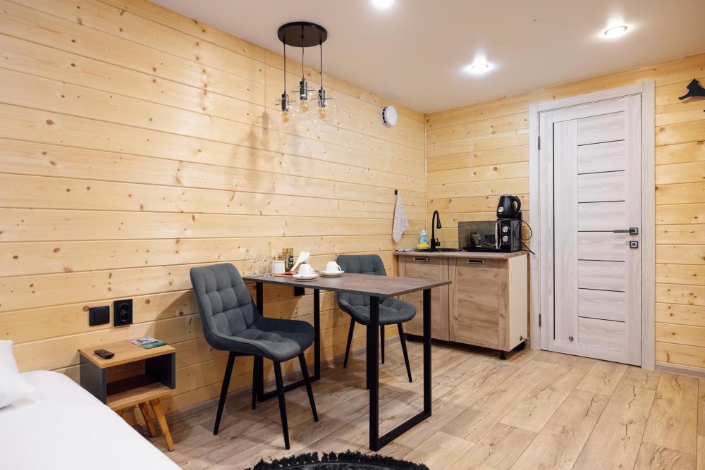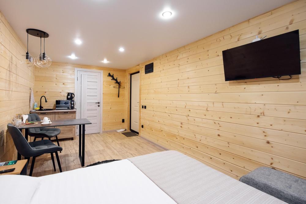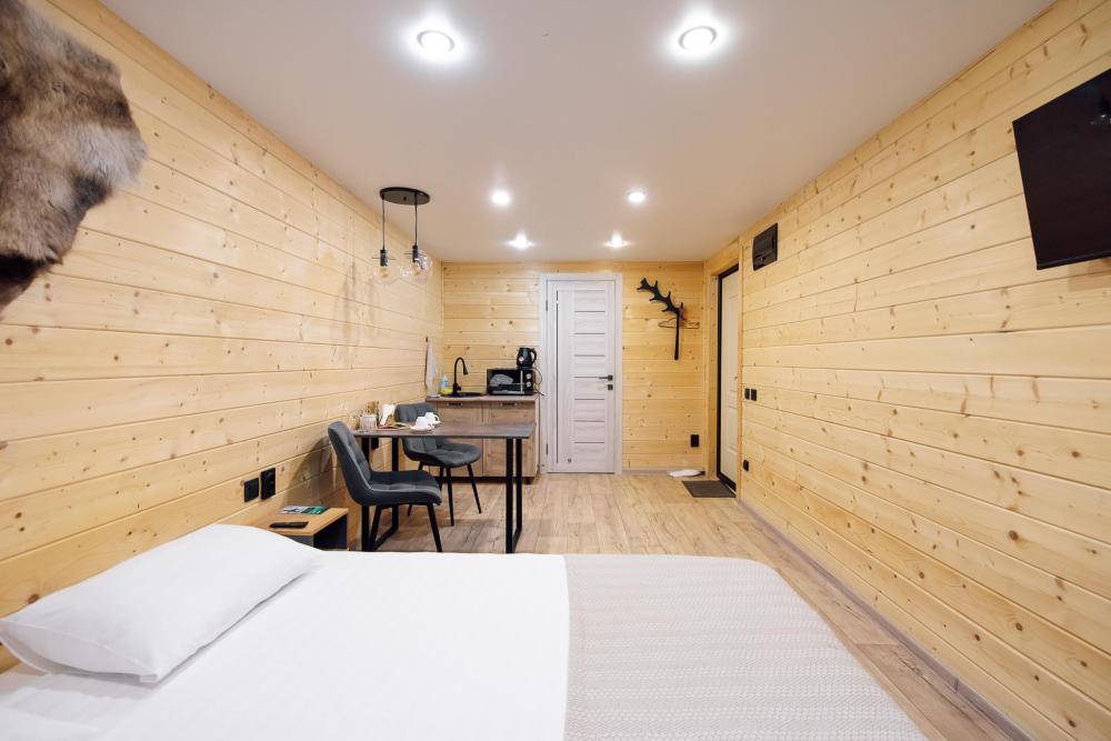Просторный двухместный дом. В доме большая двуспальная кровать, большой телевизор. Интерьер выдержан в спокойных, нейтральных тонах, создающих атмосферу уюта и расслабления. Мягкое освещение, панорамные окна - шторы блэкаут и удобная мебель способствуют полноценному отдыху после насыщенного дня. В ванной комнате гостям предоставляются мягкие полотенца, тапочки, набор косметических принадлежностей и фен. Небольшой столик, где можно удобно расположиться с чашкой чая или книгой. В доме кулер, чайник и микроволновая печь для любителей чая и кофе. Бесплатный Wi-Fi обеспечивает надежный доступ в интернет, позволяя оставаться на связи с родными и близкими или решать рабочие вопросы. Уборка в номере производится ежедневно, обеспечивая чистоту и порядок. Здесь ценят каждого гостя и стремятся предоставить ему все необходимое для комфортного пребывания. Гостям предлагается широкий выбор услуг и удобств, чтобы они могли чувствовать себя как дома.