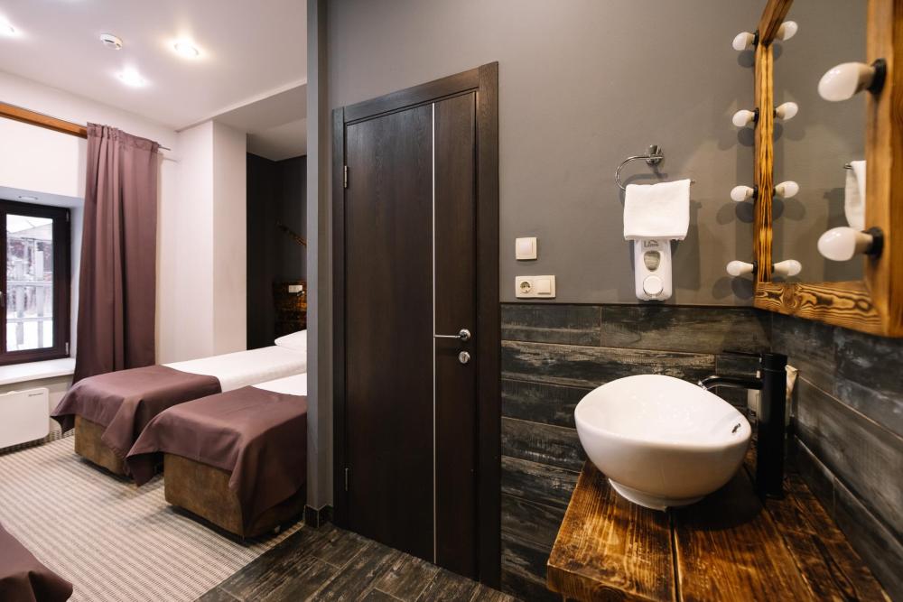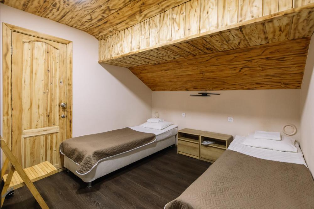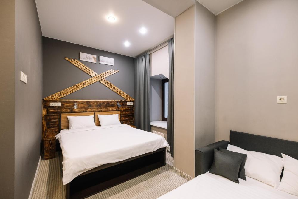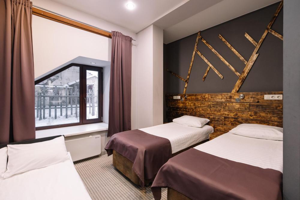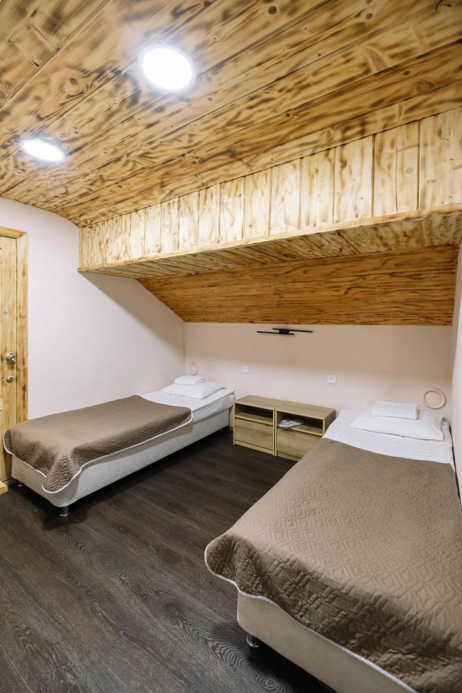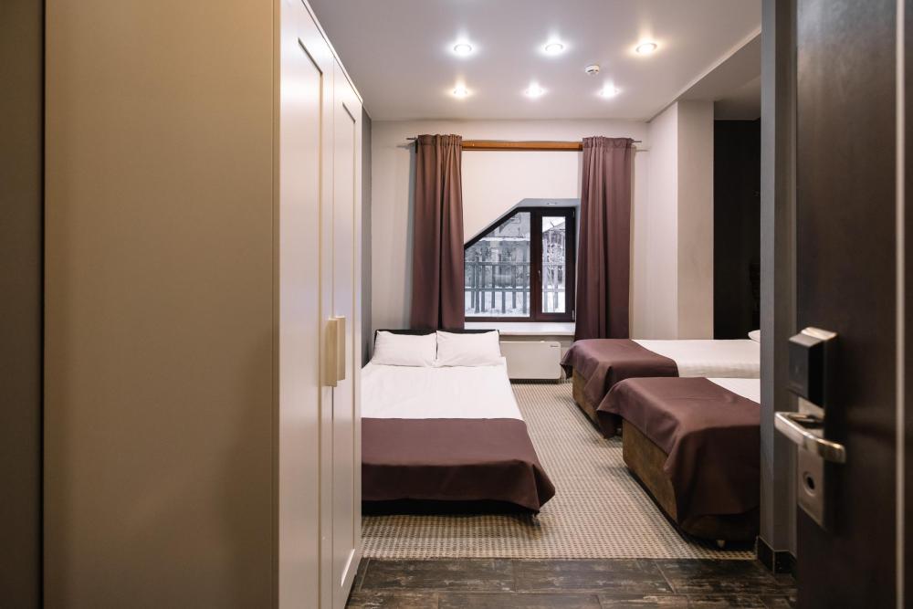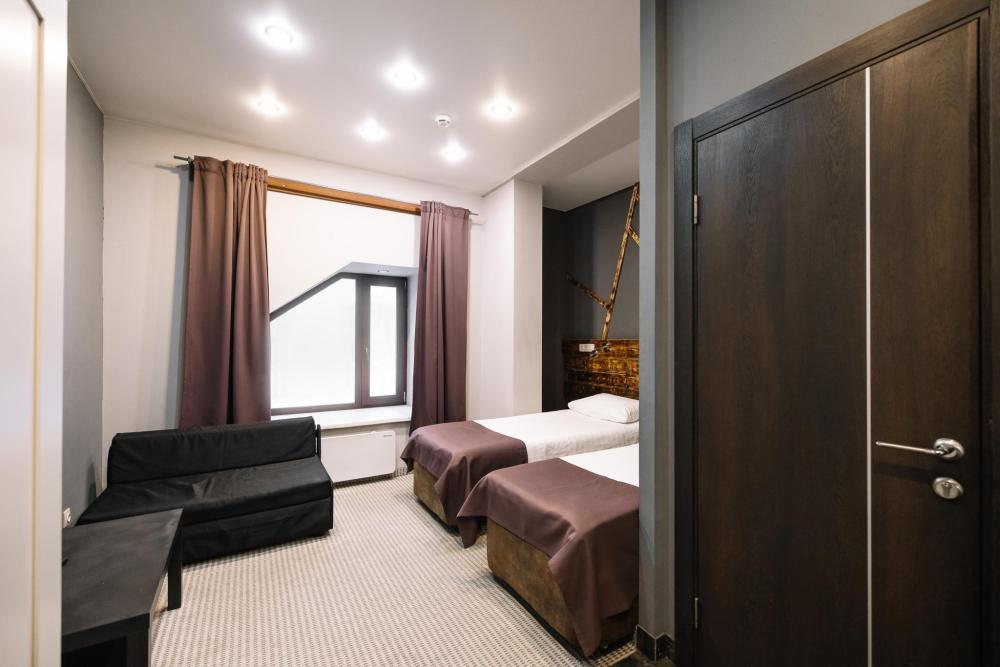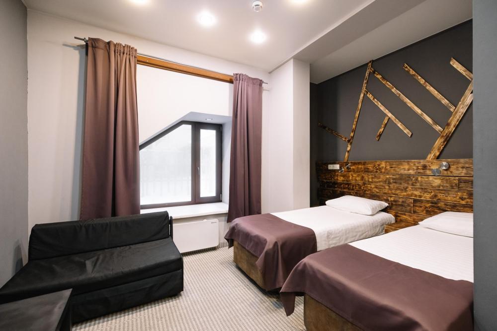 Просторный номер с двумя односпальными кроватями. Оснащен душевой кабиной, санузлом и гигиеническим душем, в номере имеется раскладной диван, который при необходимости трансформируется в дополнительное спальное место. Номер оборудован большим телевизором. Интерьер номера выдержан в спокойных, нейтральных тонах, создающих атмосферу уюта и расслабления. Мягкое освещение, шторы блэкаут и удобная мебель способствуют полноценному отдыху после насыщенного дня. Вместительный шкаф с вешалками и полками. В ванной комнате гостям предоставляются мягкие полотенца, халаты, тапочки, набор косметических принадлежностей и фен. На полу – ковровое покрытие, приятное на ощупь и обеспечивающее дополнительную звукоизоляцию. Небольшой журнальный столик, где можно удобно расположиться с чашкой чая или книгой. Система климат-контроля позволяет поддерживать комфортную температуру в любое время года. Бесплатный Wi-Fi обеспечивает надежный доступ в интернет, позволяя оставаться на связи с родными и близкими или решать рабочие вопросы. Уборка в номере производится ежедневно, обеспечивая чистоту и порядок. Этот номер идеально подходит для размещения как путешествующих в одиночку, так и пар или небольших семей, ценящих комфорт и функциональность. Сочетание удобств и продуманного дизайна делает пребывание в нем максимально приятным и запоминающимся.