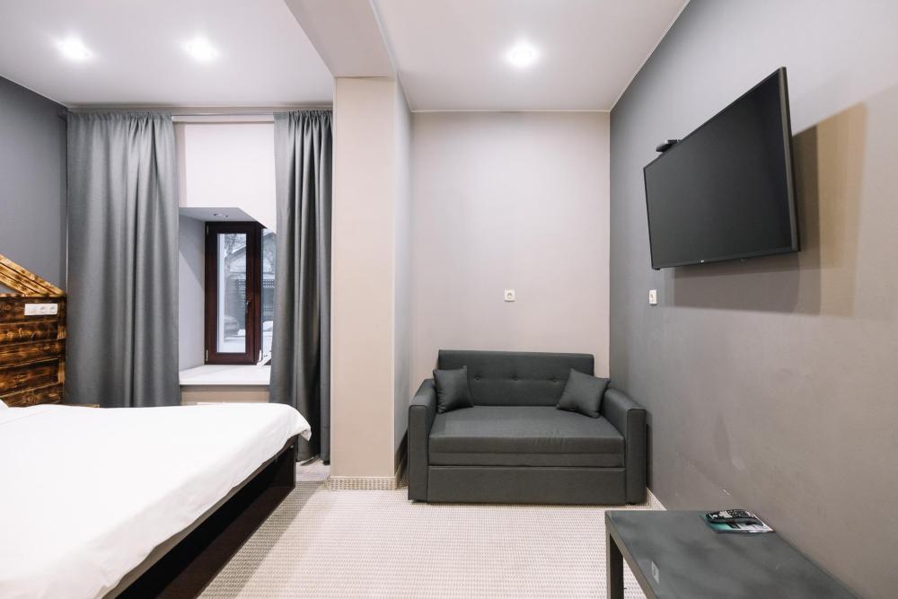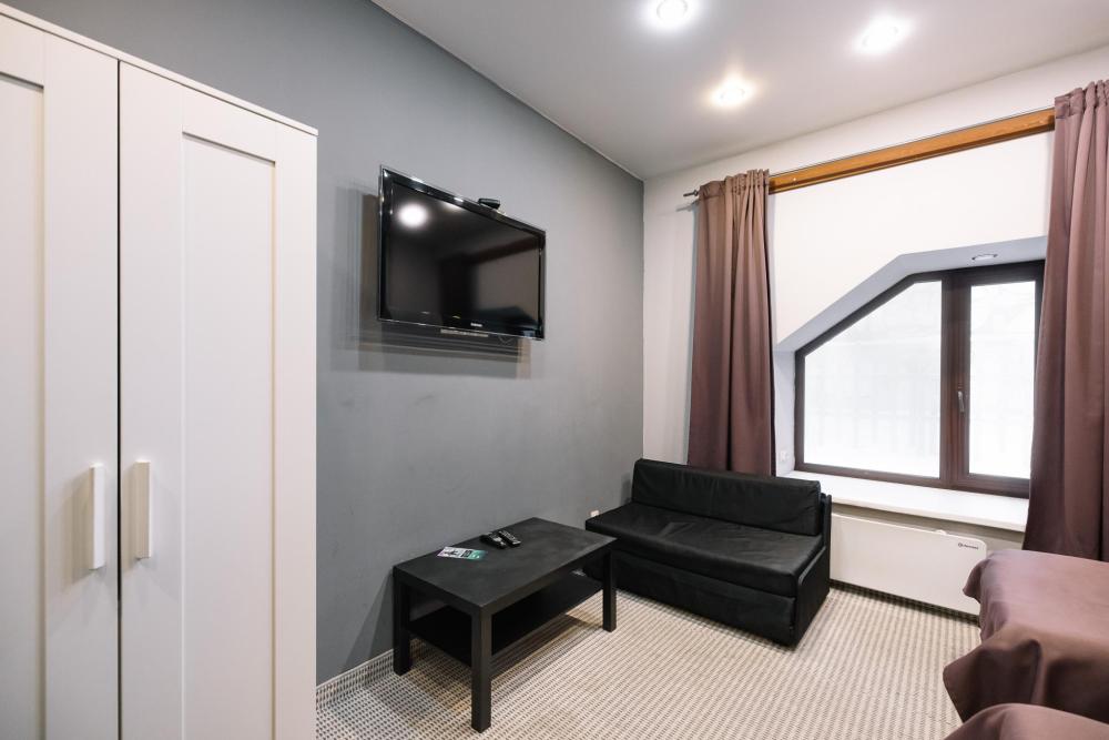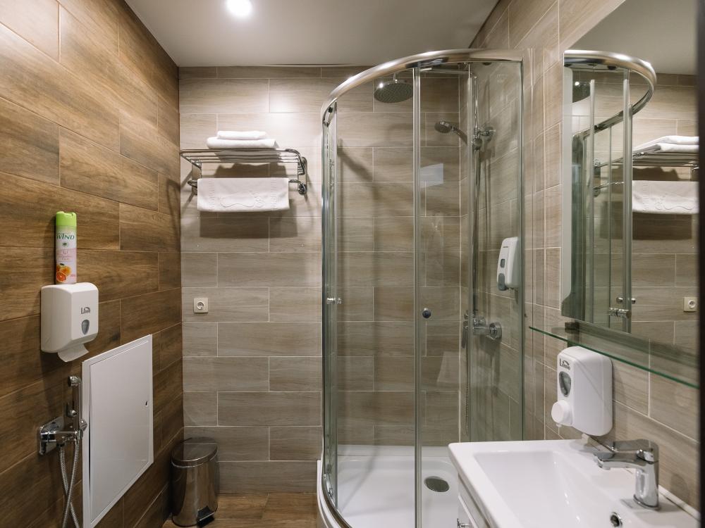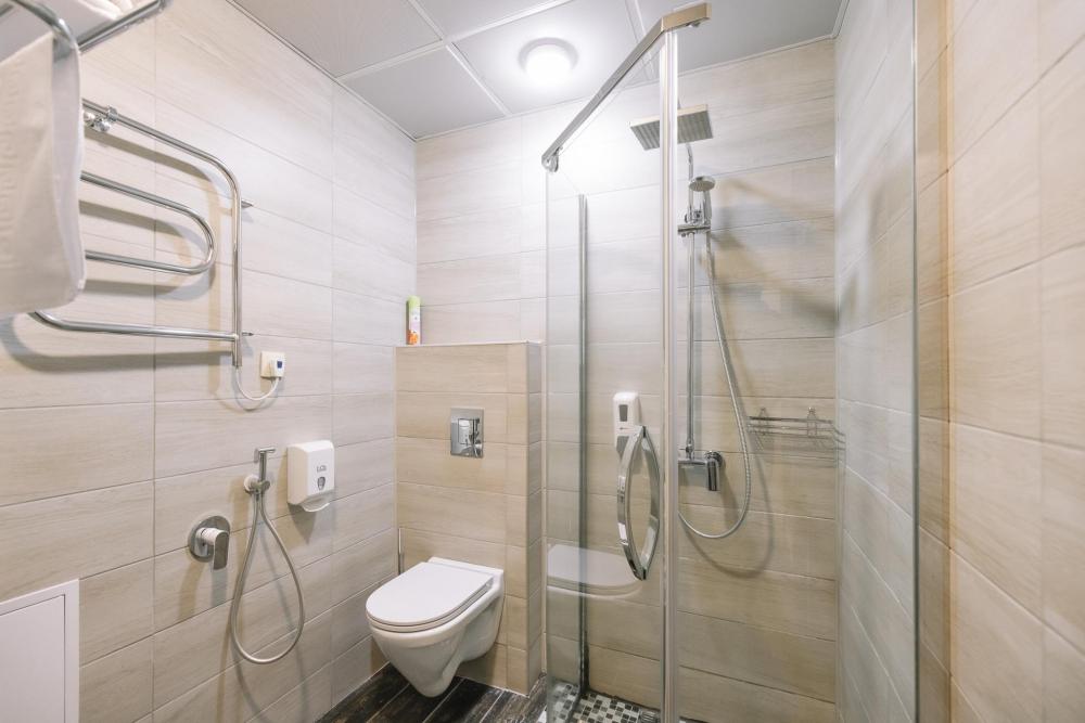 Просторный двухместный номер. Оснащен душевой кабиной, санузлом и гигиеническим душем, в номере имеется раскладной диван, который при необходимости трансформируется в дополнительное спальное место. Номер оборудован большим телевизором. Интерьер номера выдержан в спокойных, нейтральных тонах, создающих атмосферу уюта и расслабления. Мягкое освещение, шторы блэкаут и удобная мебель способствуют полноценному отдыху после насыщенного дня. Вместительный шкаф с вешалками и полками. В ванной комнате гостям предоставляются мягкие полотенца, тапочки, набор косметических принадлежностей и фен. На полу – ковровое покрытие, приятное на ощупь и обеспечивающее дополнительную звукоизоляцию. Небольшой журнальный столик, где можно удобно расположиться с чашкой чая или книгой. Система климат-контроля позволяет поддерживать комфортную температуру в любое время года. Бесплатный Wi-Fi обеспечивает надежный доступ в интернет, позволяя оставаться на связи с родными и близкими или решать рабочие вопросы. Уборка в номере производится ежедневно, обеспечивая чистоту и порядок. Пребывание в этом номере станет прекрасным дополнением к любой поездке, будь то деловая командировка или долгожданный отпуск. Здесь созданы все условия для того, чтобы гости чувствовали себя как дома, наслаждаясь комфортом и высоким уровнем сервиса.