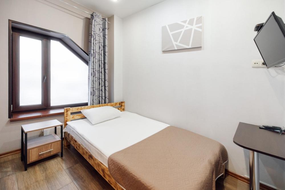Уютный одноместный номер с полутороспальной кроватью для комфортного сна и отдыха после насыщенного дня. Шторы блэкаут обеспечивают возможность полного затемнения в любое время суток. Вместительный шкаф с вешалками и полками. В ванной комнате гостям предоставляются мягкие полотенца, тапочки, набор косметических принадлежностей и фен. Телевизор с плоским экраном предлагает широкий выбор развлечений, позволяя расслабиться и насладиться просмотром любимых фильмов и передач. Бесплатный WI-FI, доступный в номере, позволяет оставаться на связи с близкими, работать или планировать дальнейшие этапы путешествия. Этот номер – отличный выбор для тех, кто путешествует в одиночку ценит комфорт и удобство. Станет идеальной отправной точкой для знакомства с городом, деловых поездок или просто спокойного отдыха.