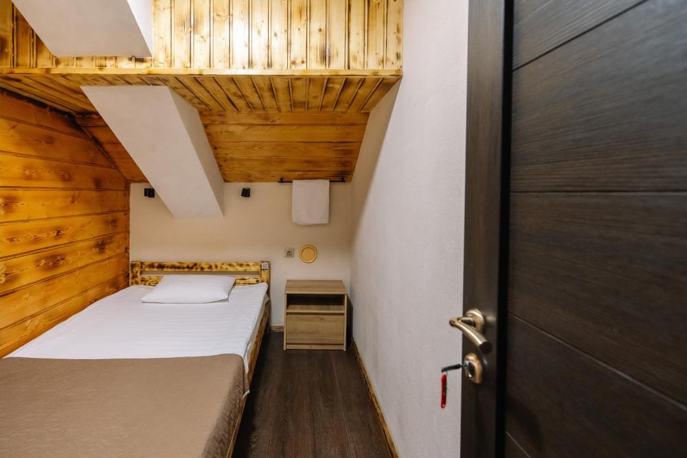 Небольшой уютный номер без окна с общим душем и туалетом на этаже В номере предусмотрена вешалка для одежды и небольшое зеркало. Санузел и душевая на этаже. Этот номер идеально подходит для одного человека, путешествующий налегке и ищущий экономичный вариант размещения. Здесь можно отдохнуть после насыщенного дня, используя бесплатный WI-FI, или просто расслабиться, полистав книгу. Несмотря на небольшую площадь, в номере ощущается чистота и уют. Регулярная уборка и внимательное отношение персонала создают приятную атмосферу для проживания. Это отличный выбор для тех, кто ценит функциональность и комфорт, не переплачивая за излишнюю роскошь. Забронировав этот номер, вы получаете не просто место для ночлега, а удобное пространство для отдыха и работы, расположенное в непосредственной близости от ключевых достопримечательностей города. Это оптимальное сочетание цены и качества, позволяющее насладиться поездкой, не переживая о бюджете.