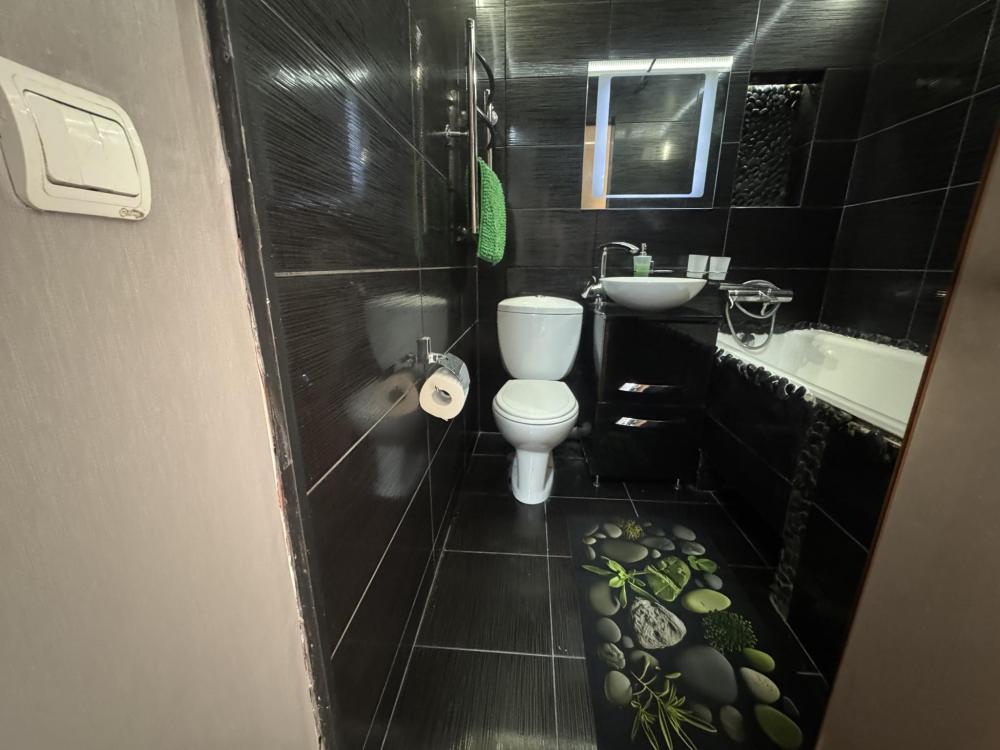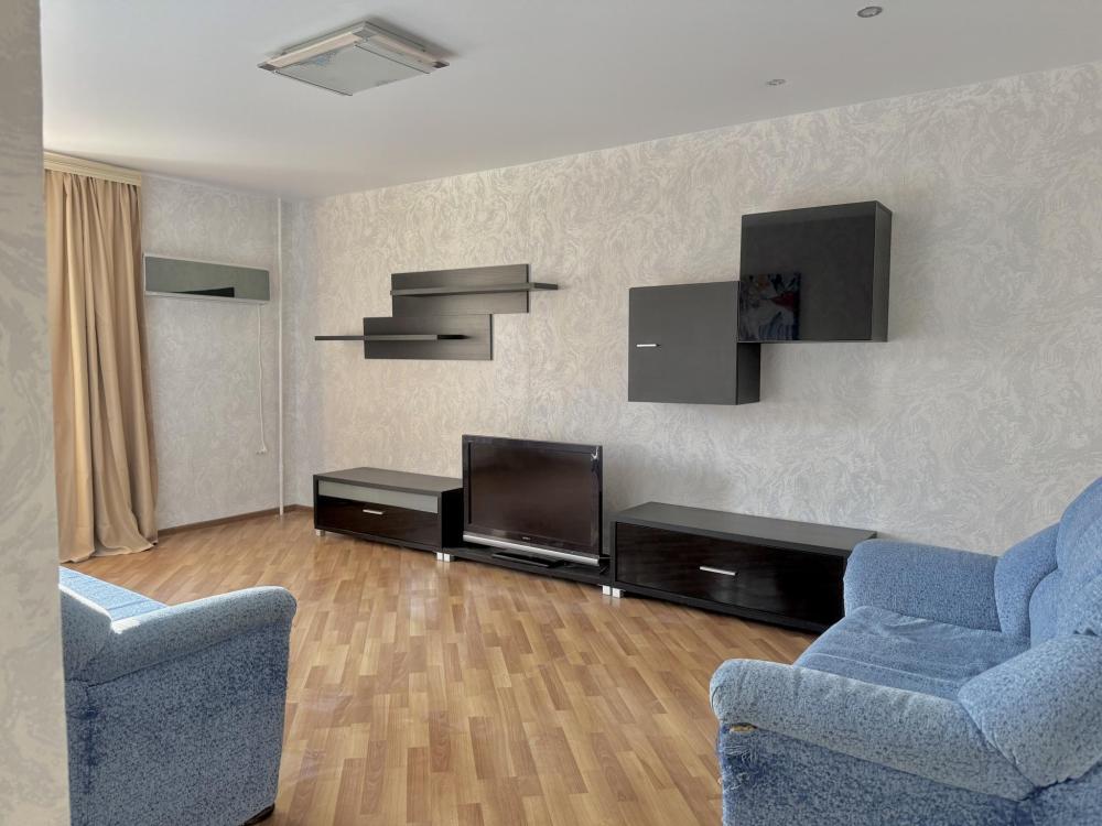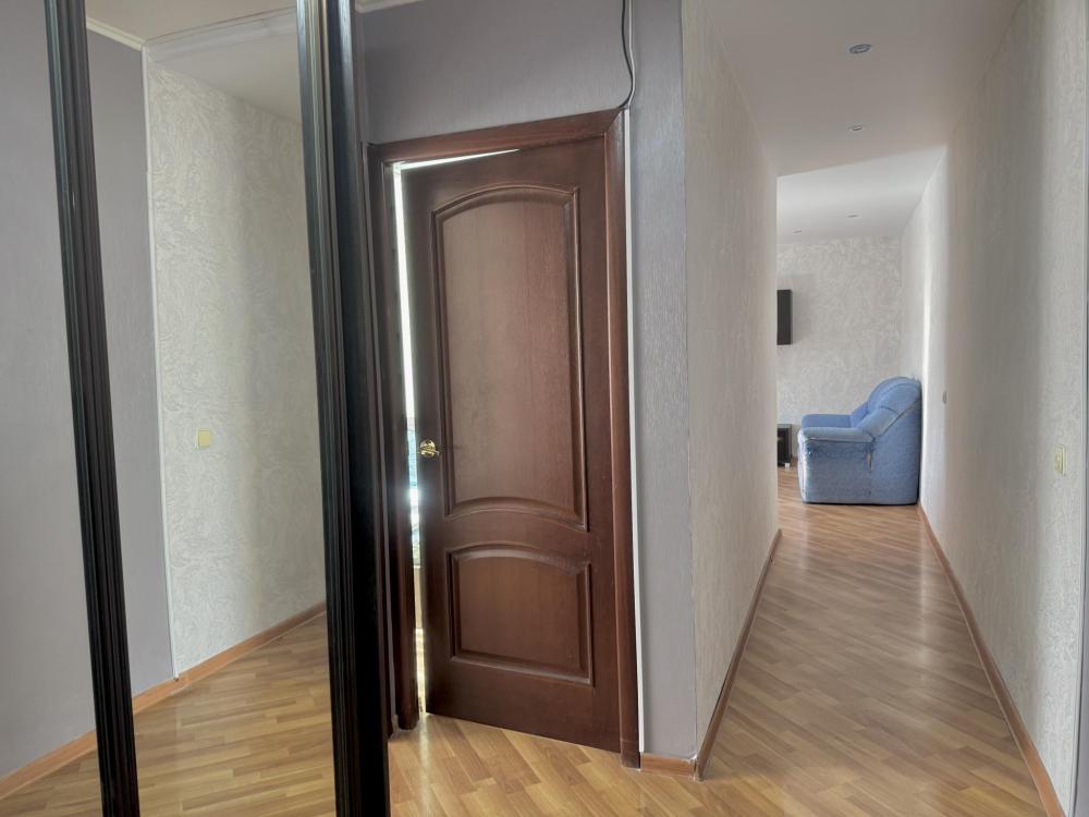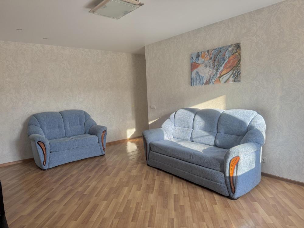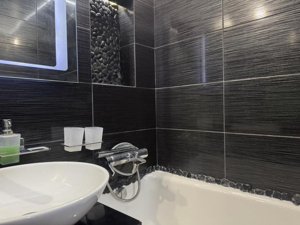 Приветствуем в квартире сети "Саквояж". Расположена в центре города, рядом с достопримечательностями, магазинами и транспортной развязкой. Вмещает до 7 человек. Спальные места: * Первая спальня: двуспальная кровать 180x200, телевизор. * Вторая спальня: две односпальные кровати 90x200. * Гостиная: двуспальный и односпальный диваны, телевизор, кондиционер. Оснащение: СВЧ, стиральная машина, холодильник, утюг, кондиционер.