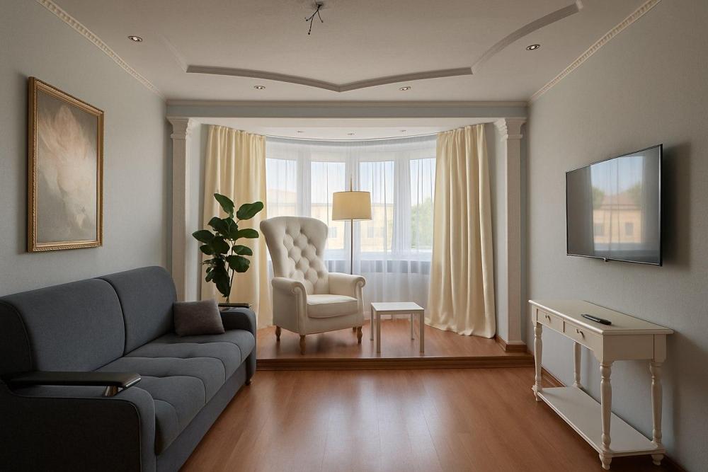 Мини-отель находится в центре города. В номере тепло и комфортно для проживания четырех человек. Есть возможность заказать дополнительное место за дополнительную плату - раскладушку, но она не очень удобная. Лучше спать на полу. В номере есть все необходимое. Завтрак вкусный и привозят его прямо в номер. Персонал приветливый. Несмотря на то, что на улице было -25 градусов, в номере было тепло.