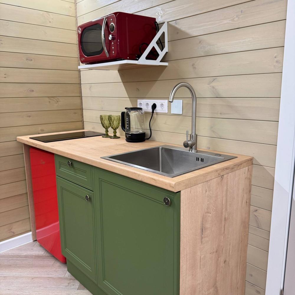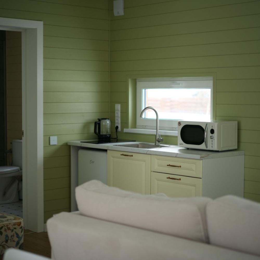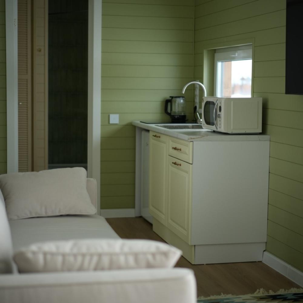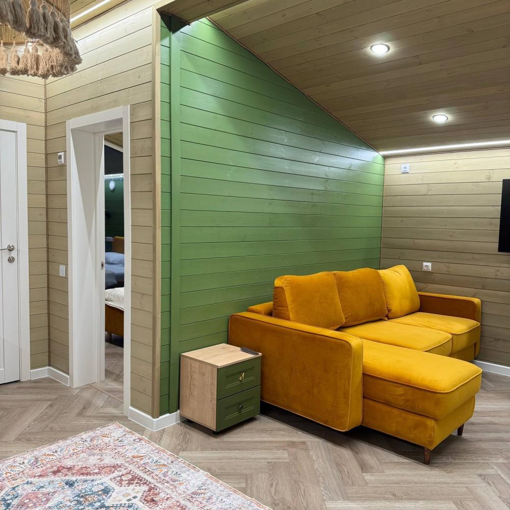 Домик «Греция» - барн-хаус с 2 спальнями. Комфортный домик для семьи или компании, где всем важно личное пространство. Две отдельные спальни - это когда дети/друзья отдельно, а вечер всё равно вместе. Что внутри: 2 спальни с кроватями небольшая гостиная раскладной диван (доп. спальное место), кухня со всей техникой и посудой2 ТВ Яндекс, Алиса Прекрасно подходит, если хотите удобно разместиться и отдыхать без тесноты. Баня и чаны — отдельная причина приехать. После прогулок и свежего воздуха особенно приятно: прогреться в бане, а потом расслабиться в чанах — это тот самый формат отдыха, после которого спишь крепко-крепко.