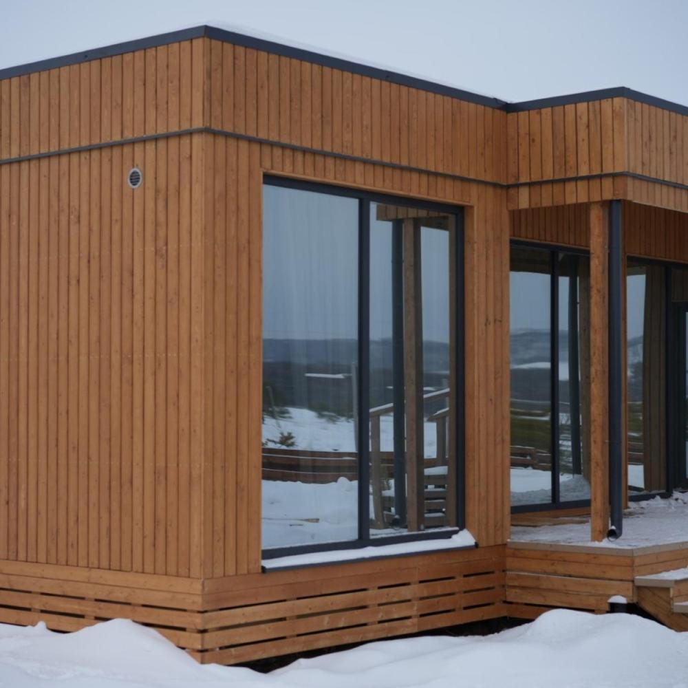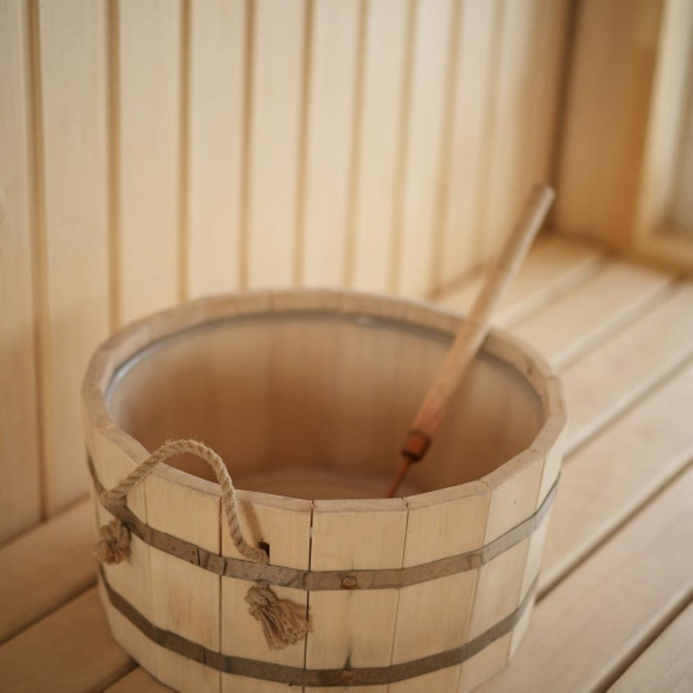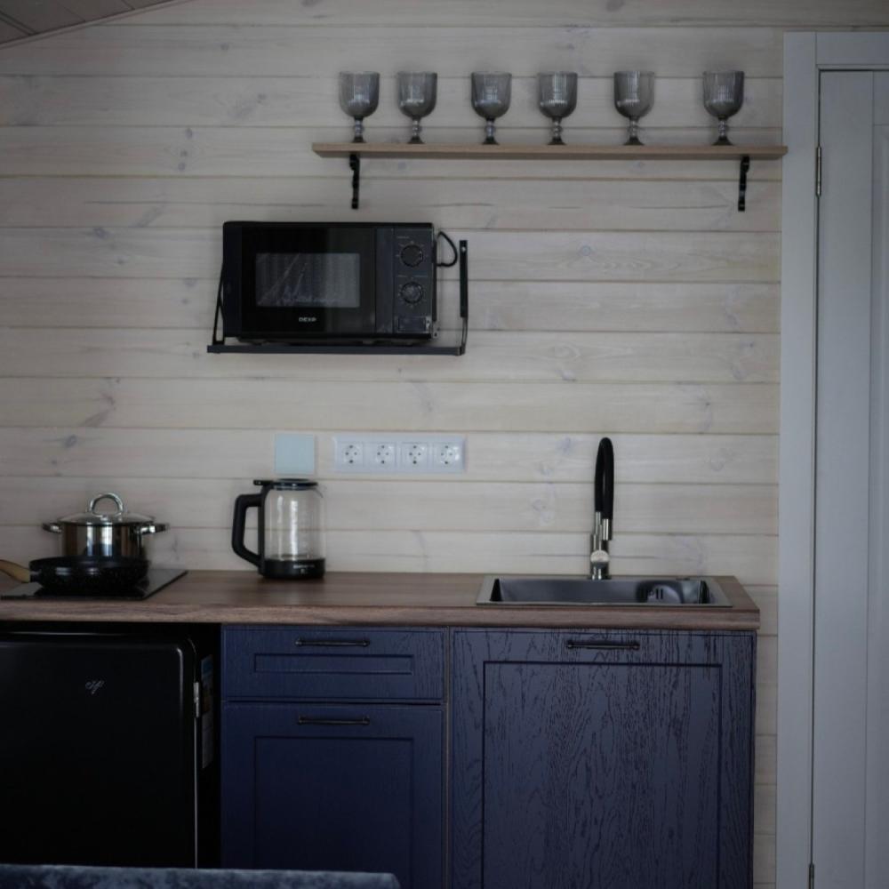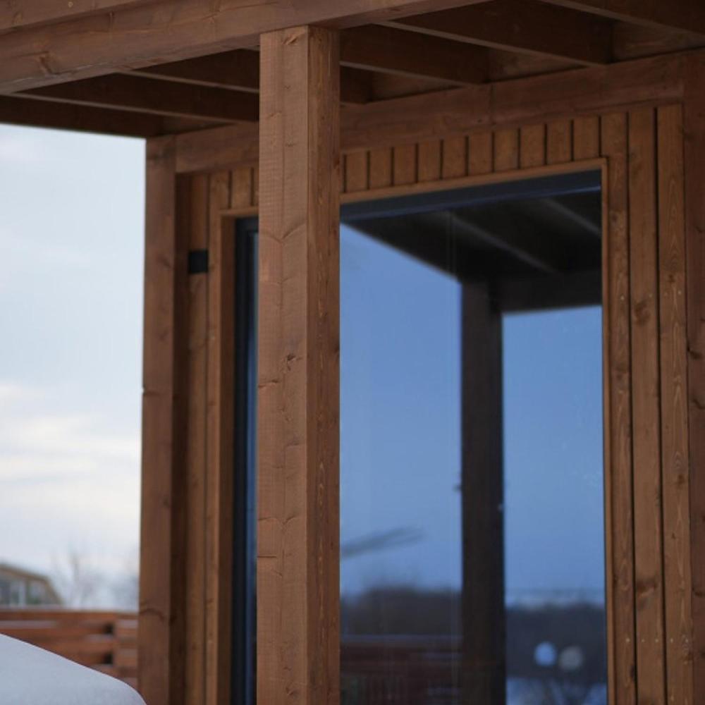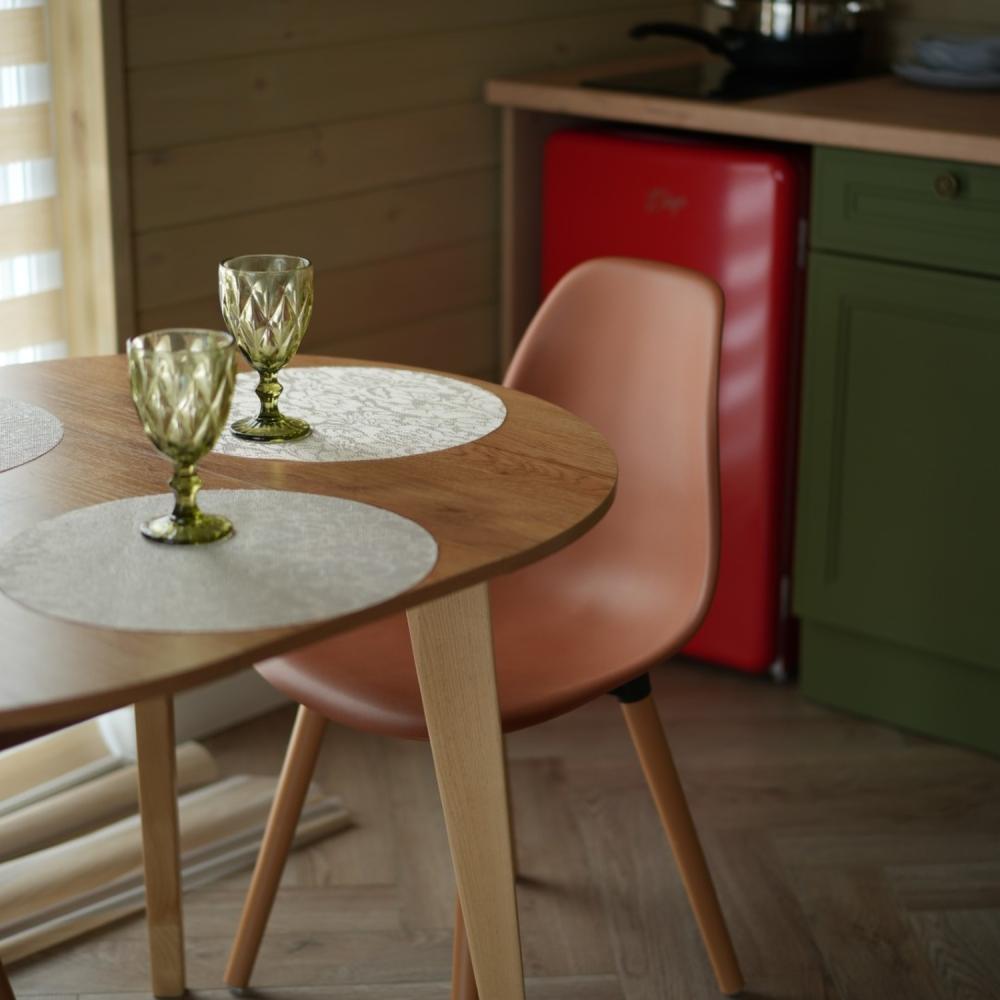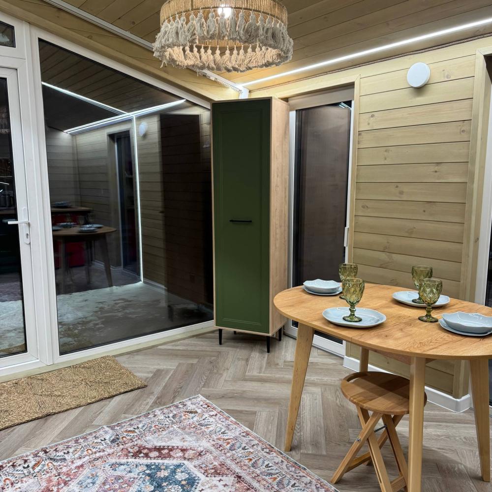Самый “семейный” и самый “праздничный” домик. Тут классно собираться большой компанией: в гостиной - большой стол, много места, тёплая атмосфера, где хочется устраивать длинные ужины и встречи без спешки. Что внутри: 3 отдельные спальни с кроватями просторная гостиная раскладной диван (доп. спальное место)раскладной стол на 6-10 человек кухня со всей техникой и посудой2 ТВ Яндекс, Алиса с экраном. Лучший выбор для больших семей, нескольких пар или компаний, которые любят собираться вместе. Баня и чаны — отдельная причина приехать. После прогулок и свежего воздуха особенно приятно: прогреться в бане ,а потом расслабиться в чанах — это тот самый формат отдыха, после которого спишь крепко-крепко.