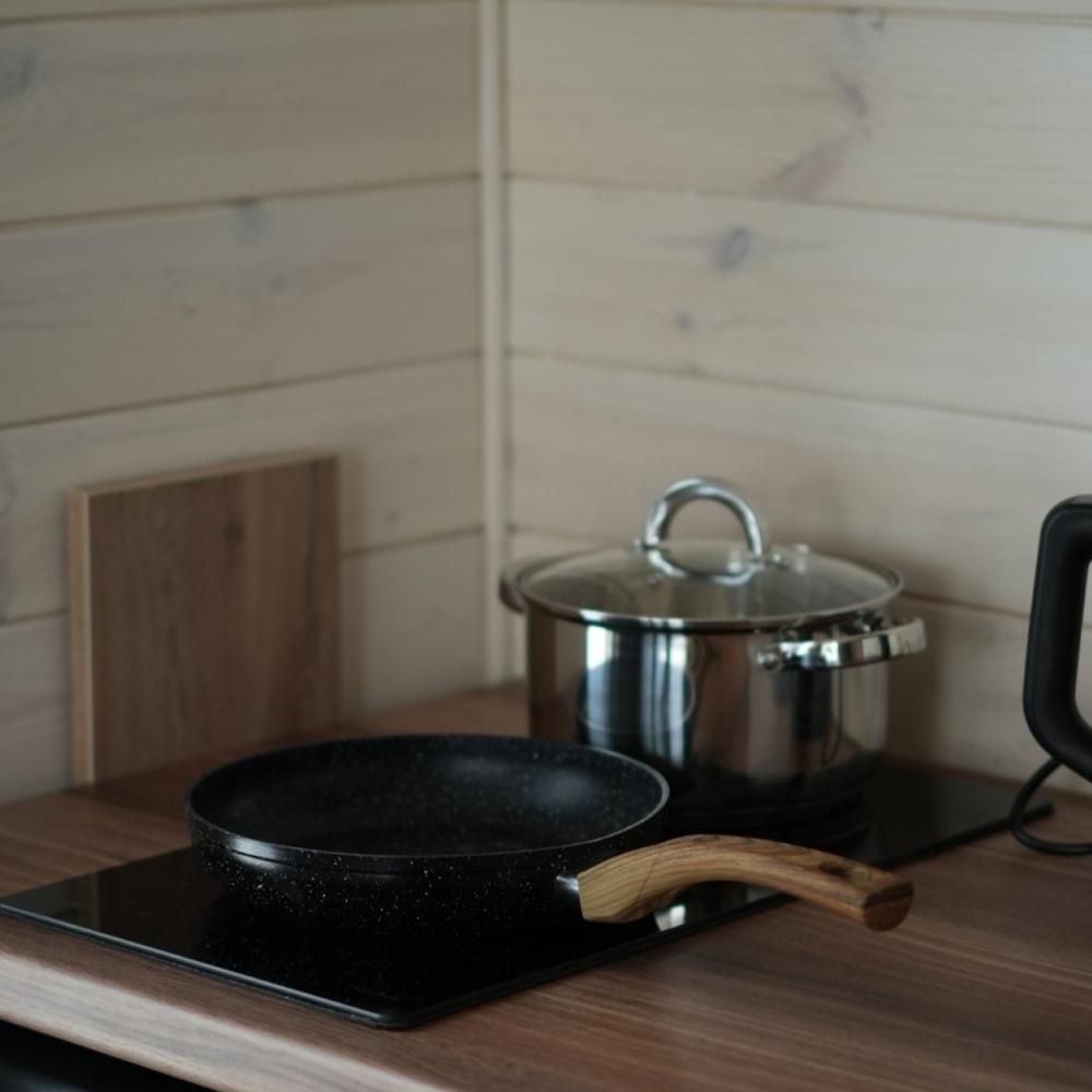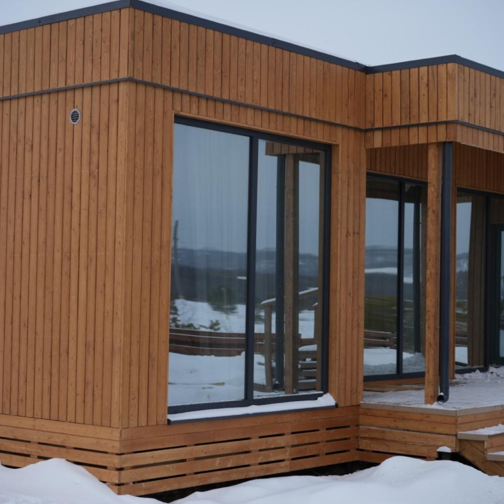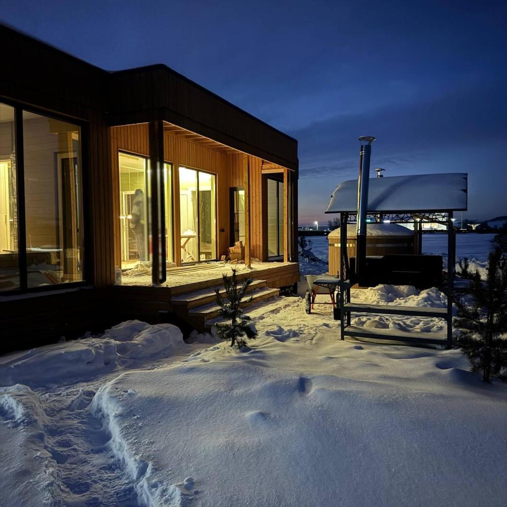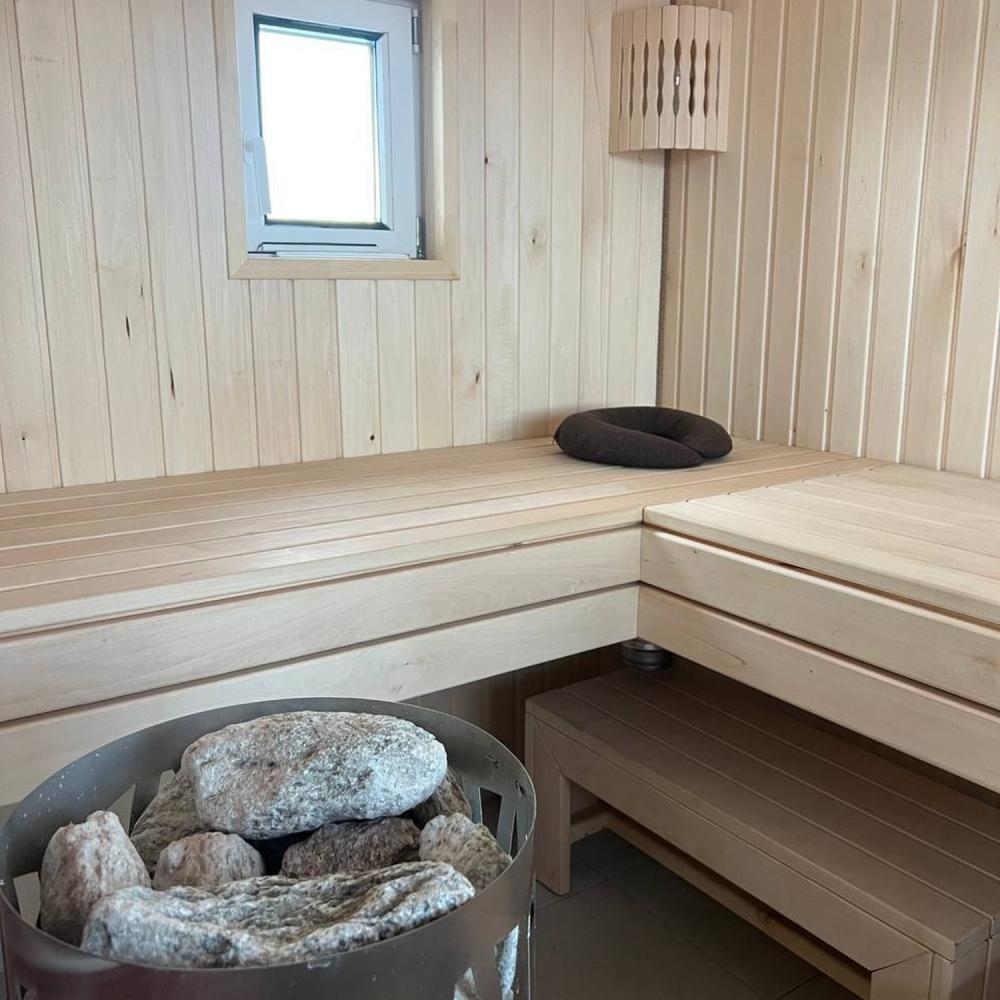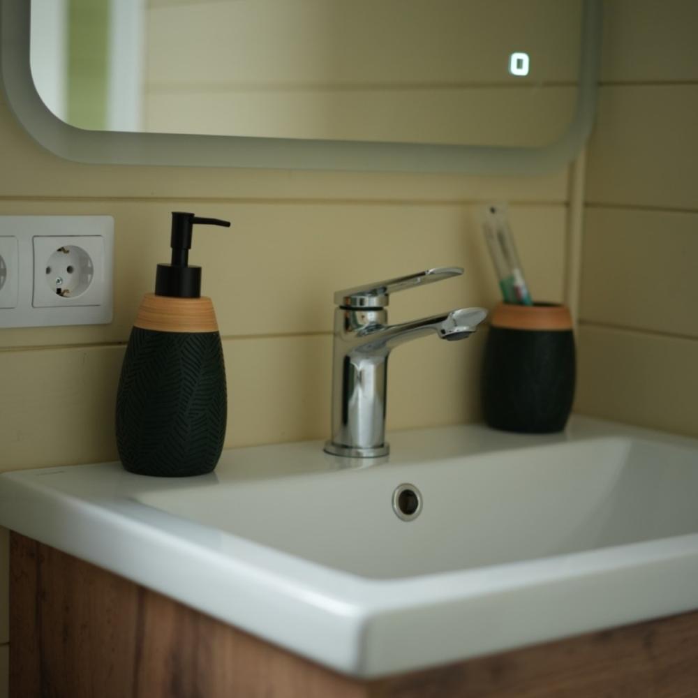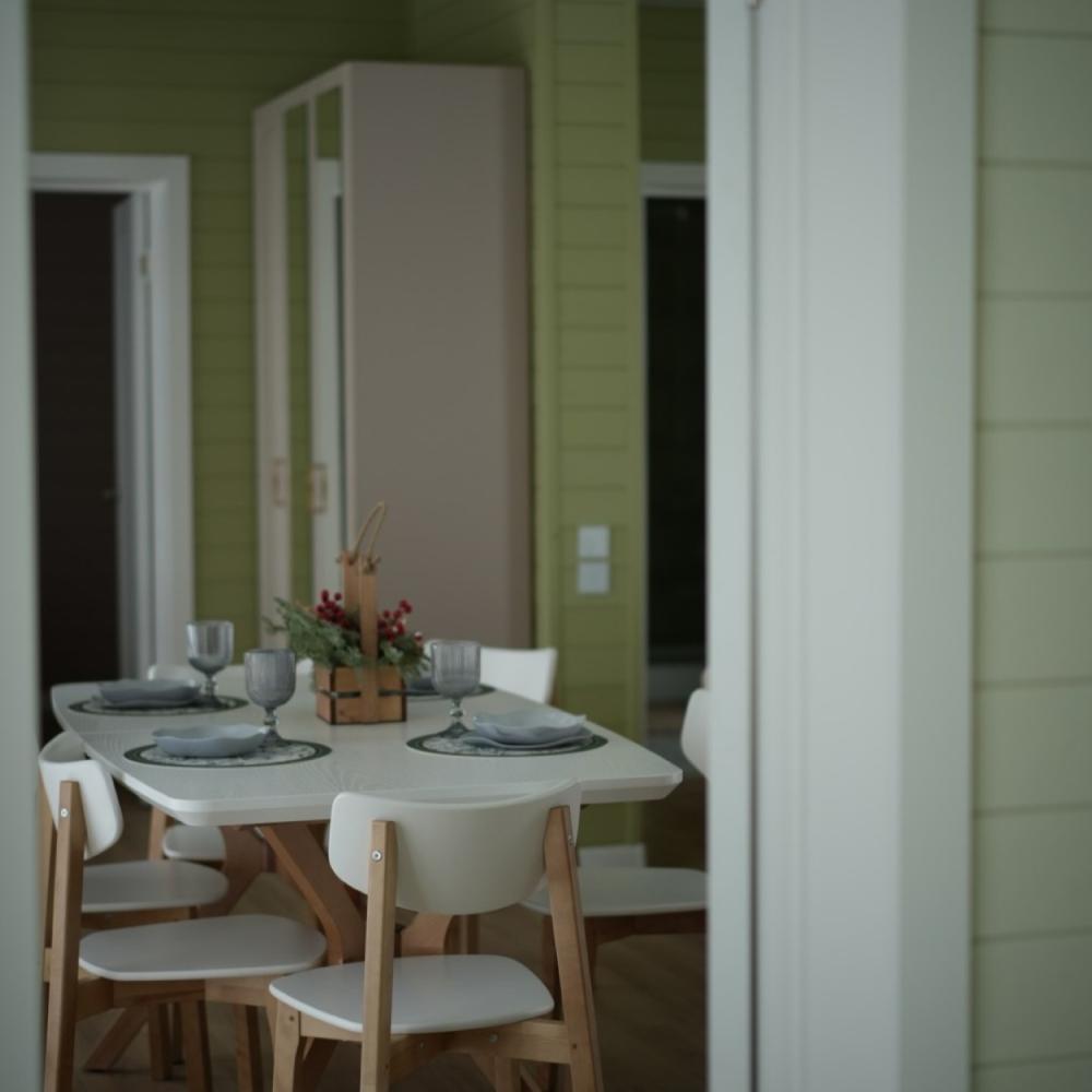 Самый “семейный” и самый “праздничный” домик. Тут классно собираться большой компанией: в гостиной - большой стол, много места, тёплая атмосфера, где хочется устраивать длинные ужины и встречи без спешки. Что внутри: 3 отдельные спальни с кроватями просторная гостиная раскладной диван (доп. спальное место)раскладной стол на 6-10 человек кухня со всей техникой и посудой2 ТВ Яндекс, Алиса с экраном. Лучший выбор для больших семей, нескольких пар или компаний, которые любят собираться вместе. Баня и чаны — отдельная причина приехать. После прогулок и свежего воздуха особенно приятно: прогреться в бане ,а потом расслабиться в чанах — это тот самый формат отдыха, после которого спишь крепко-крепко.