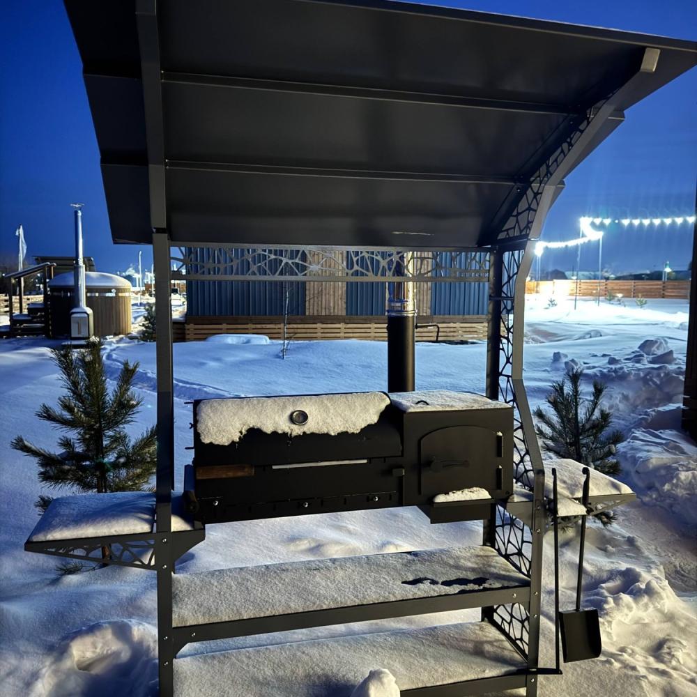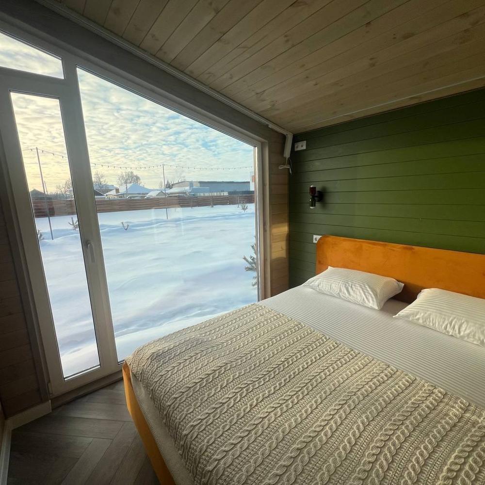 Домик «Татарстан» - барн-хаус с 1 спальней и большой гостиной. Домик для тех, кто любит простор и уютные посиделки. Здесь легко собраться компанией: большой стол, мягкий диван, много воздуха и света - идеальный вариант для дружеского отдыха или семейного уикенда. Что внутри: отдельная спальня с кроватью просторная гостиная раскладной диван (доп. спальное место)раскладной стол на 4-6 человек, кухня со всей техникой и посудой, 2 ТВ Яндекс, Алиса. Баня и чаны — отдельная причина приехать. После прогулок и свежего воздуха особенно приятно: прогреться в бане , а потом расслабиться в чанах — это тот самый формат отдыха, после которого спишь крепко-крепко.